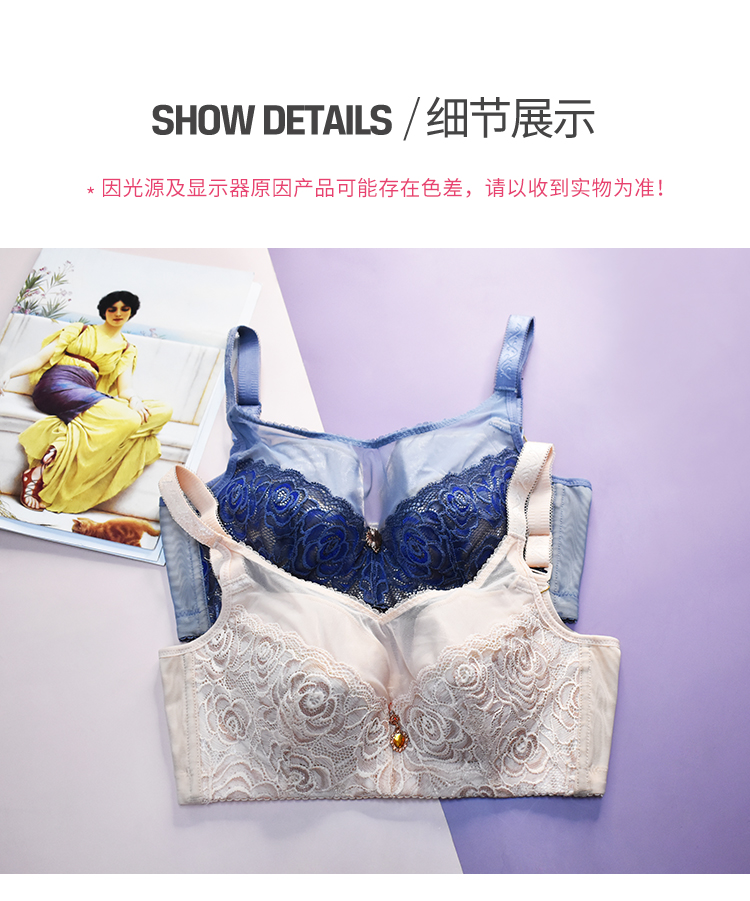皇家丽美大胸显小有钢圈蕾丝纱调整型文胸W13-1