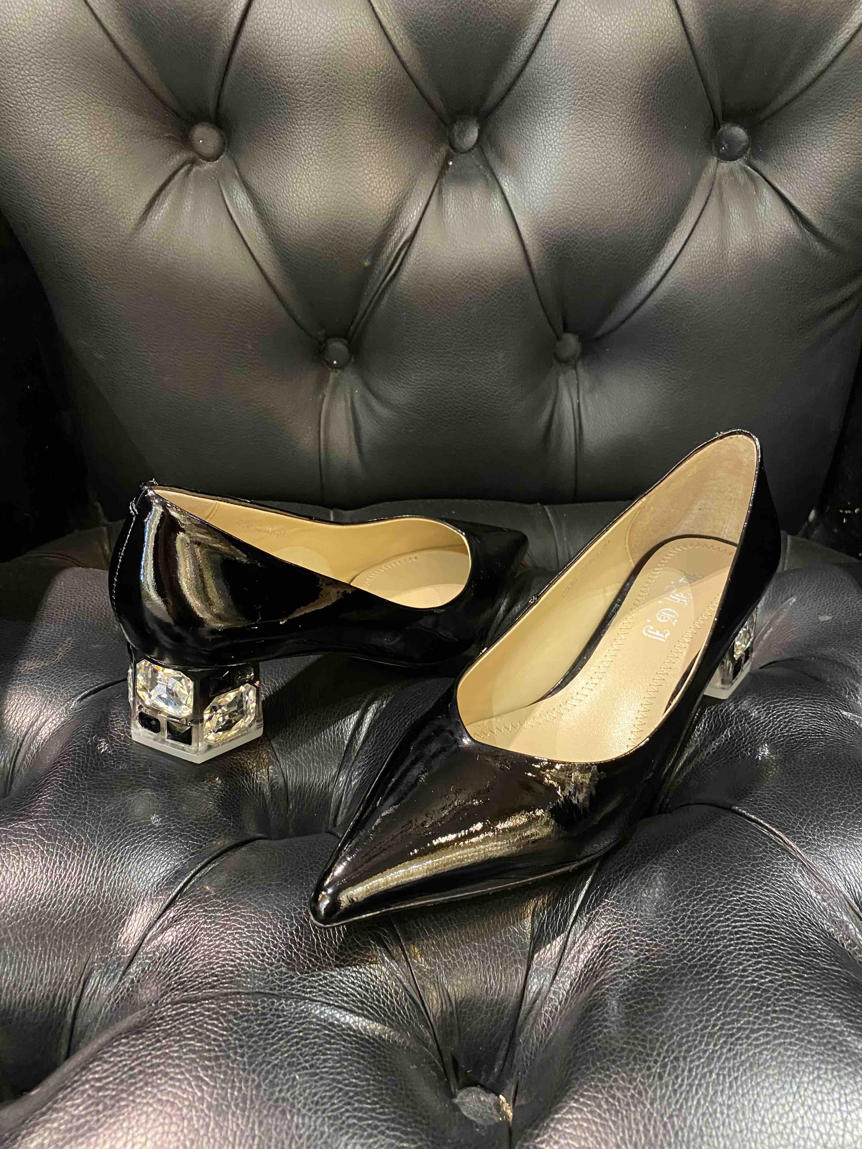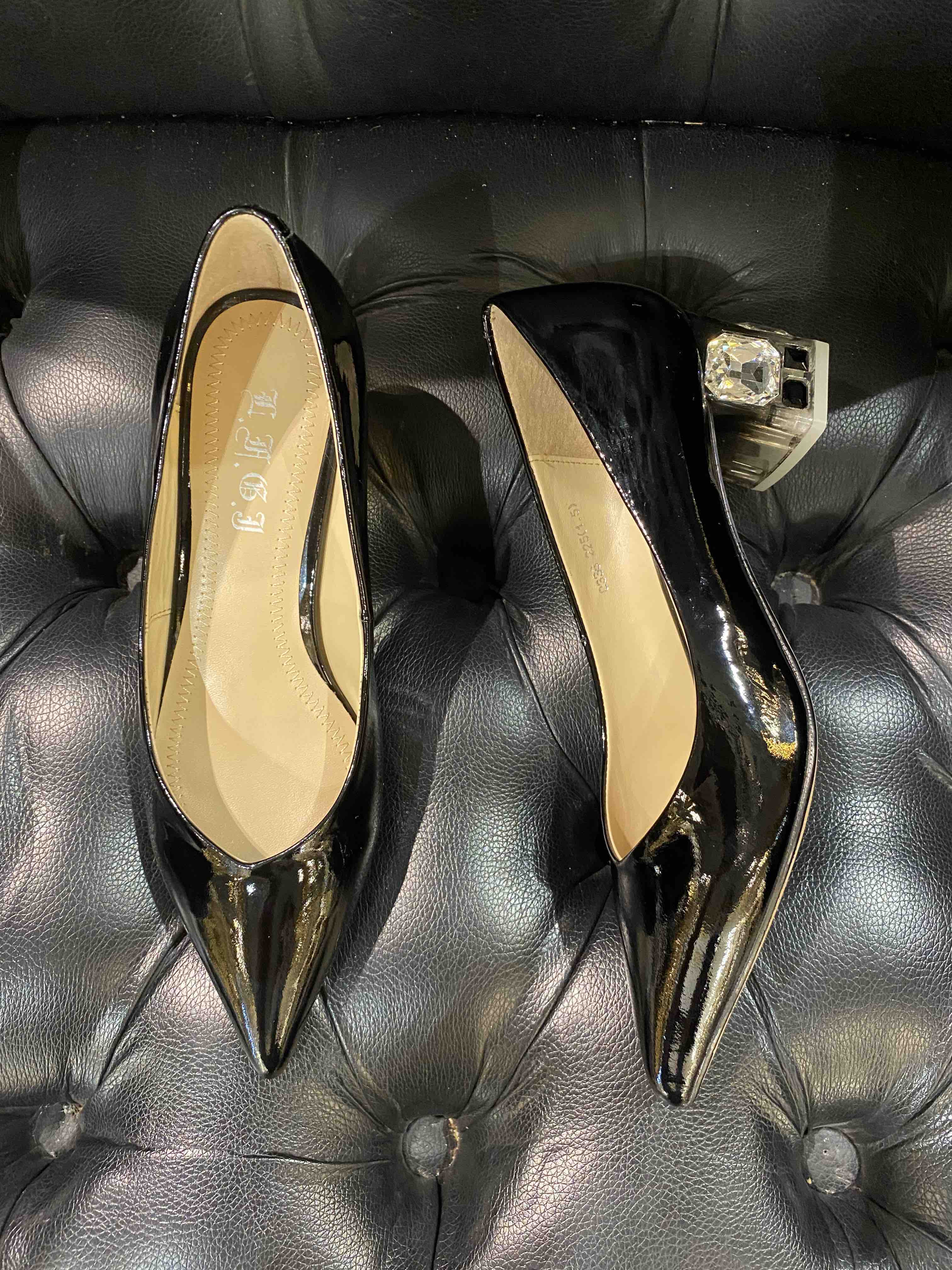 LFGJ 0336 水晶跟奢华漆皮尖头优雅单鞋女