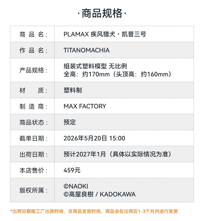 【GSC预售定金】PLAMAX 疾风猎犬・凯普三号 TITANOMACHIA