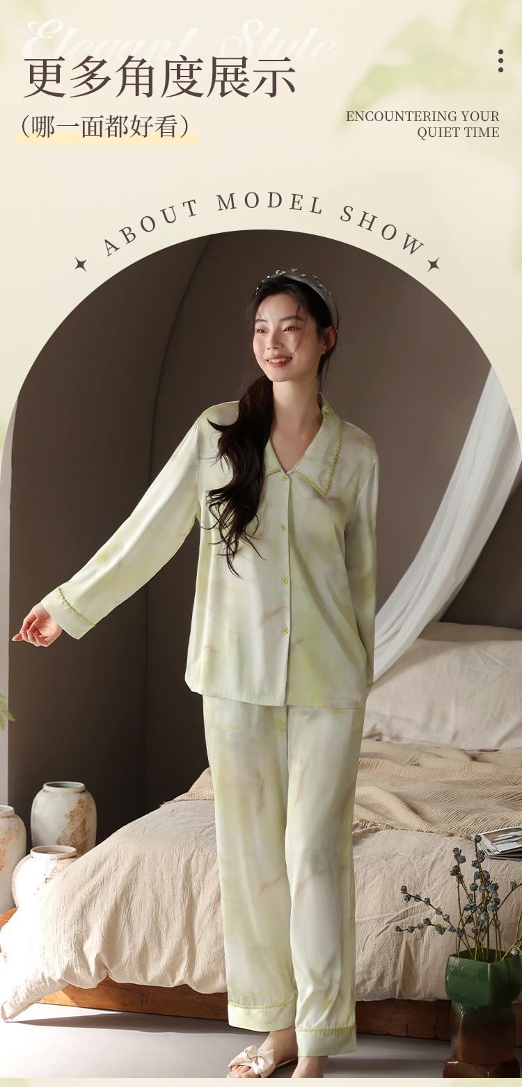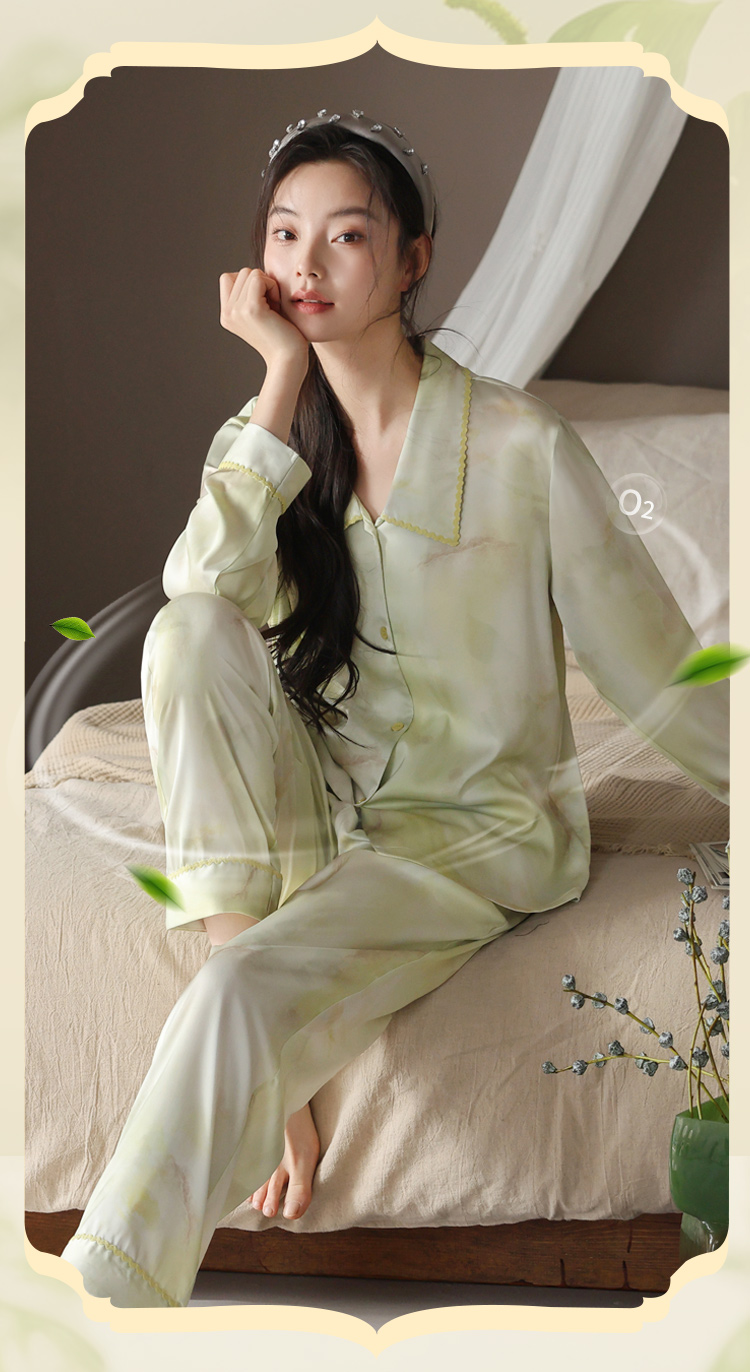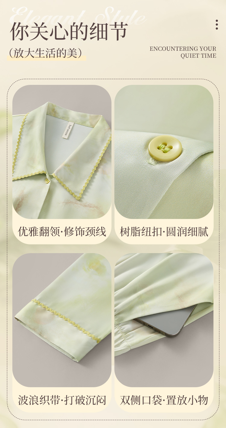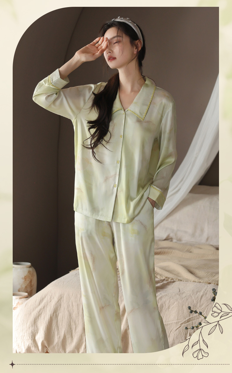 【M-2XL】【猫人】女士晕染新中式高级软丝家居服套装
