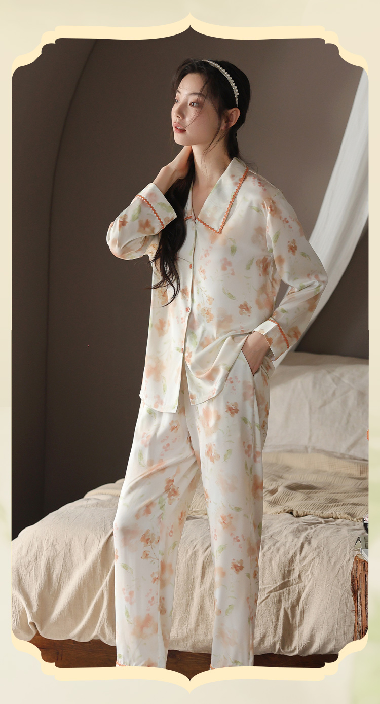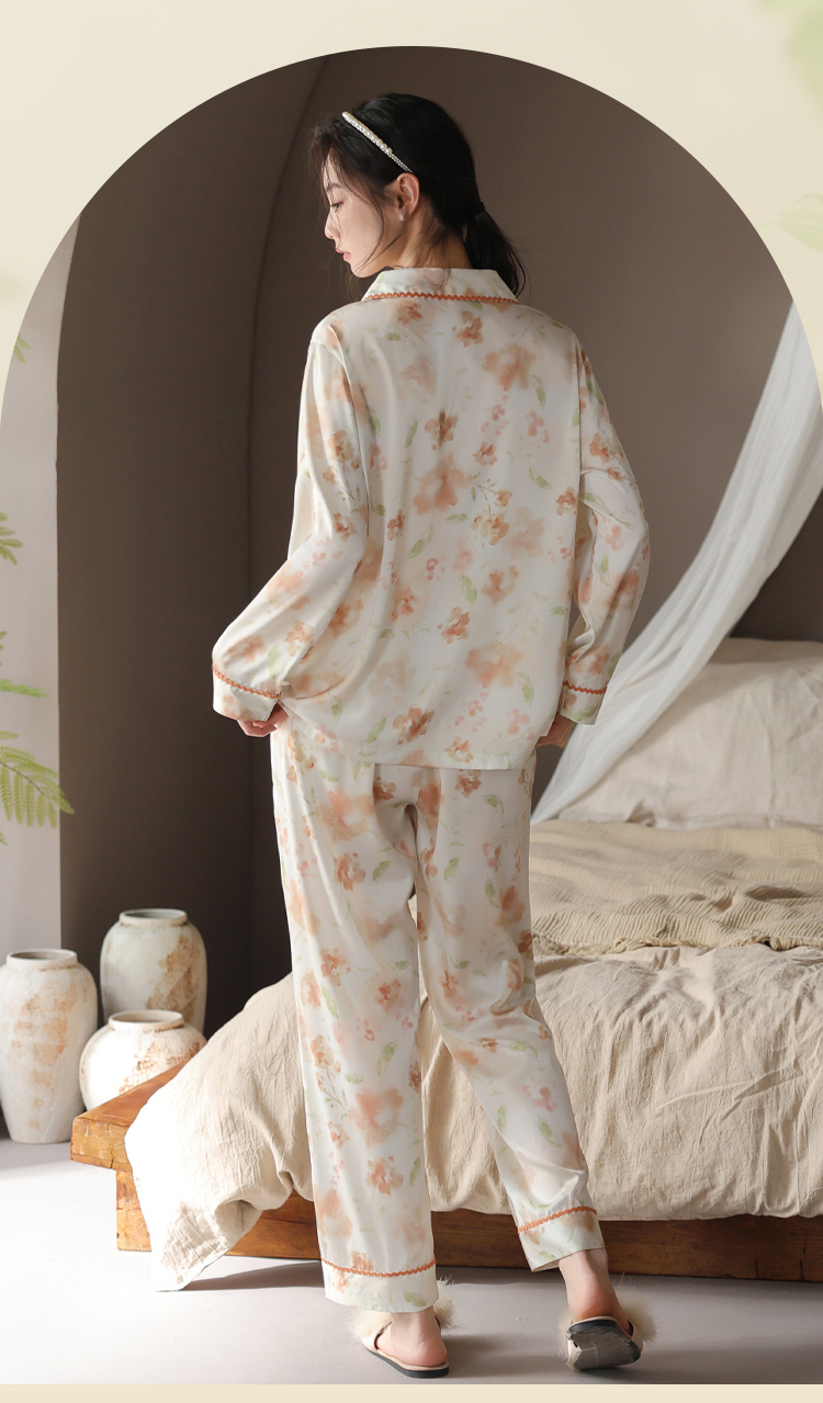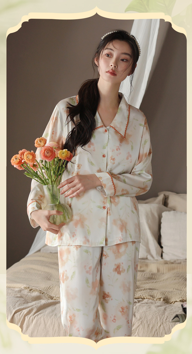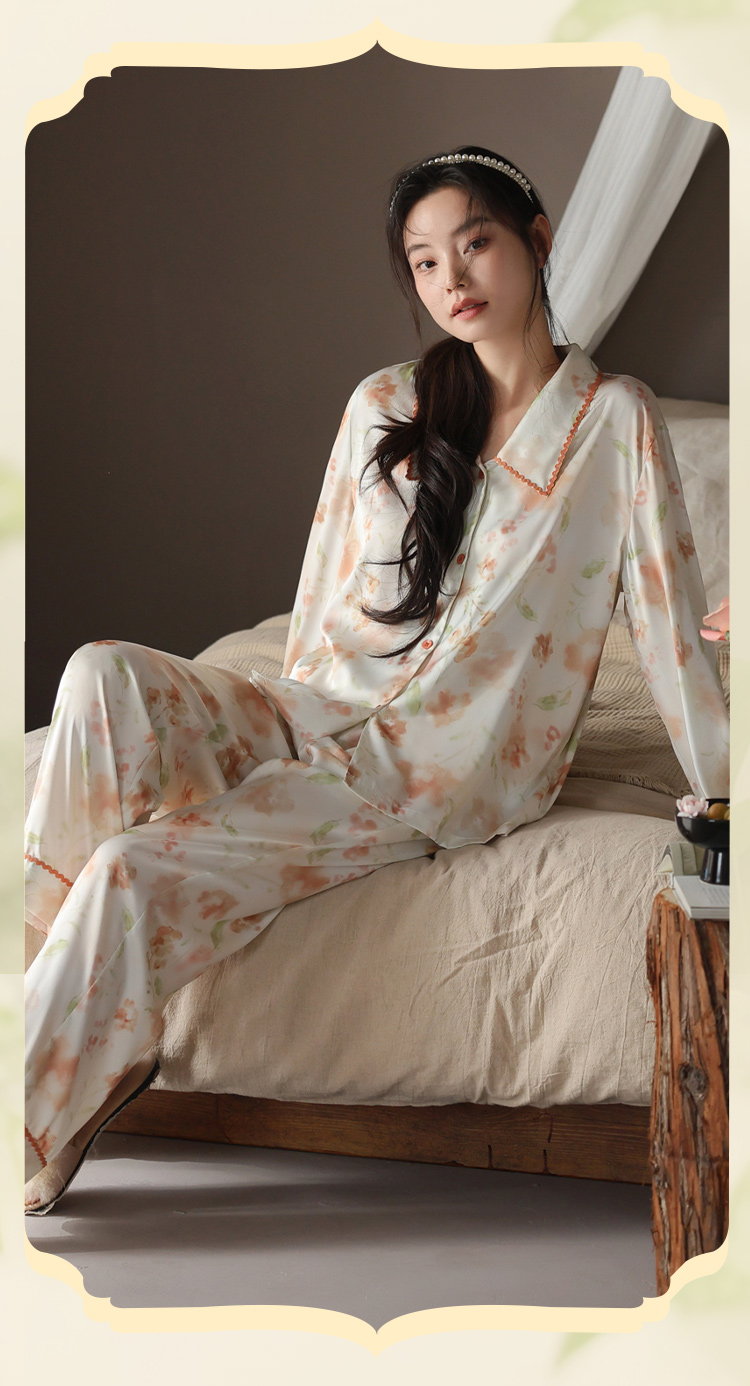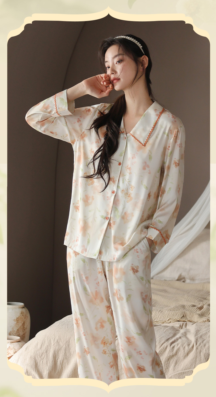【M-2XL】【猫人】女士晕染新中式高级软丝家居服套装