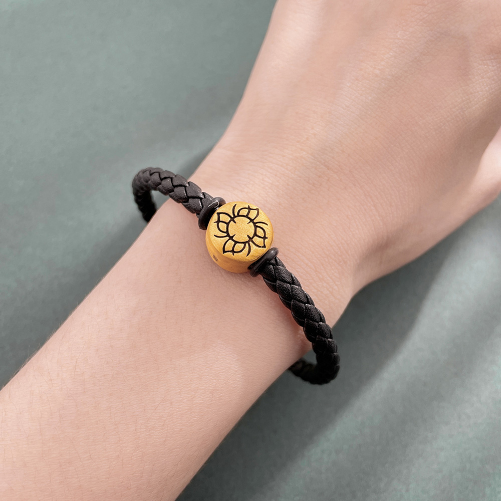 【限时7.5折】【定价黄金】足金 #电黑金 #情侣日常 3D硬金电黑金权利不可调节黑编织皮绳手链成品手串(扣饰材质为合金,绳约5mm)(RFXMB0059-A)预售产品下单后不退款不退货不换货不补差价
