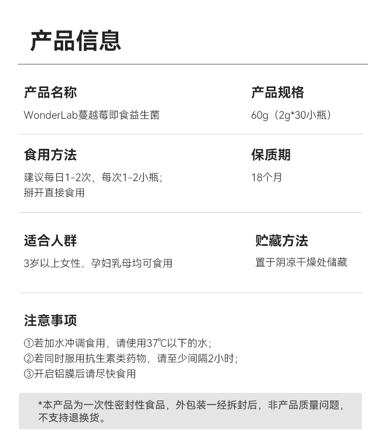 【桑果专属】万益蓝WonderLab蔓越莓女性益生菌冻干粉双歧杆菌