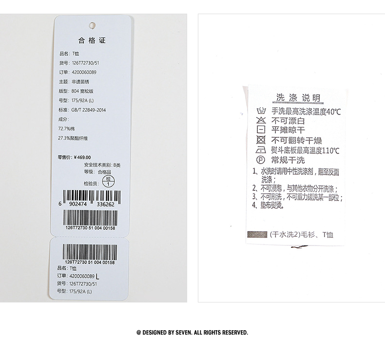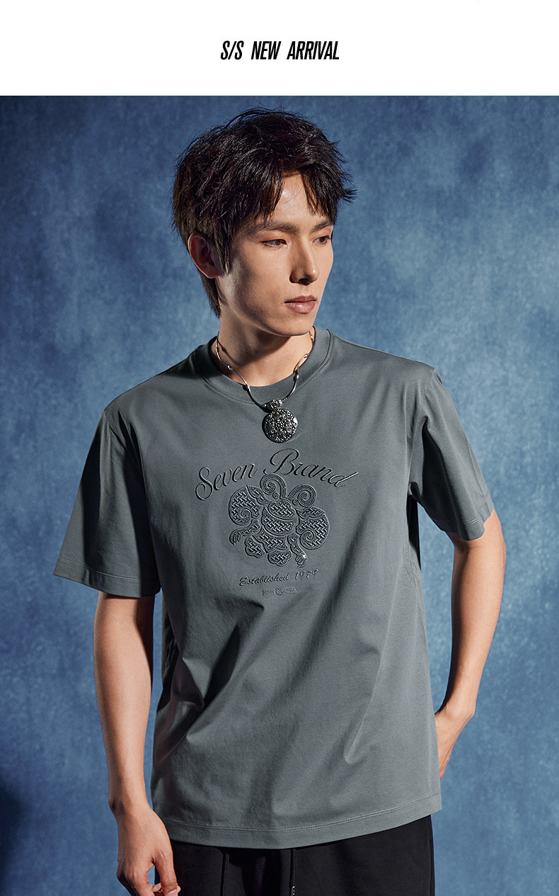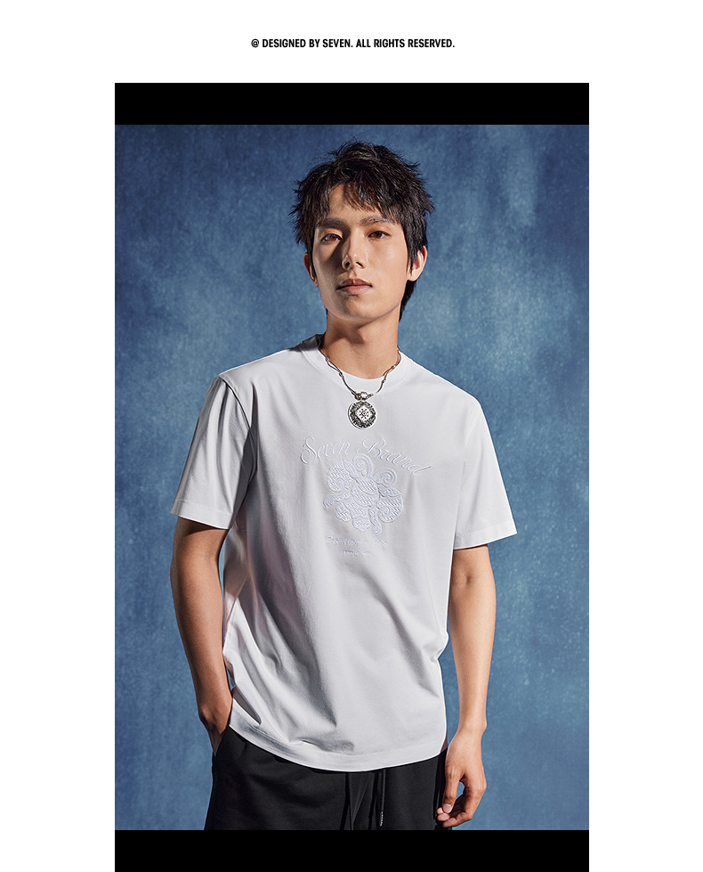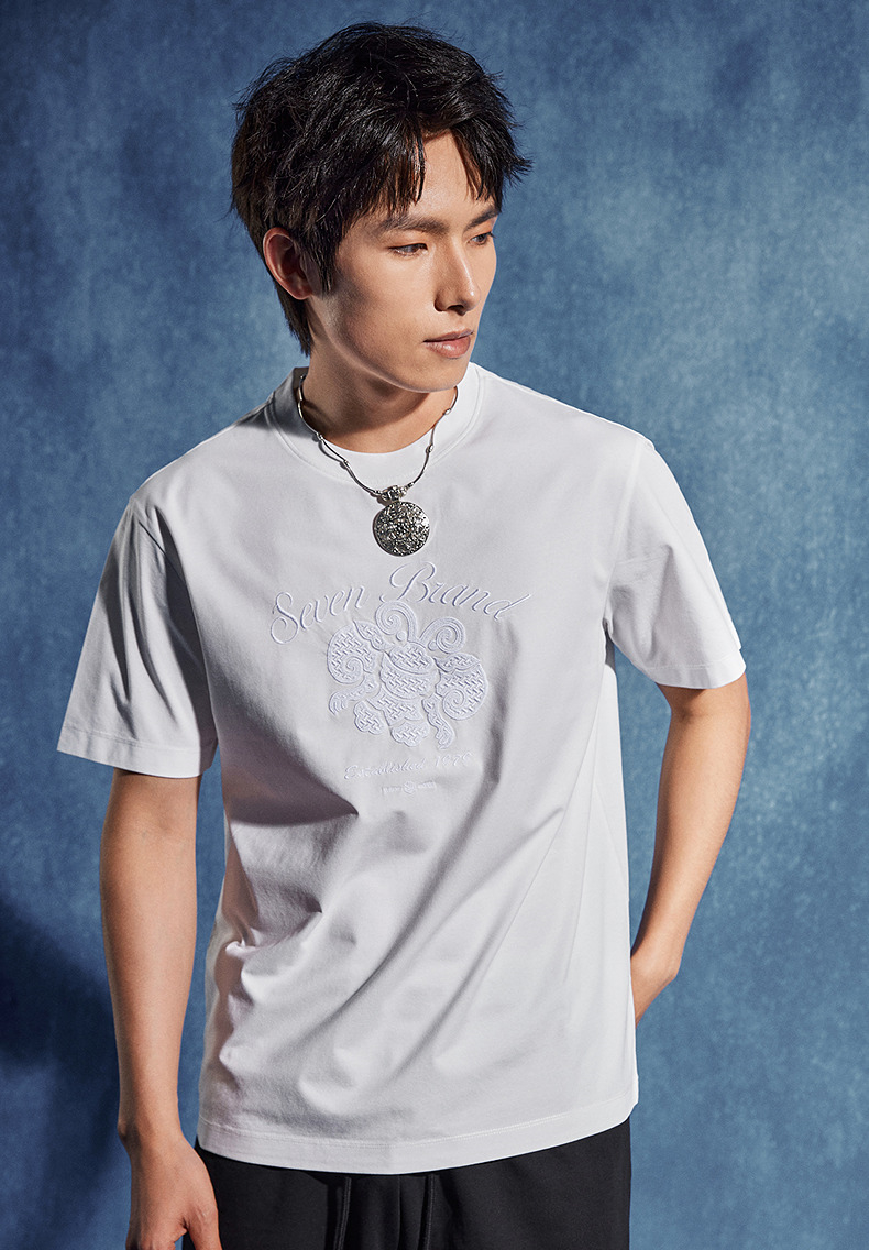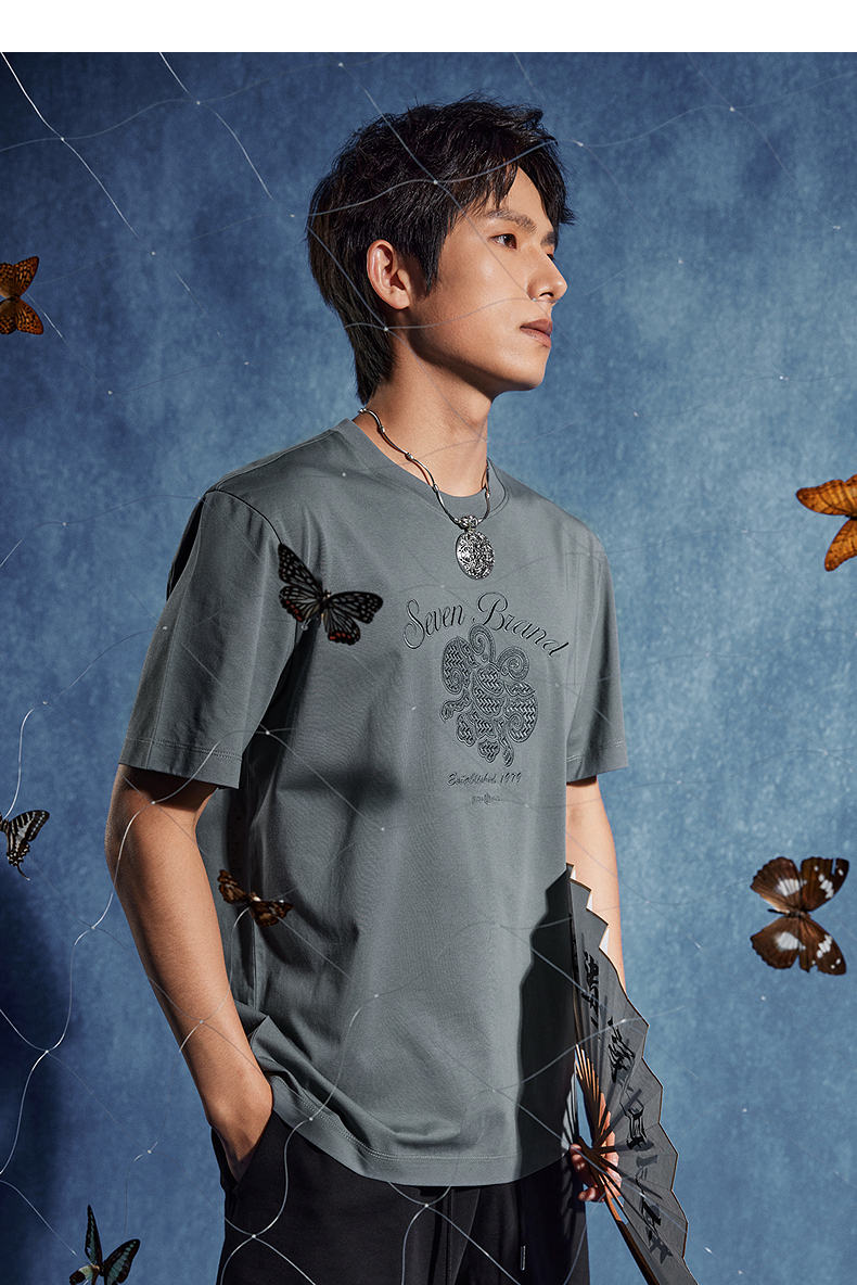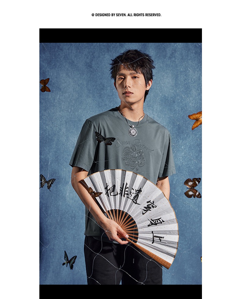 【非遗苗绣蝴蝶妈妈系列】柒牌男士t恤短袖夏季新款水溶绣花体恤 126T72730