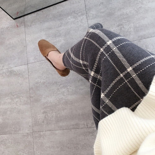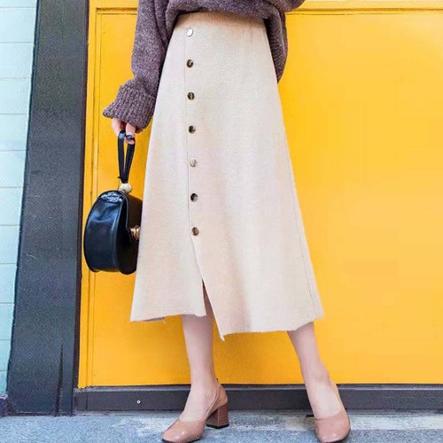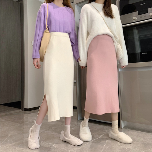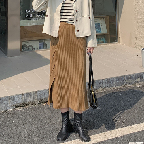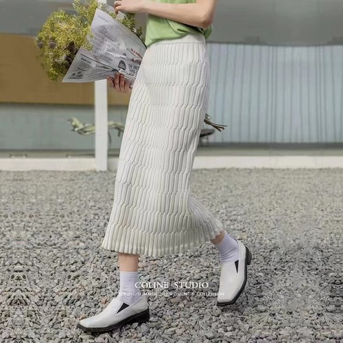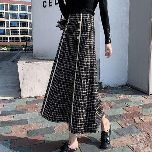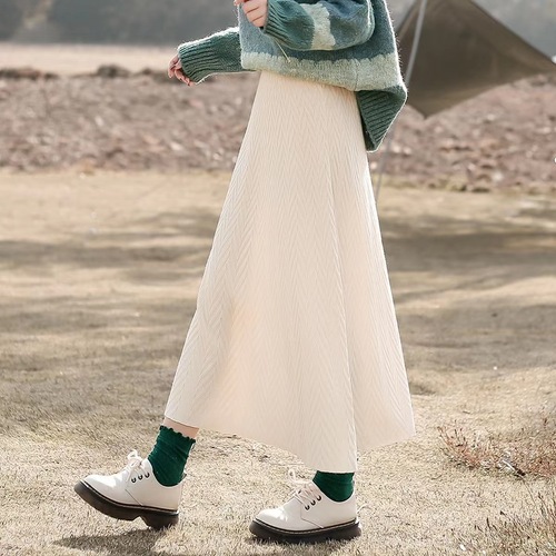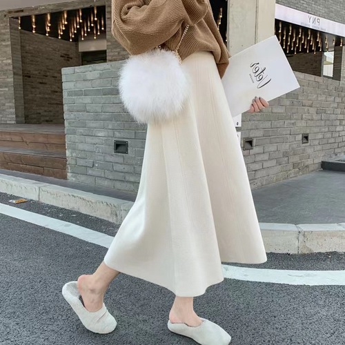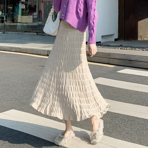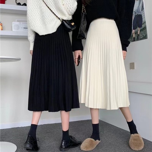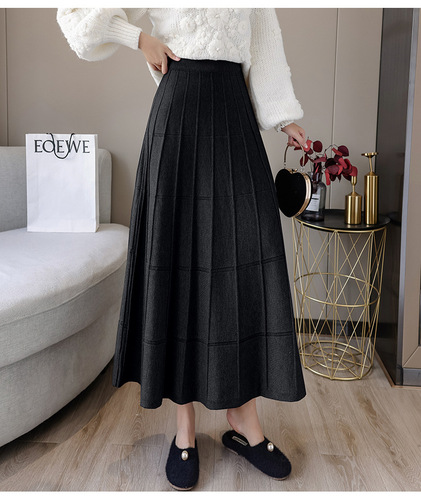 黛唯梵针织半身裙女秋冬天百褶伞裙中长款高腰a字毛线长裙子遮胯显瘦厚