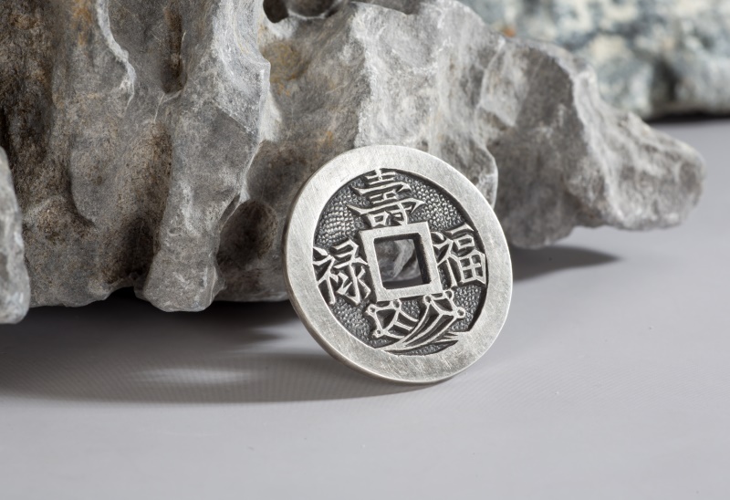 矩德泉坊 纯银手作 錾刻福禄寿(3厘米版)gq201000081