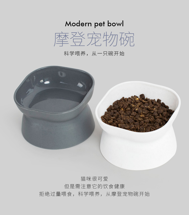 新品宠物摩登喂食碗 保护颈椎 饮水碗 大容量斜口防打翻中小型犬猫 塑料宠物碗