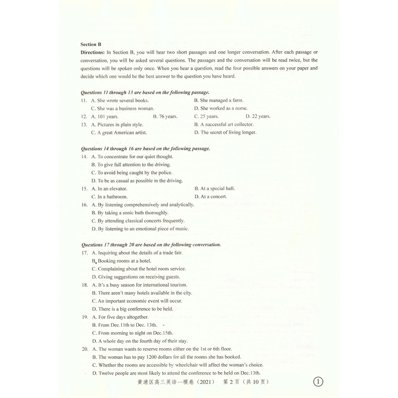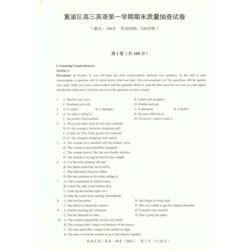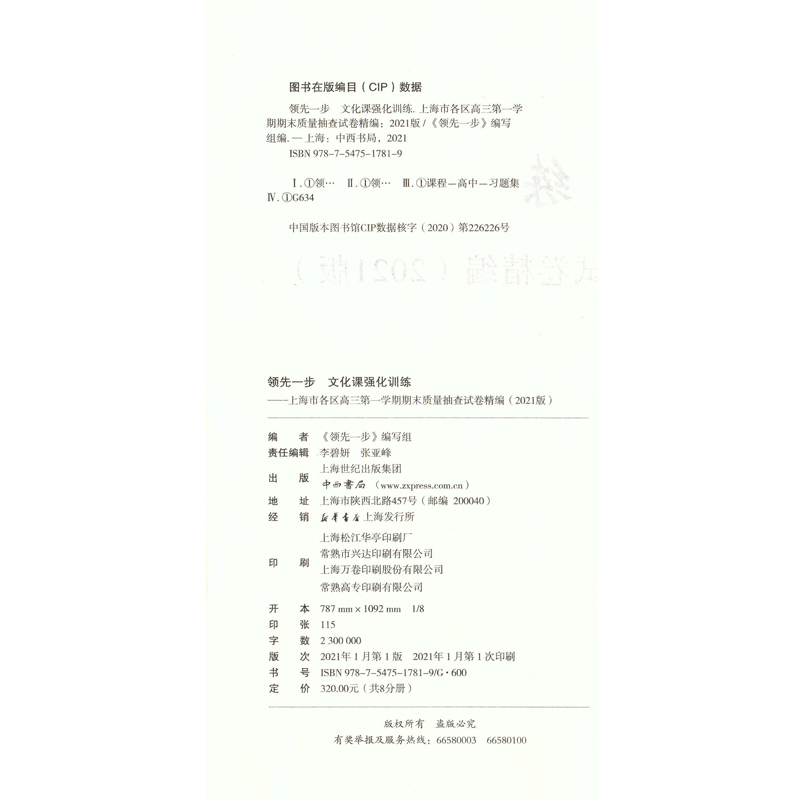 2021版领先一步高考一模卷 英语 文化课强化训练 高考一模卷英语试卷 上海市高三第一学期期末质量抽查试卷高中习题测试卷中西书局