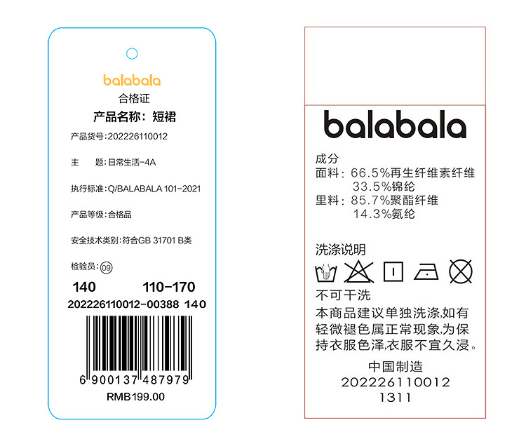 【商场同款】巴拉巴拉童装儿童短裙女童2026夏新款仿牛仔裙裤甜美