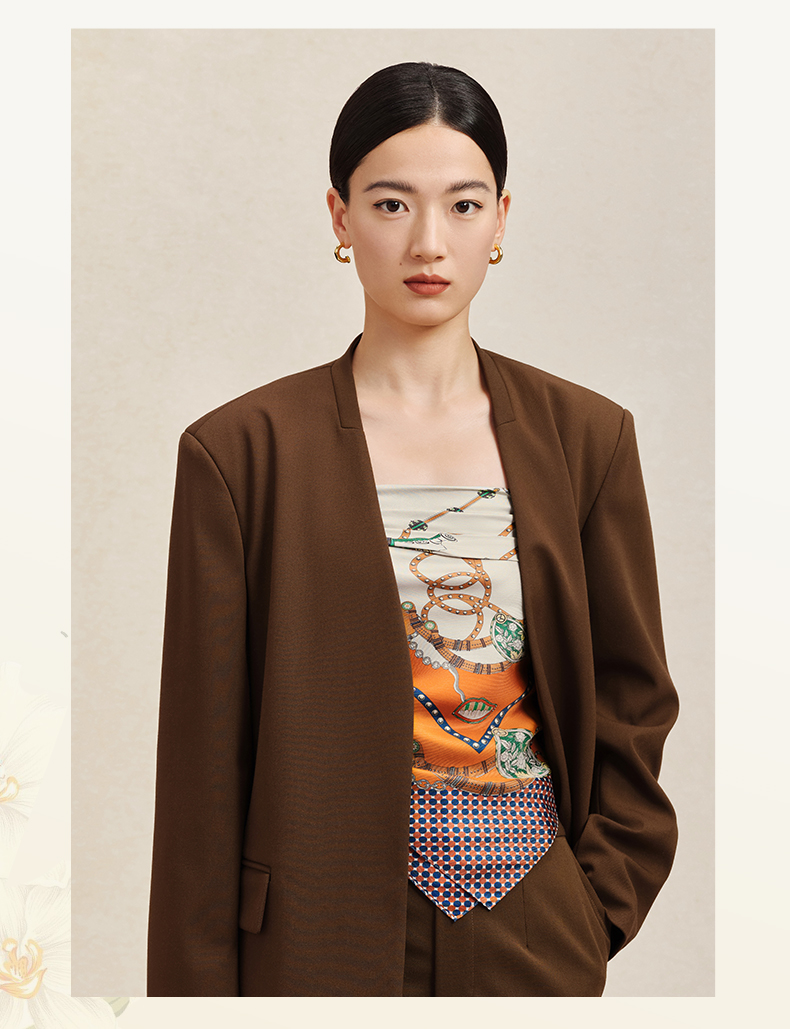 万事利“东方吉金”88厘米双面印花真丝大方巾