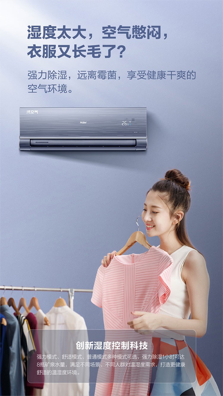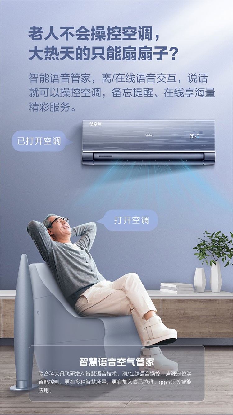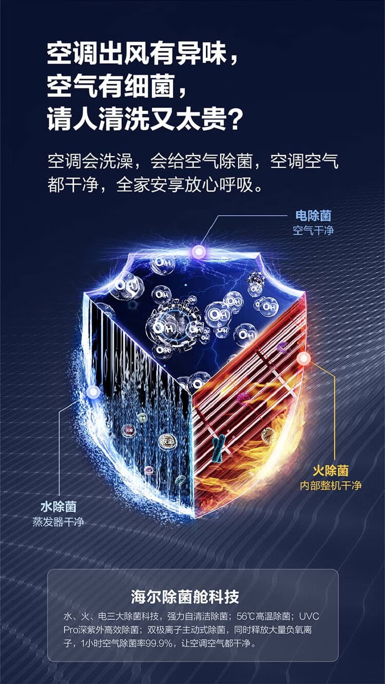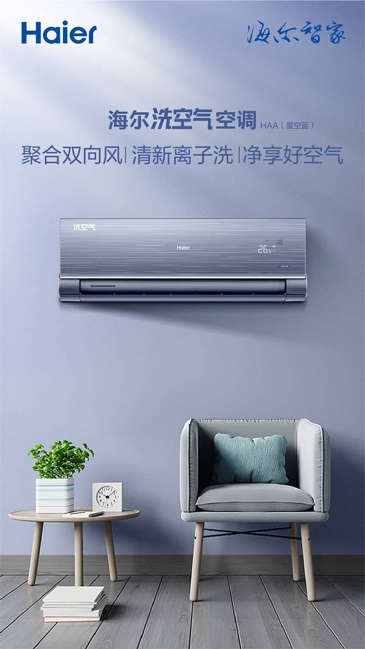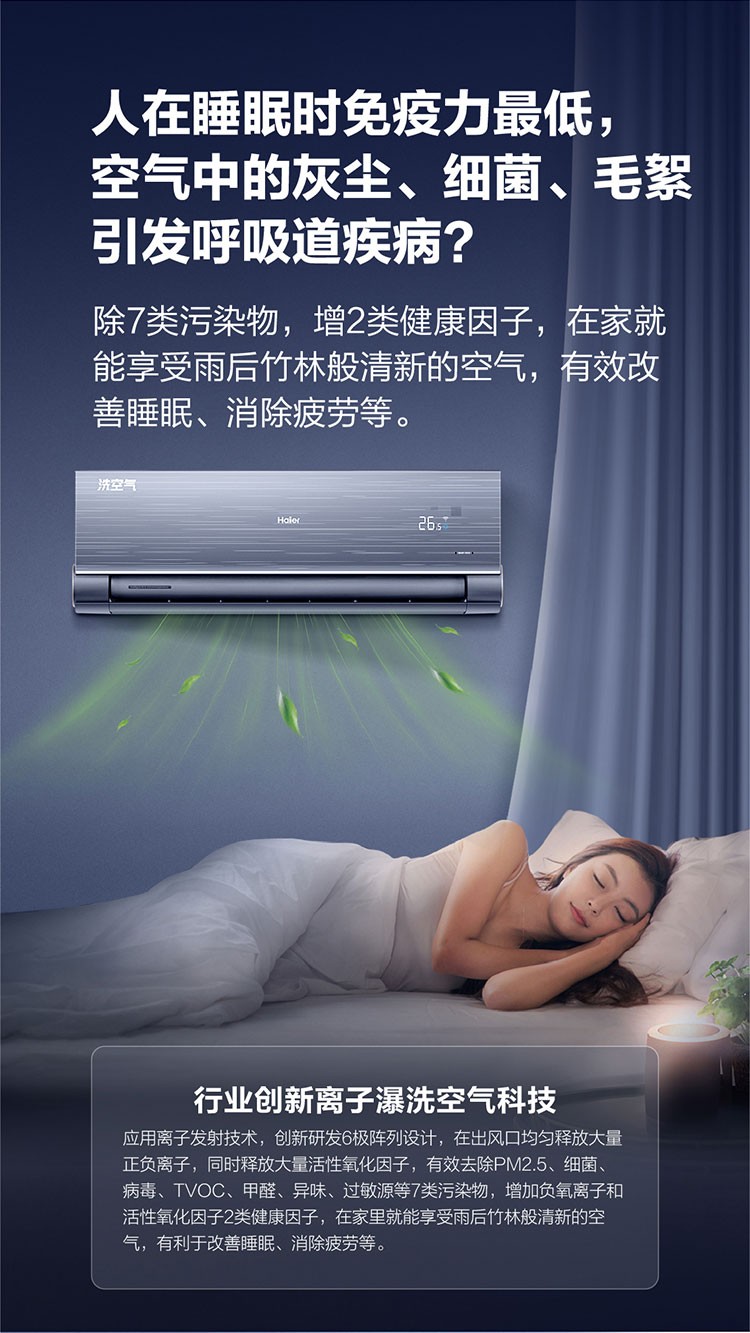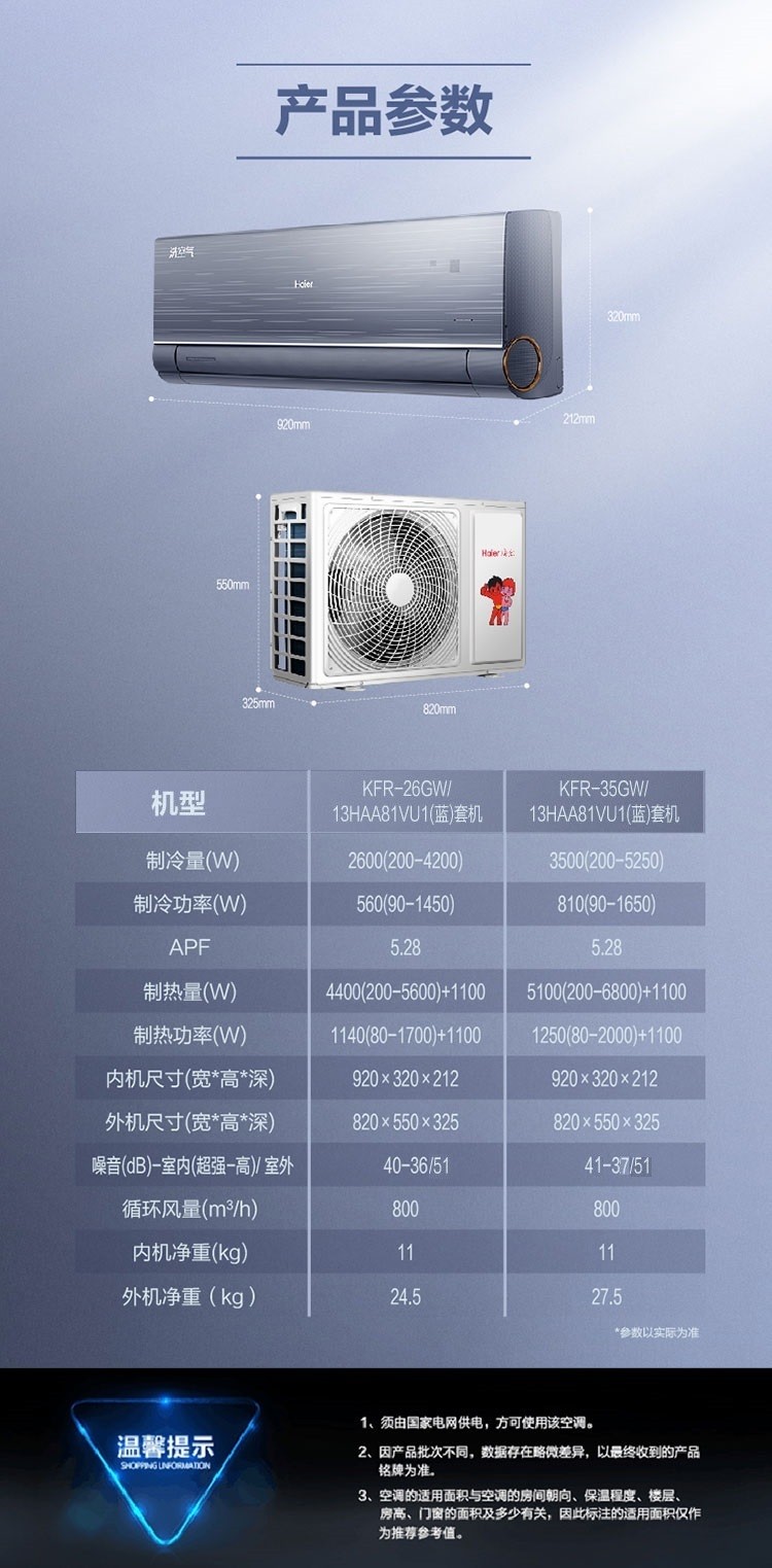 海尔(Haier)空调KFR-35GW 13HAA81VU1(蓝) 新一级变频挂机壁挂式1.5匹星空蓝劲享 声源定位送风 智能语音交互洗空气空调 1.5匹洗空气_聚合双向风_清新离子洗_独