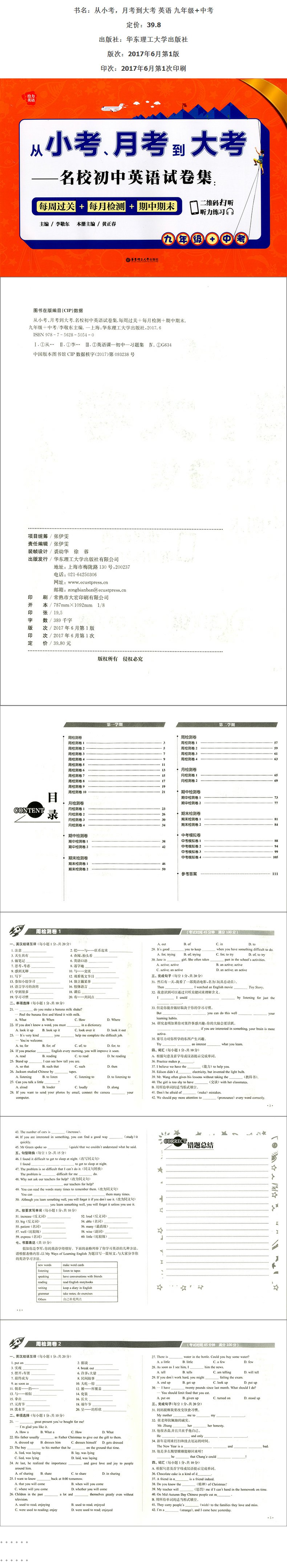 正版现货 给力英语 从小考,月考到大考—名校初中英语试卷集 九年级+中考 二维码扫听练习 每周过关+每月检测+期中期末 华东理工