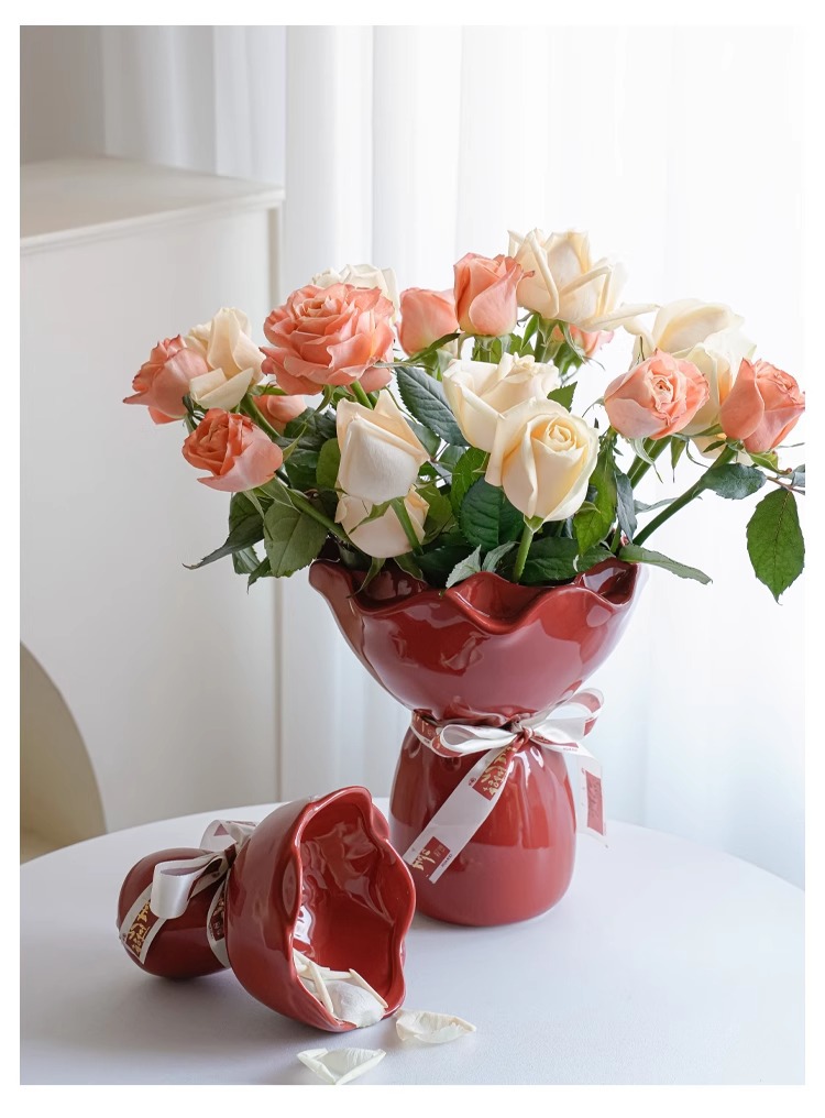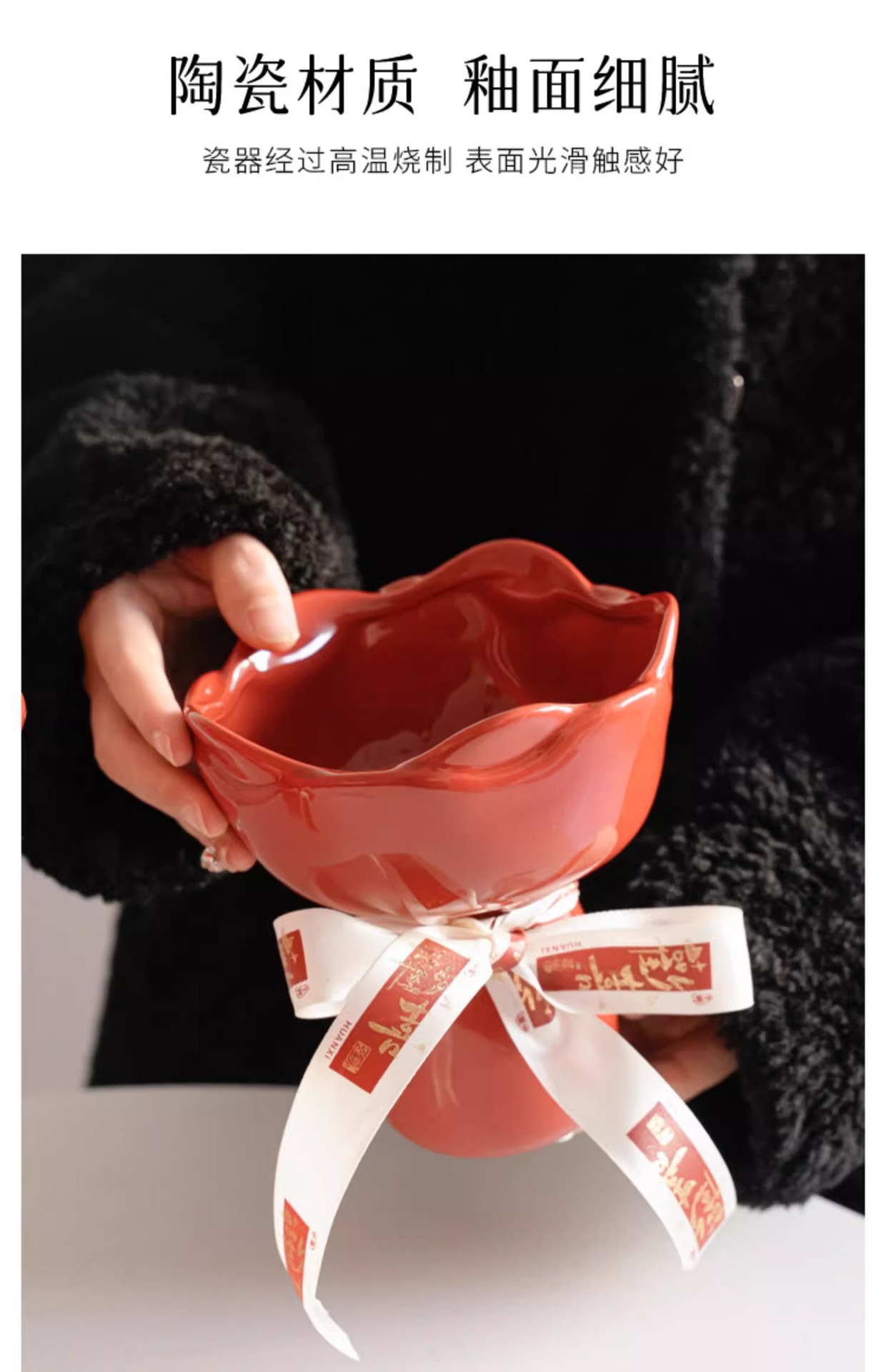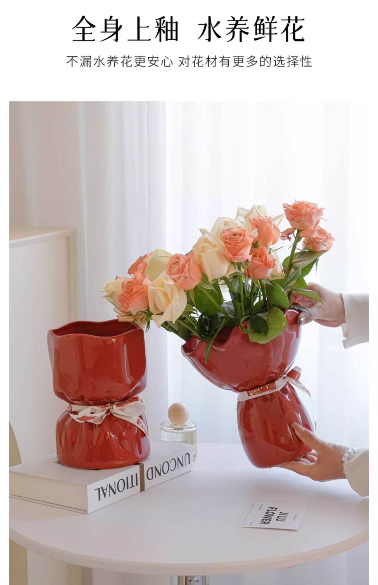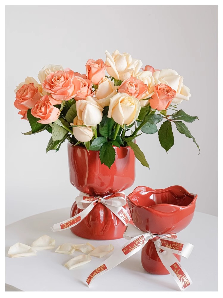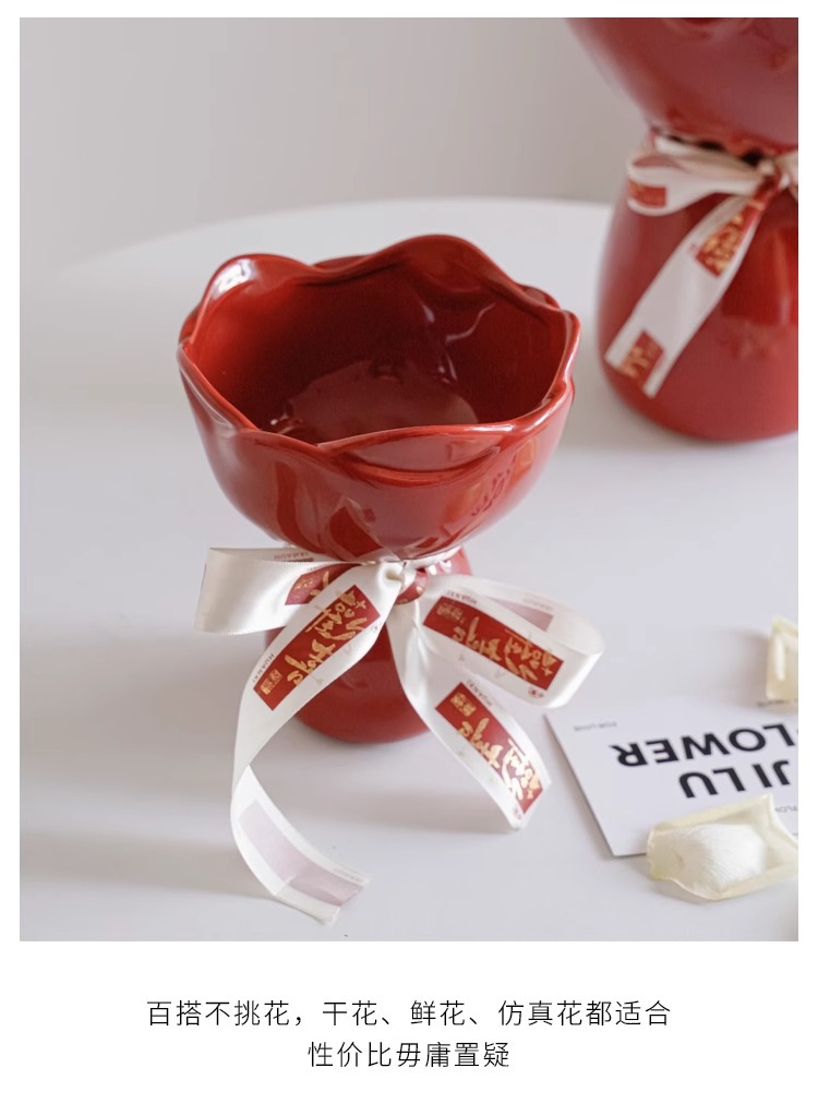 【插花适配性强!全场景百搭】新家客厅陶瓷小花瓶摆件新婚高级感装饰礼物插花情绪稳定花瓶节日。xb