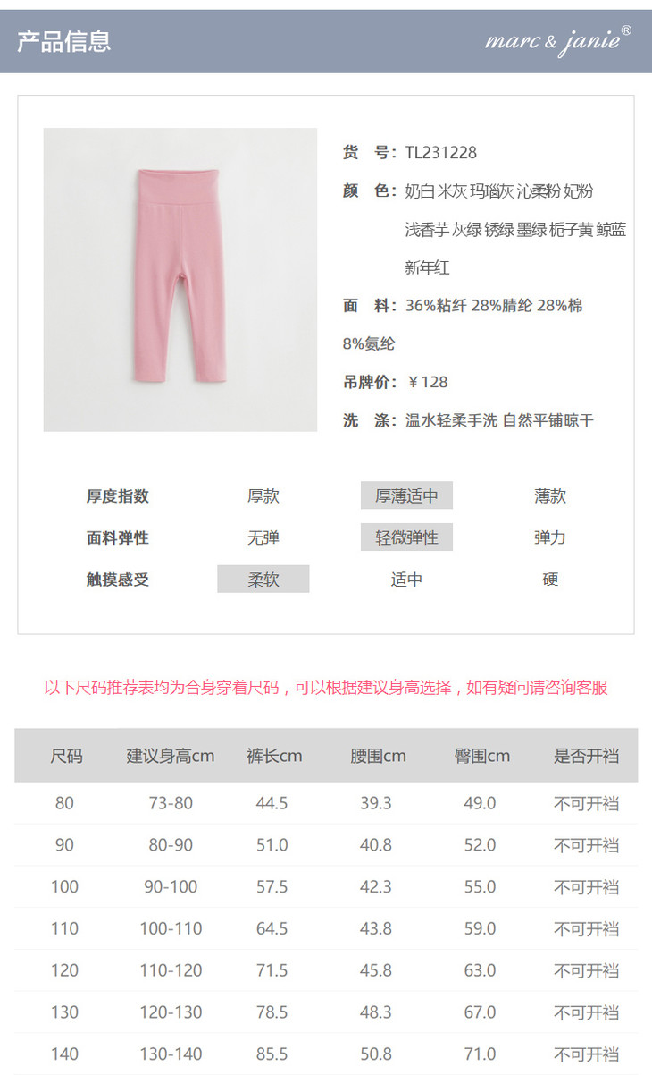 【德绒发热】马克珍妮冬装 男女童高腰护肚裤子 宝宝秋裤 231228