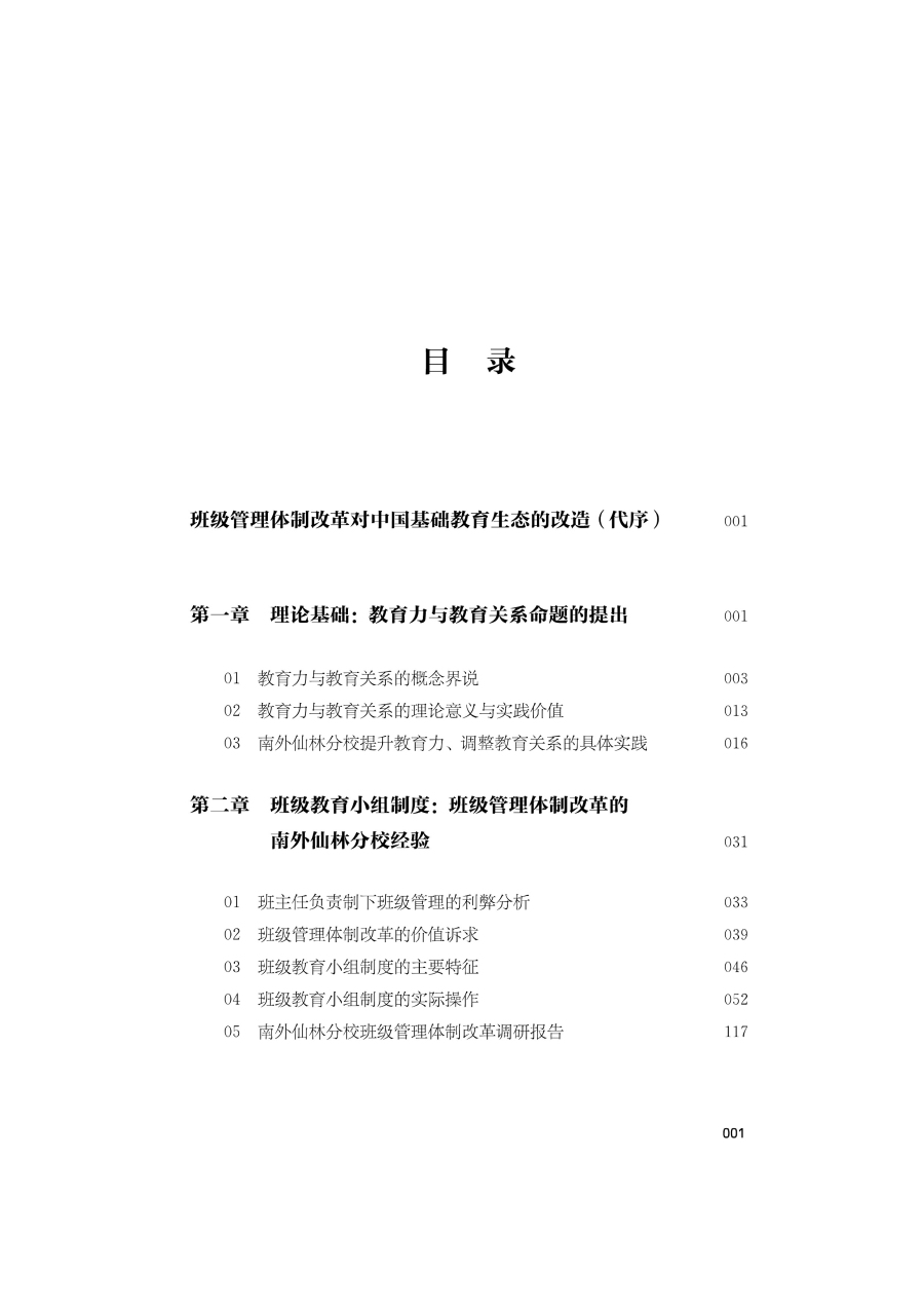 本书通过班级管理体制改革的理论研究和实践探索,重新加以梳理、总结提炼班主任管理体制与机制创新成果——班级教育小组制度,推介班级管理体制改革的南外仙林分校经验、润州经验,提升全体教师教书育人的意识和能力,营造全面育人的班级教育环境;同时进行理论解读,力图引起理论界的关注,共同致力于改变当下的基础教育生态,为青少年健康成长营造一个良好的内部环境与氛围。全书主体内容分四章,分别为“理论基础:教育力与教育关系命题的提出”“班级教育小组制度:班级管理体制改革的南外仙林分校经验”“接续与创新:班级管理体制改革的润州经验”“重构教育关系:班级管理体制改革的理论解读”。