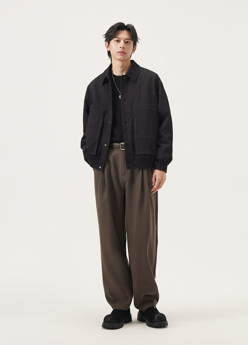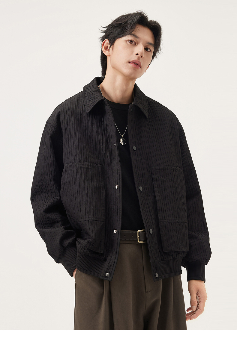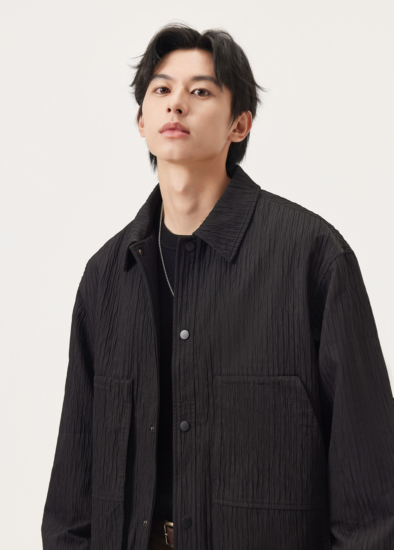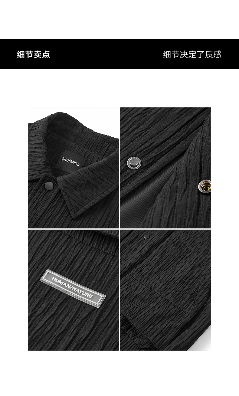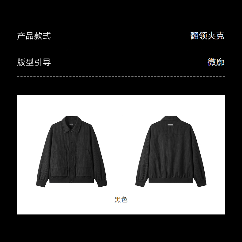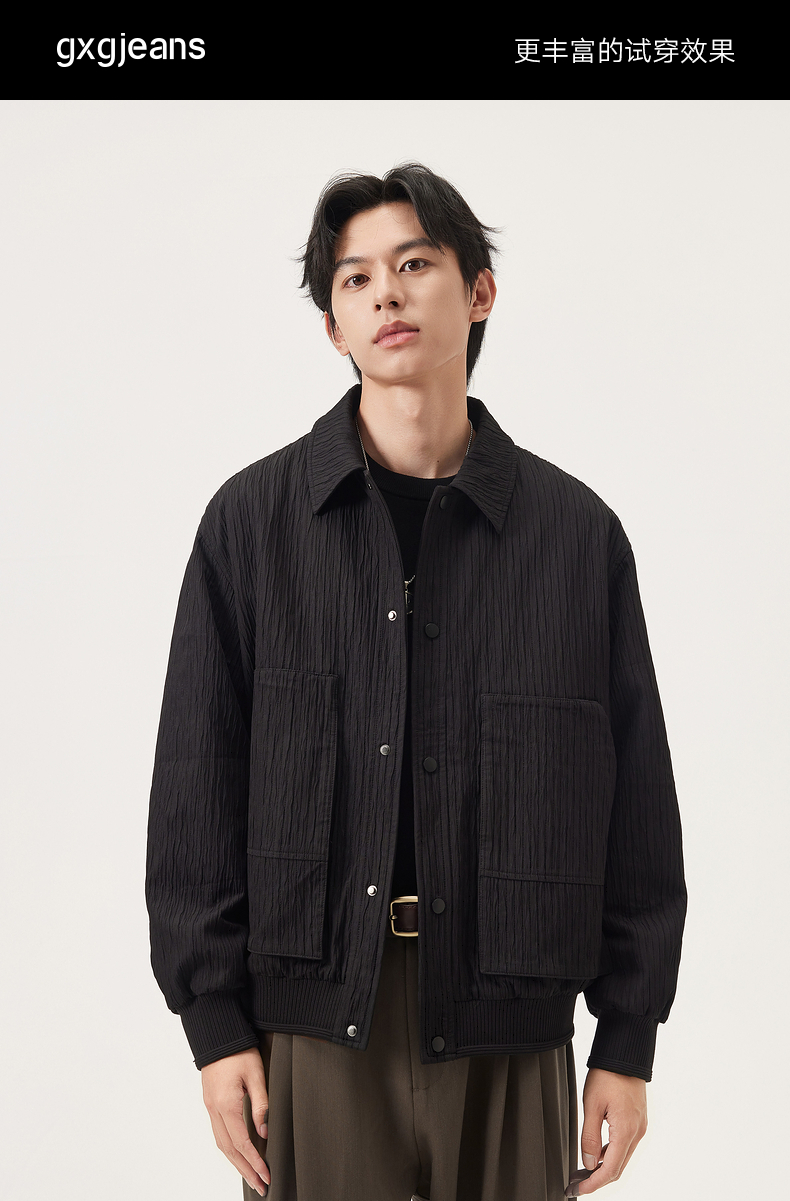 gxg.jeans男装 黑色时尚肌理感翻领宽松夹克外套男生 25年秋热卖
