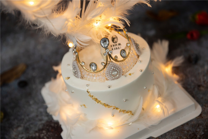 爱心羽毛皇冠蛋糕(心形羽毛需要自己插)