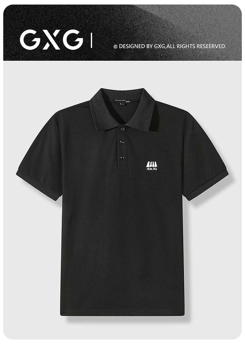 GXG男装25夏季时尚刺绣简约翻领纯色百搭通勤日常男式短袖POLO衫K&C