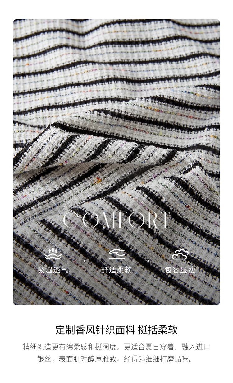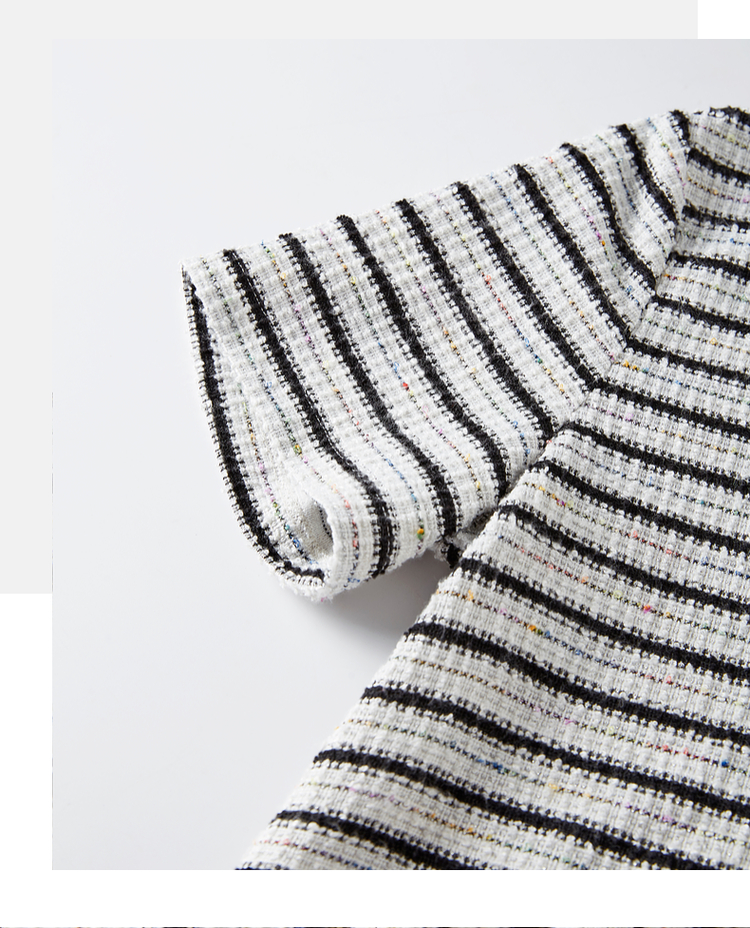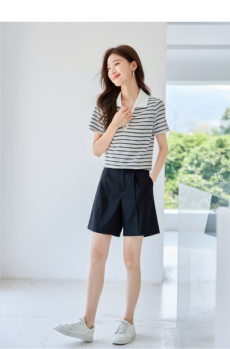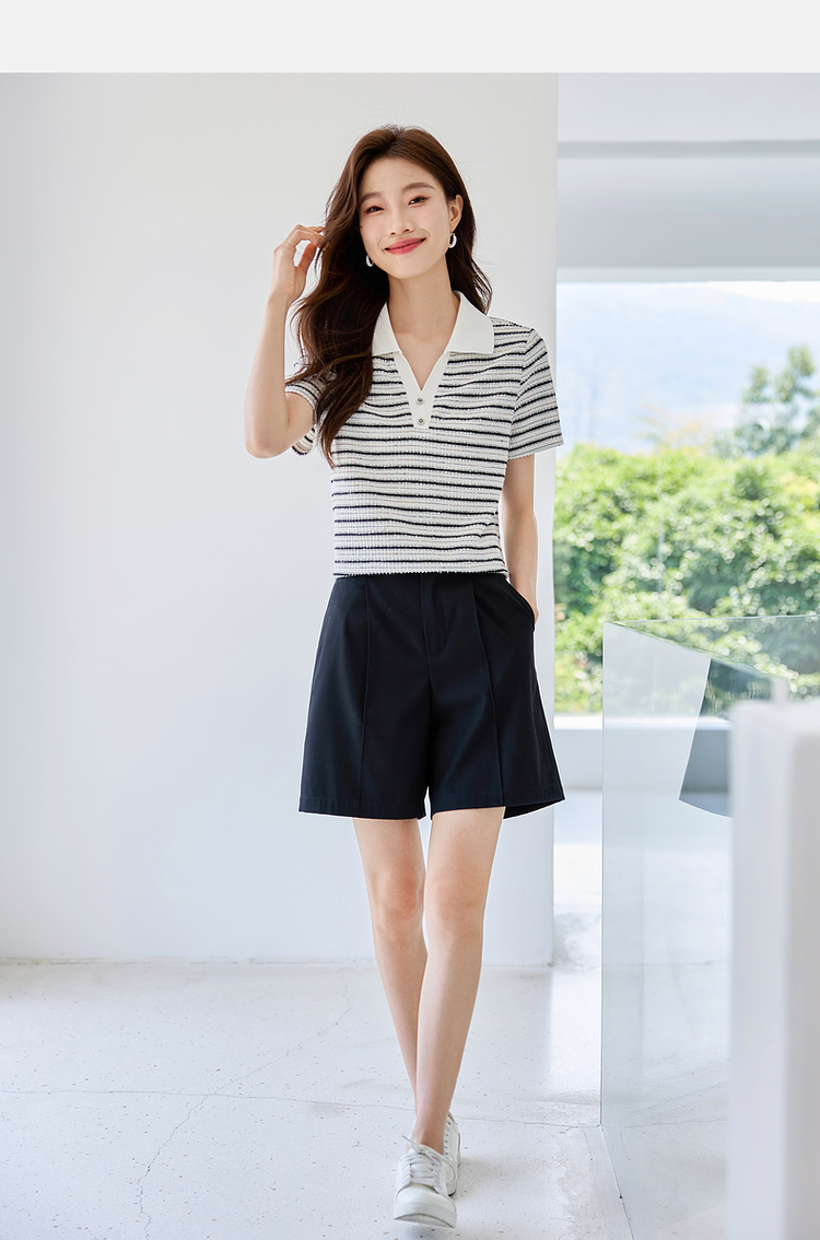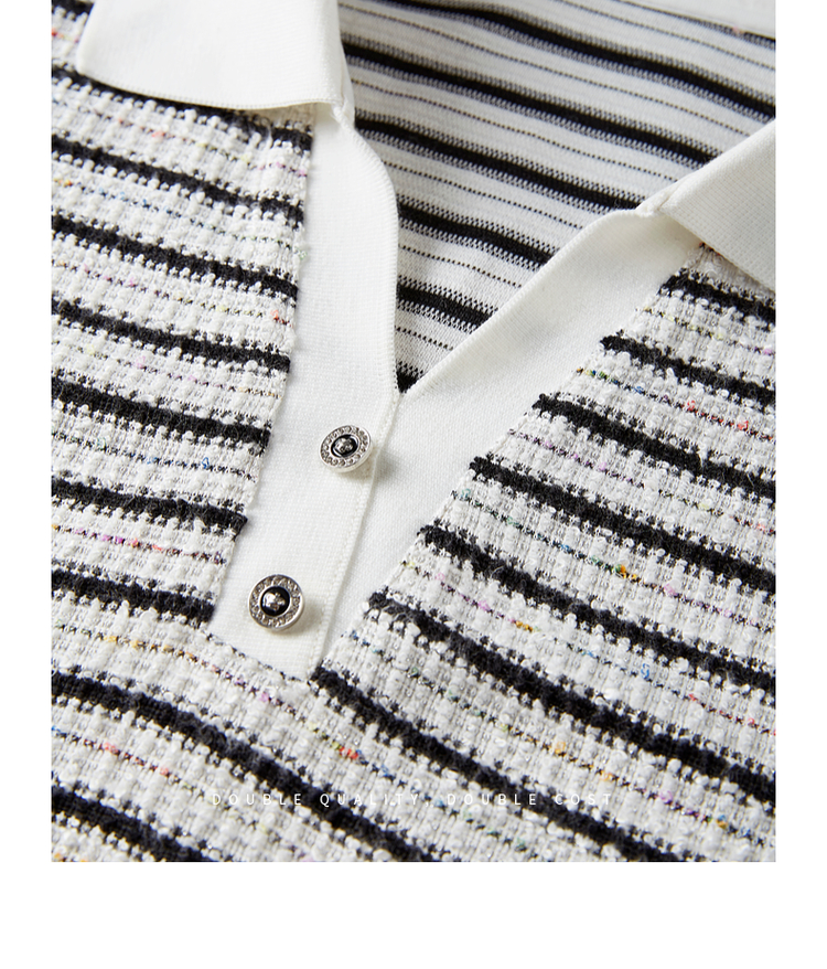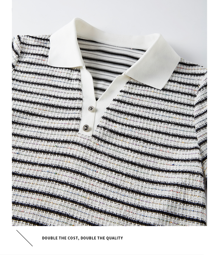【专属特价】熙世界小香风条纹针织T恤短袖204夏季新款优雅气质POLO翻领上衣