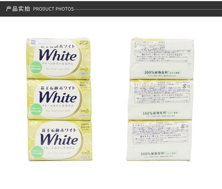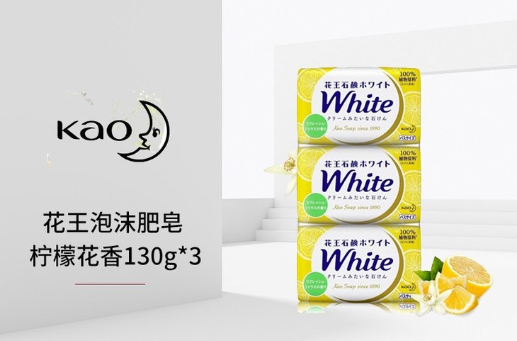 KAO/花王 WHITE天然植物沐浴柠檬花香护肤香皂 130G*3新到JPY带授权招加盟代理