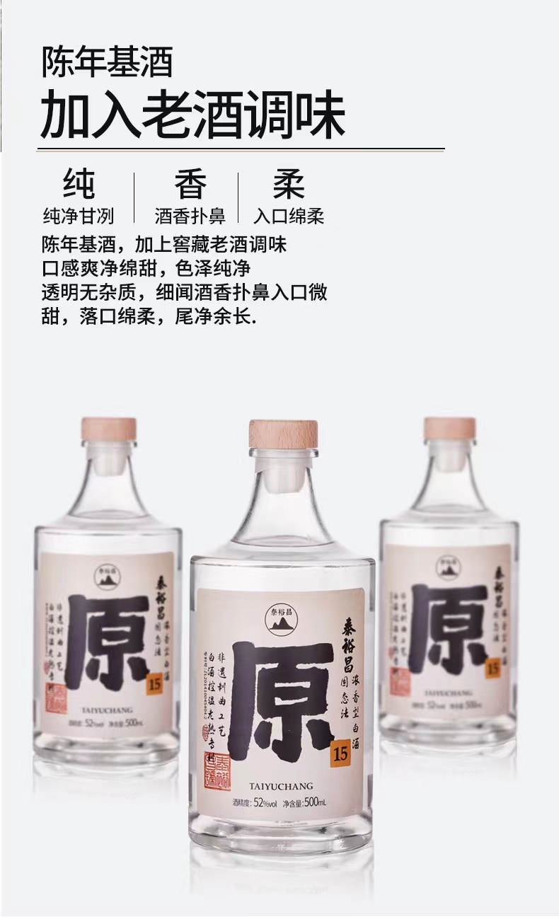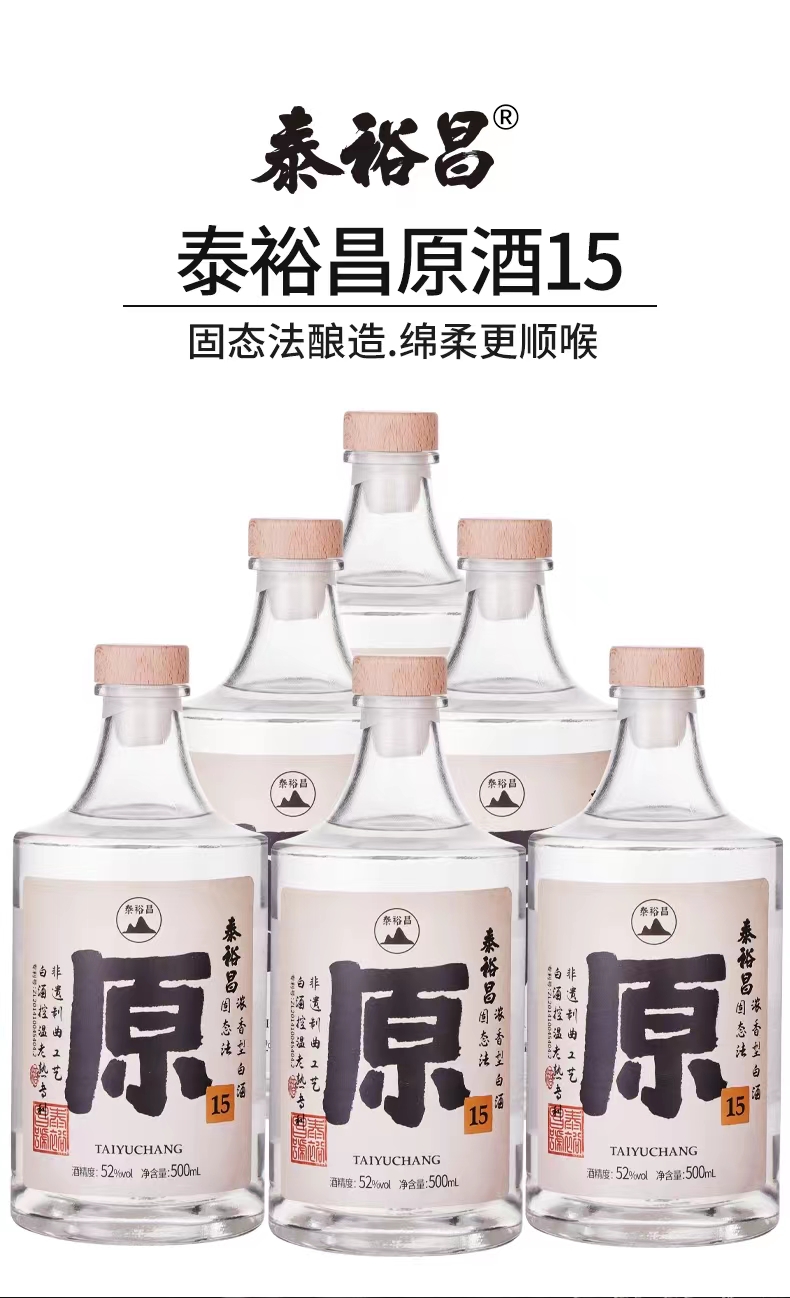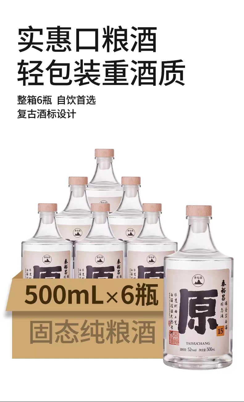 [原15]52度-泰裕昌白酒整箱浓香型白酒粮食酒口粮酒500ml*6瓶光瓶酒