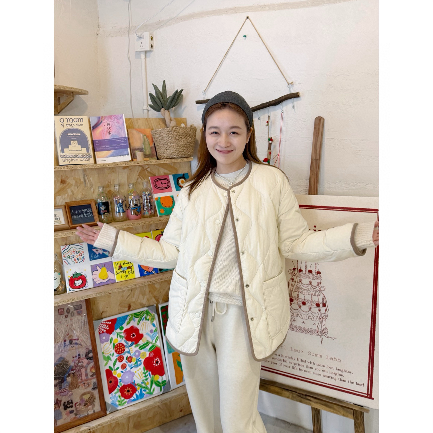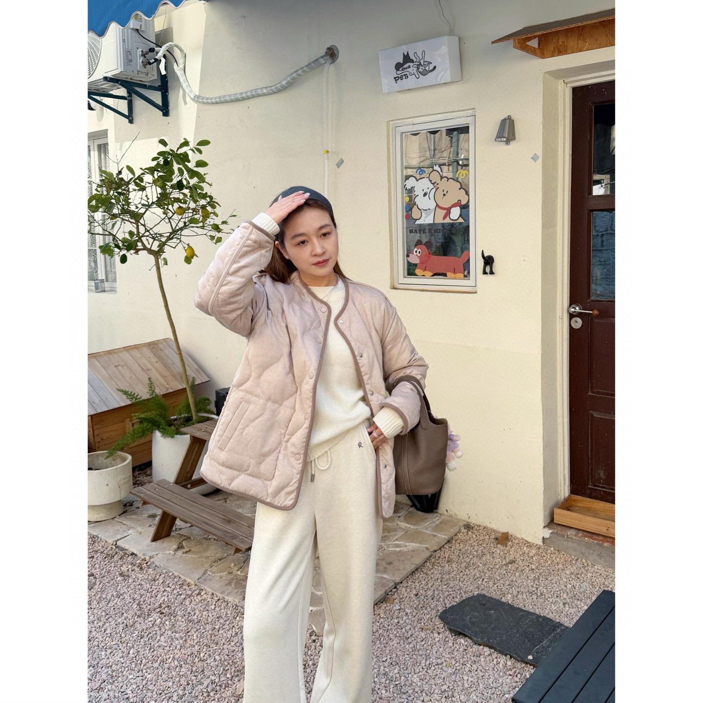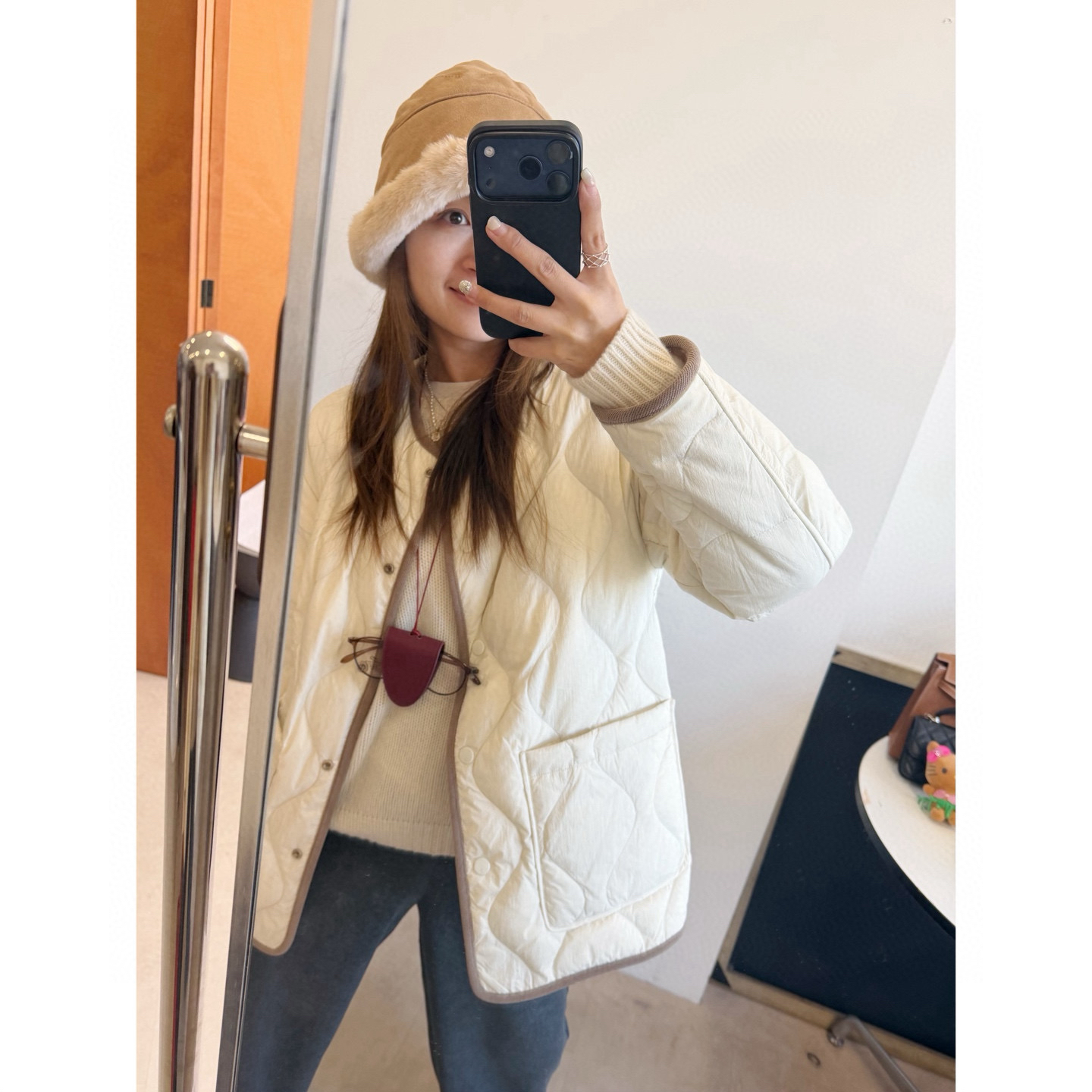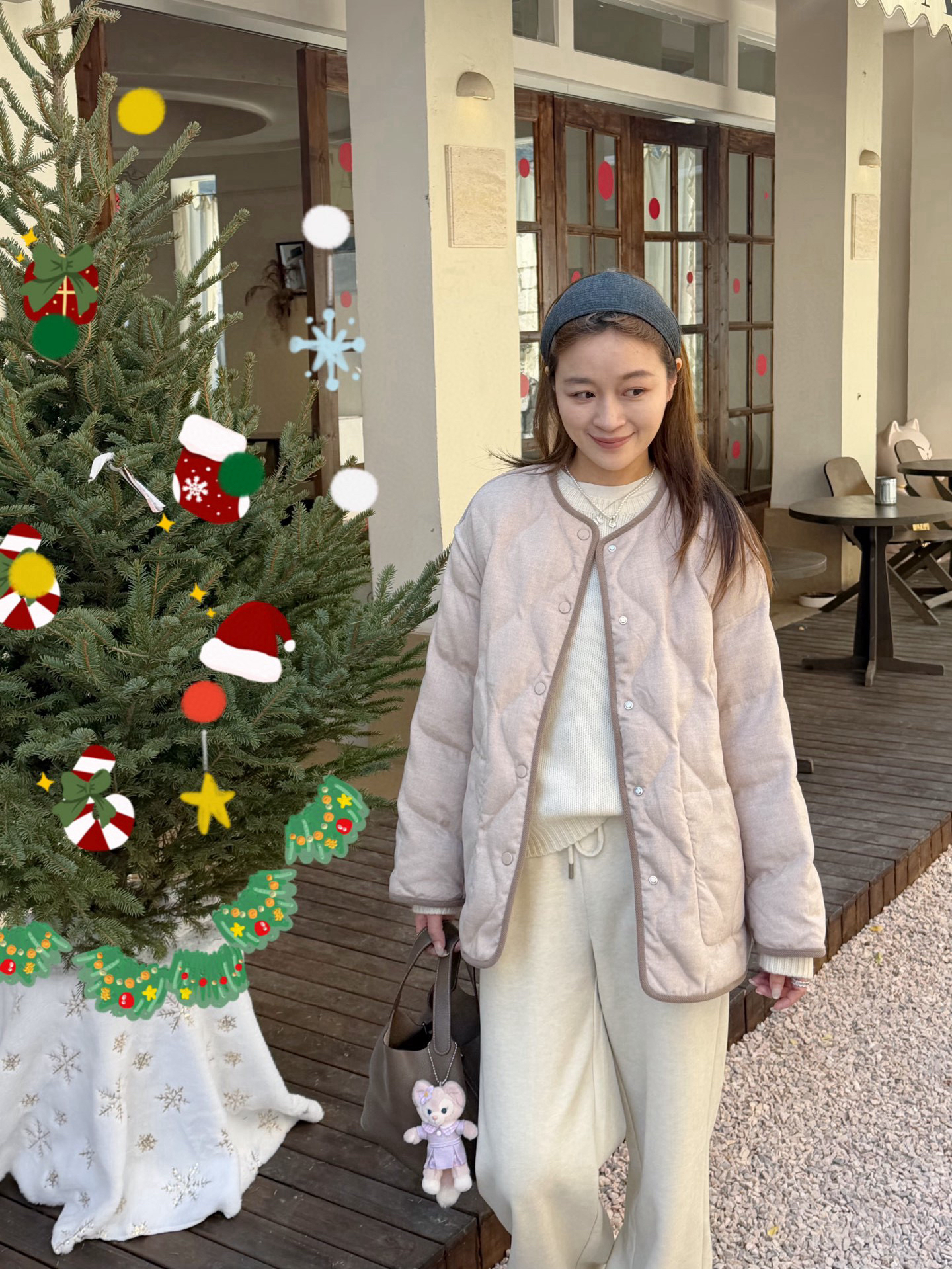 身尽显高ji肌理感。 奶白面三防fang水羽绒