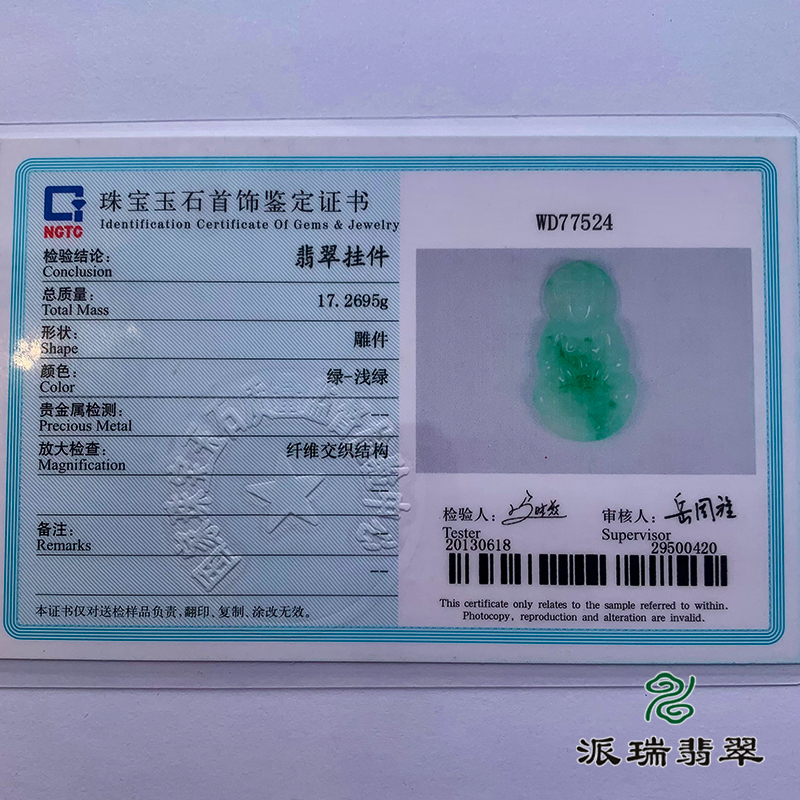 派瑞翡翠 18k金翡翠吊坠 冰种 满绿