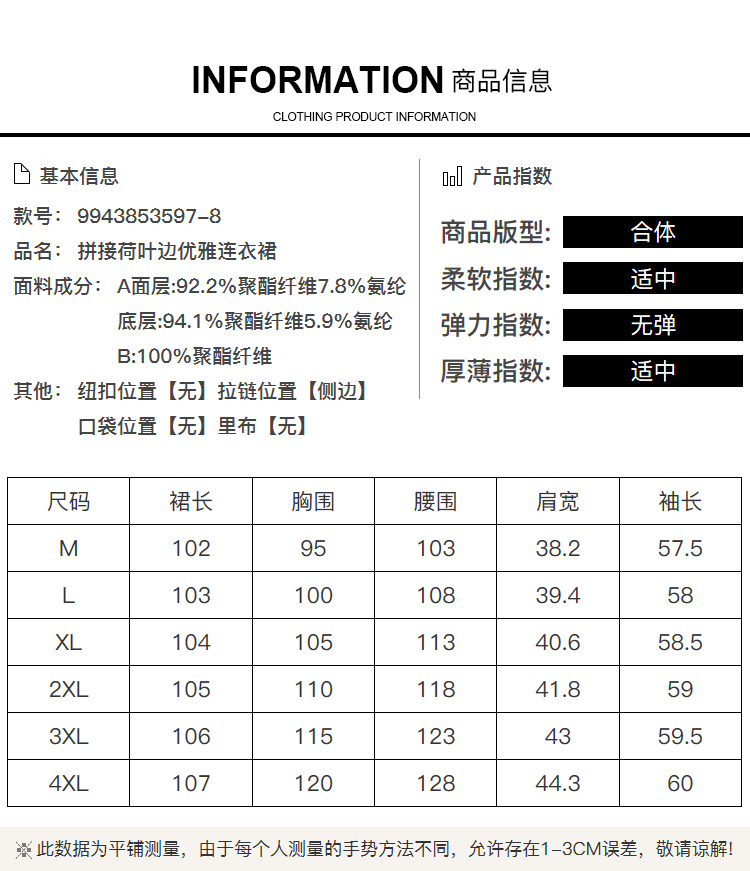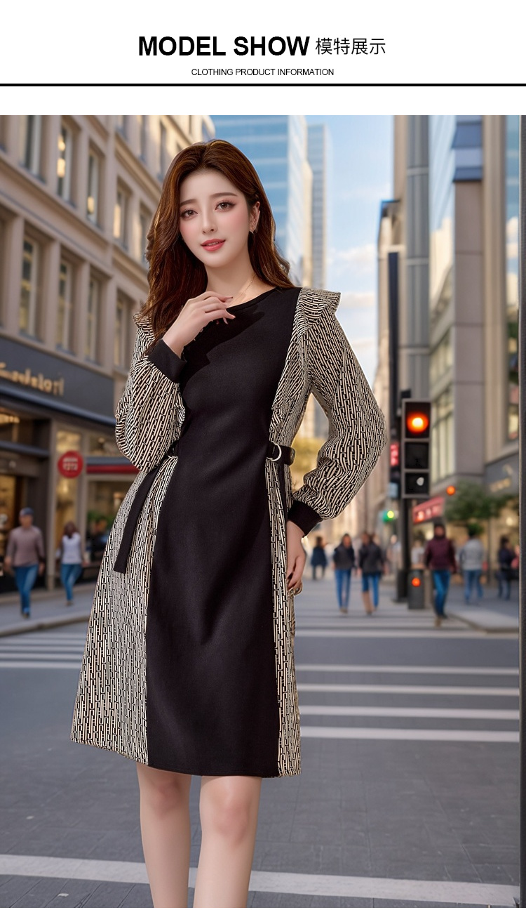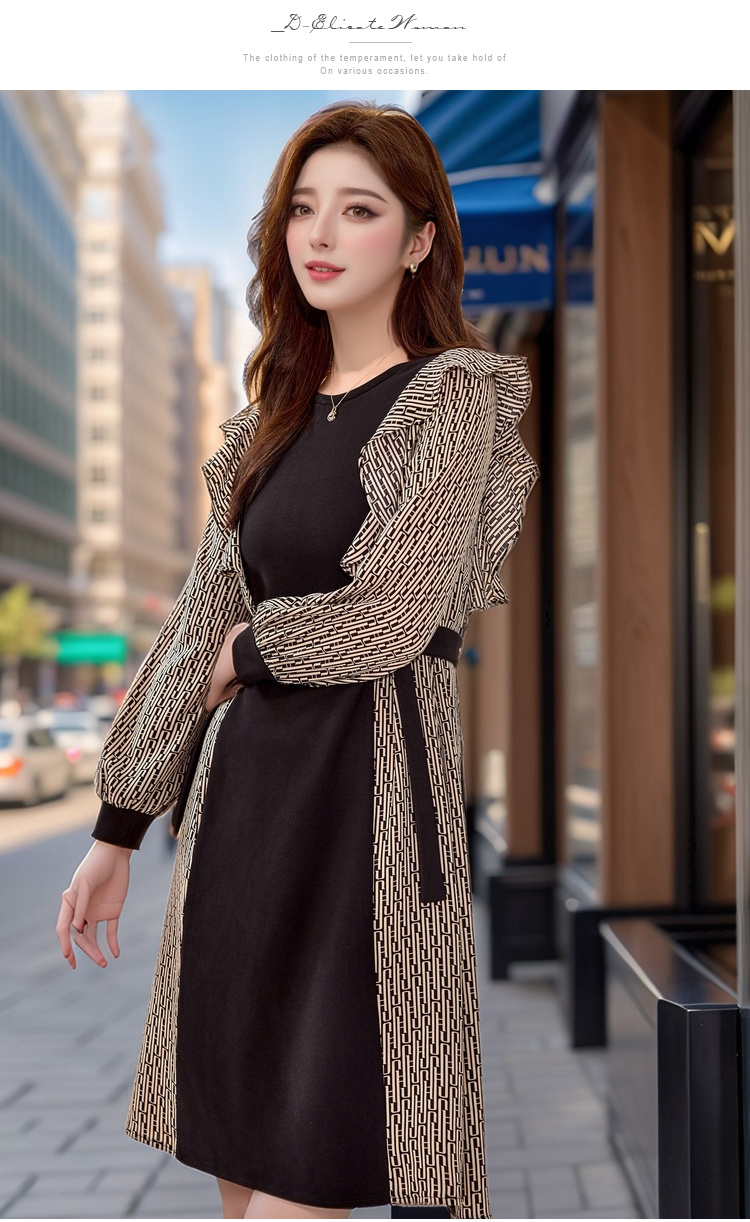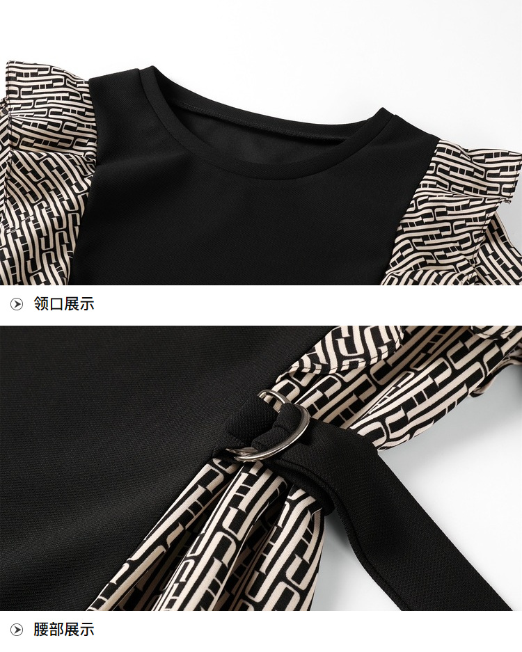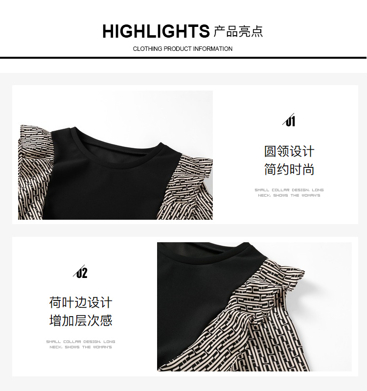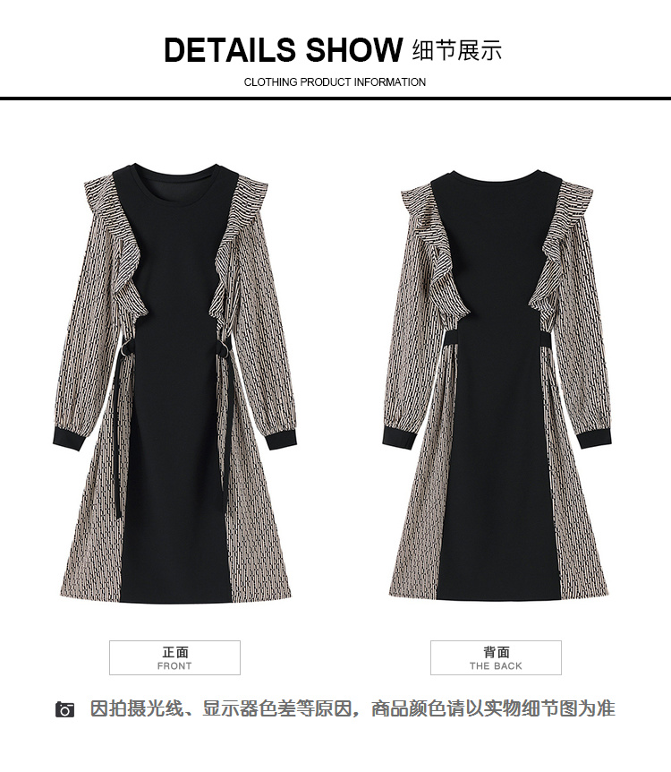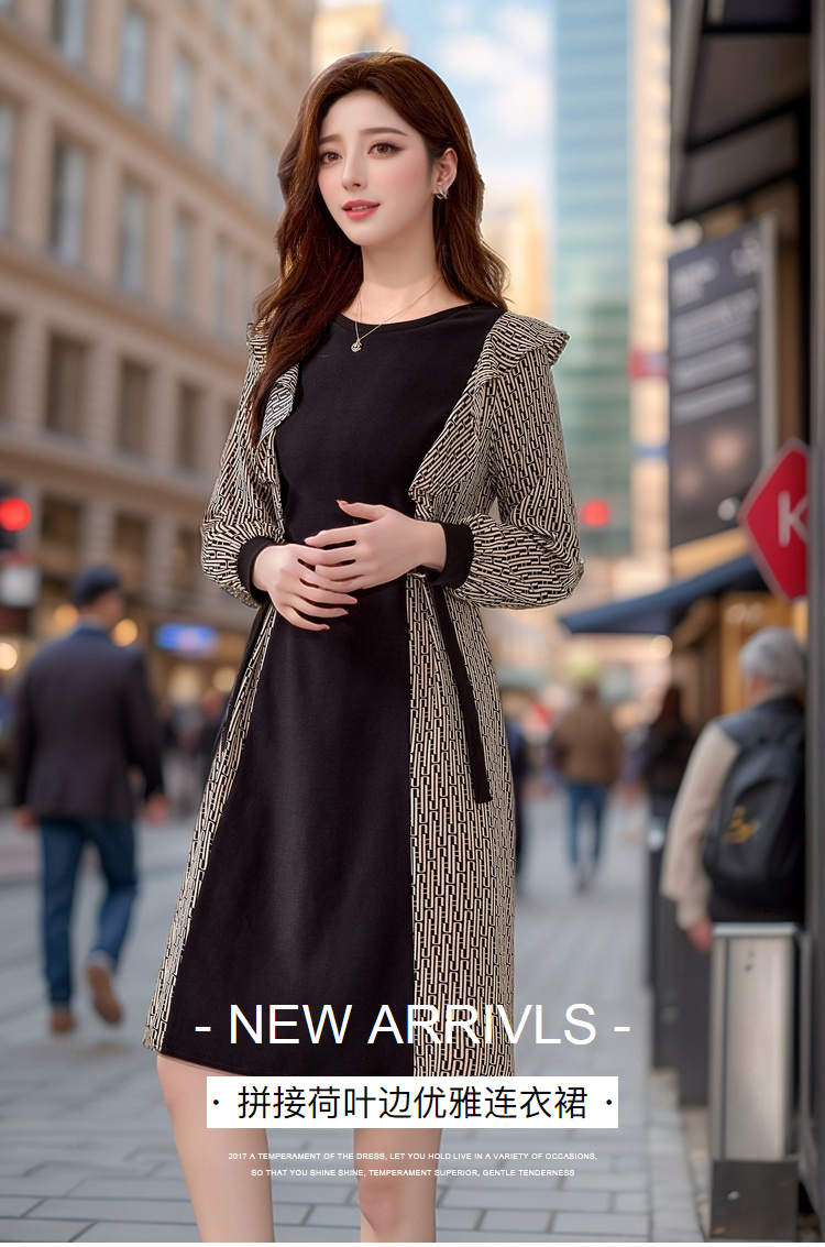 奢姿2024年秋季新款大码女装气质拼接裙子胖妹妹荷叶边优雅连衣裙
