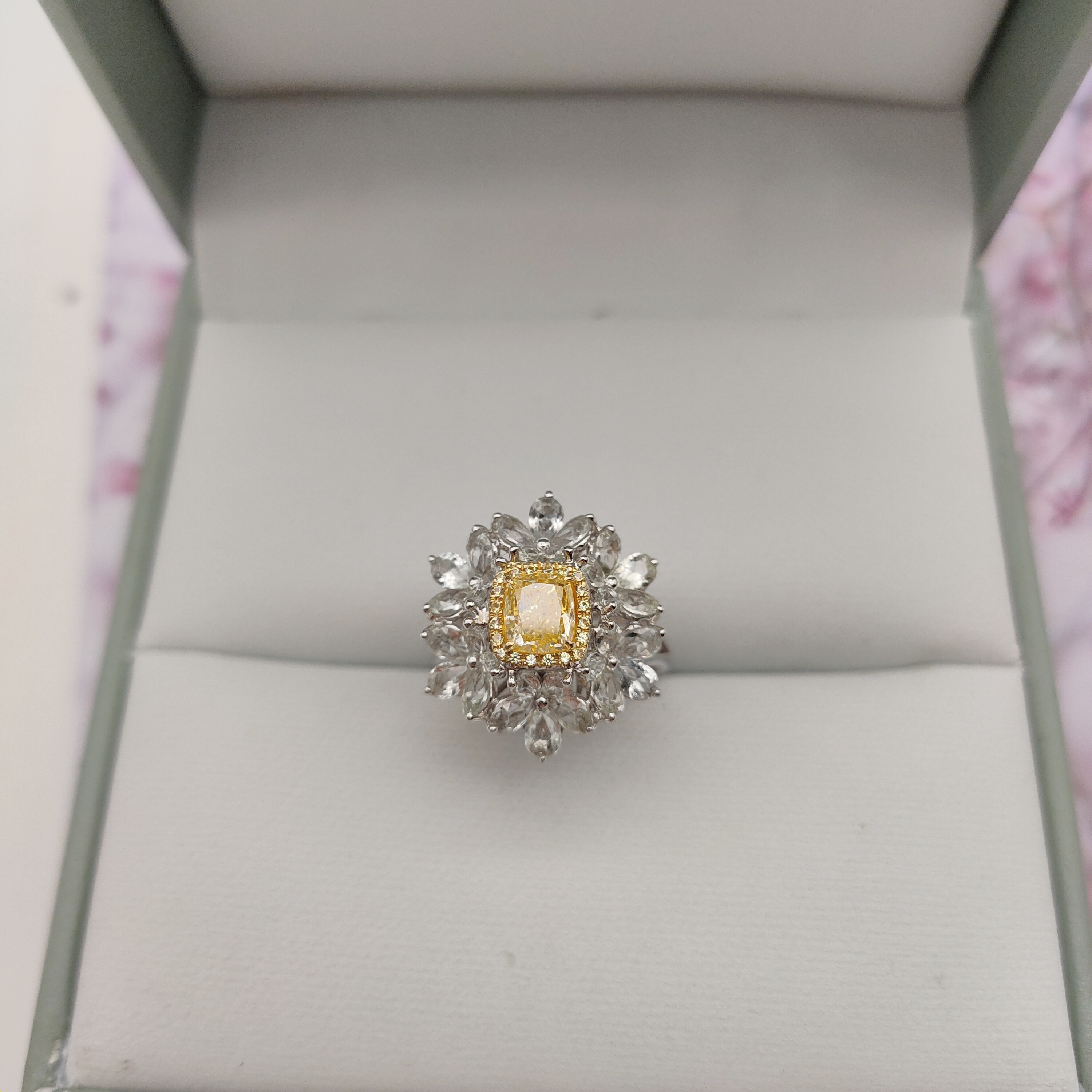 18K钻石戒指,金重:6.12克,主石,:1.00ct,颜色:黄,净度:VS ,圈口:13#,火彩一流,耀眼夺目, 经典百搭 , 超级好看,现货超低价