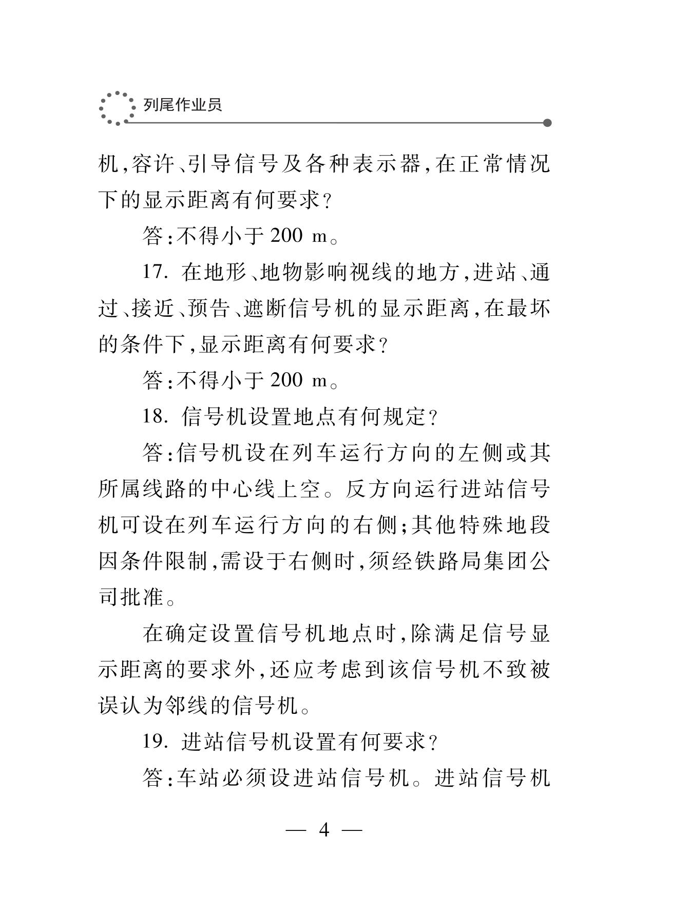 本书为北京局集团公司《铁路职工岗位技能应知应会学习手册》丛书中的一种。本书以国铁集团发布的规章文件和技术标准为依据,在细化内容的基础上,以突出突际应用为目标,具有较强的针对性、实用性。全书采用问答题的形式,通俗易懂,便于查询。本书内容涵盖铁路列尾作业员岗位工作所涉及的相关知识。主要包括基本规章、专业规章、基本知识、作业标准、应急处置五部分内容。