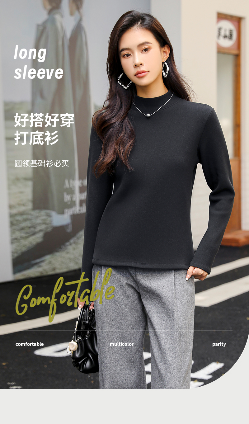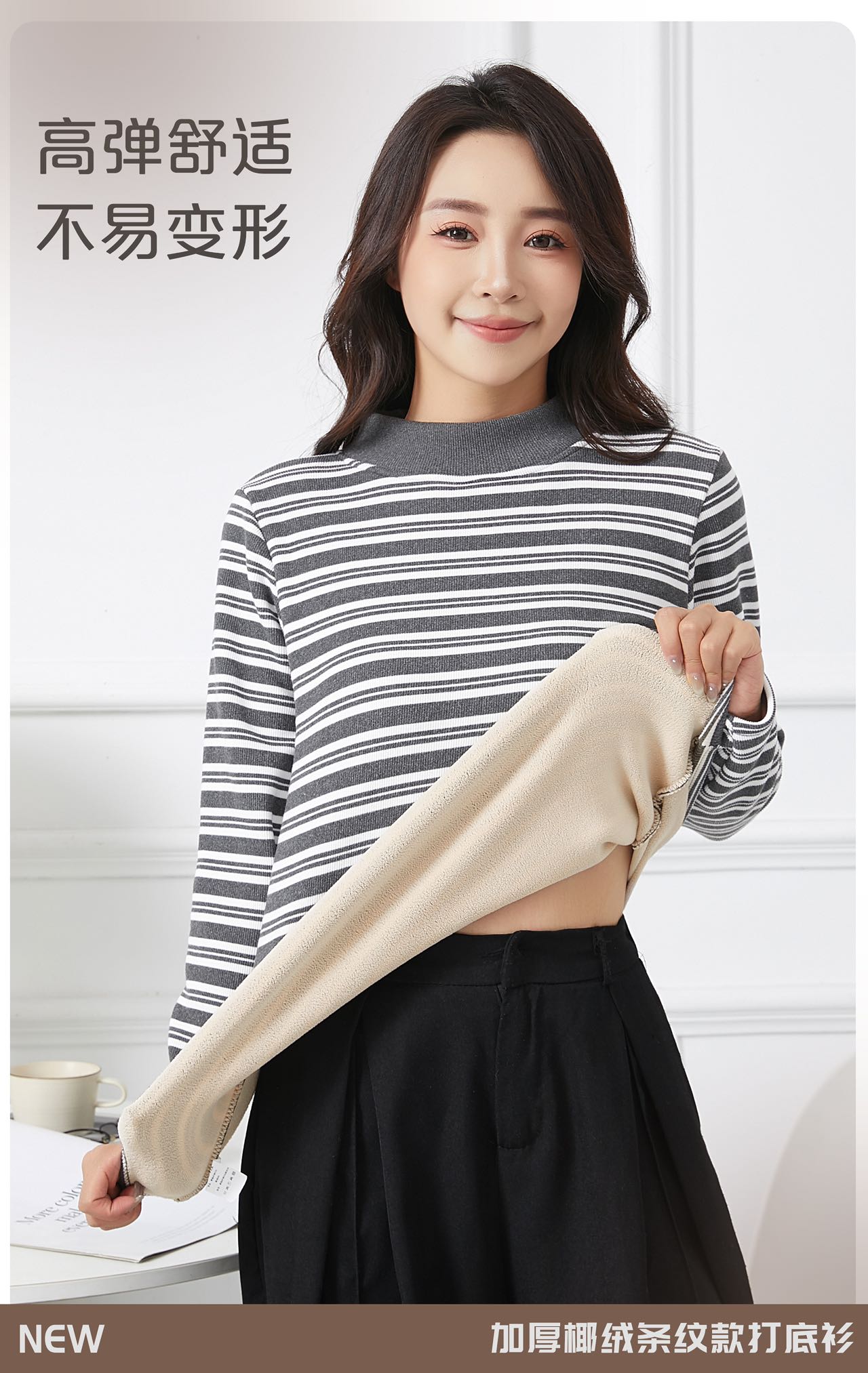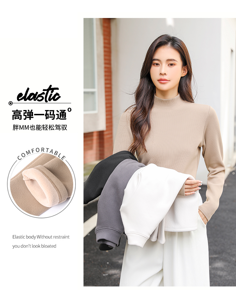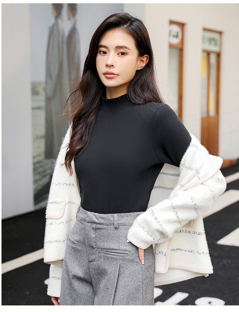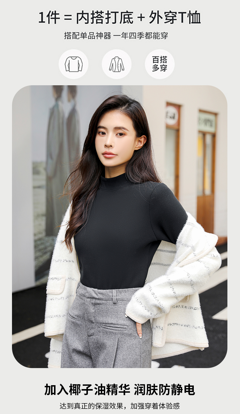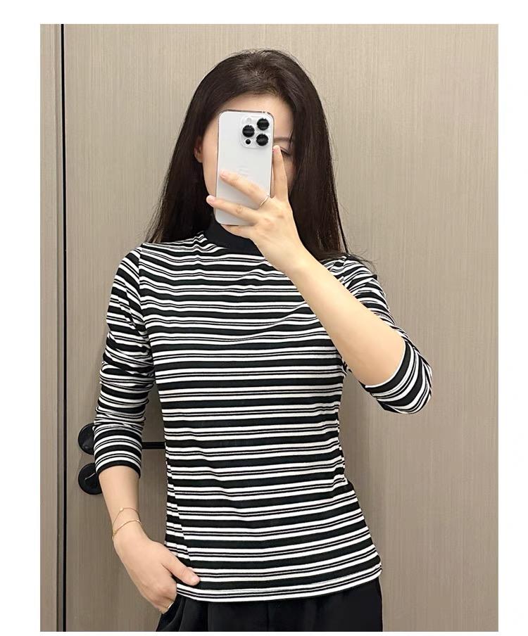 420g考拉绒罗纹椰绒云感衣条纹黑白保暖衣打底衫加绒加厚女士中领T09/2805/M287