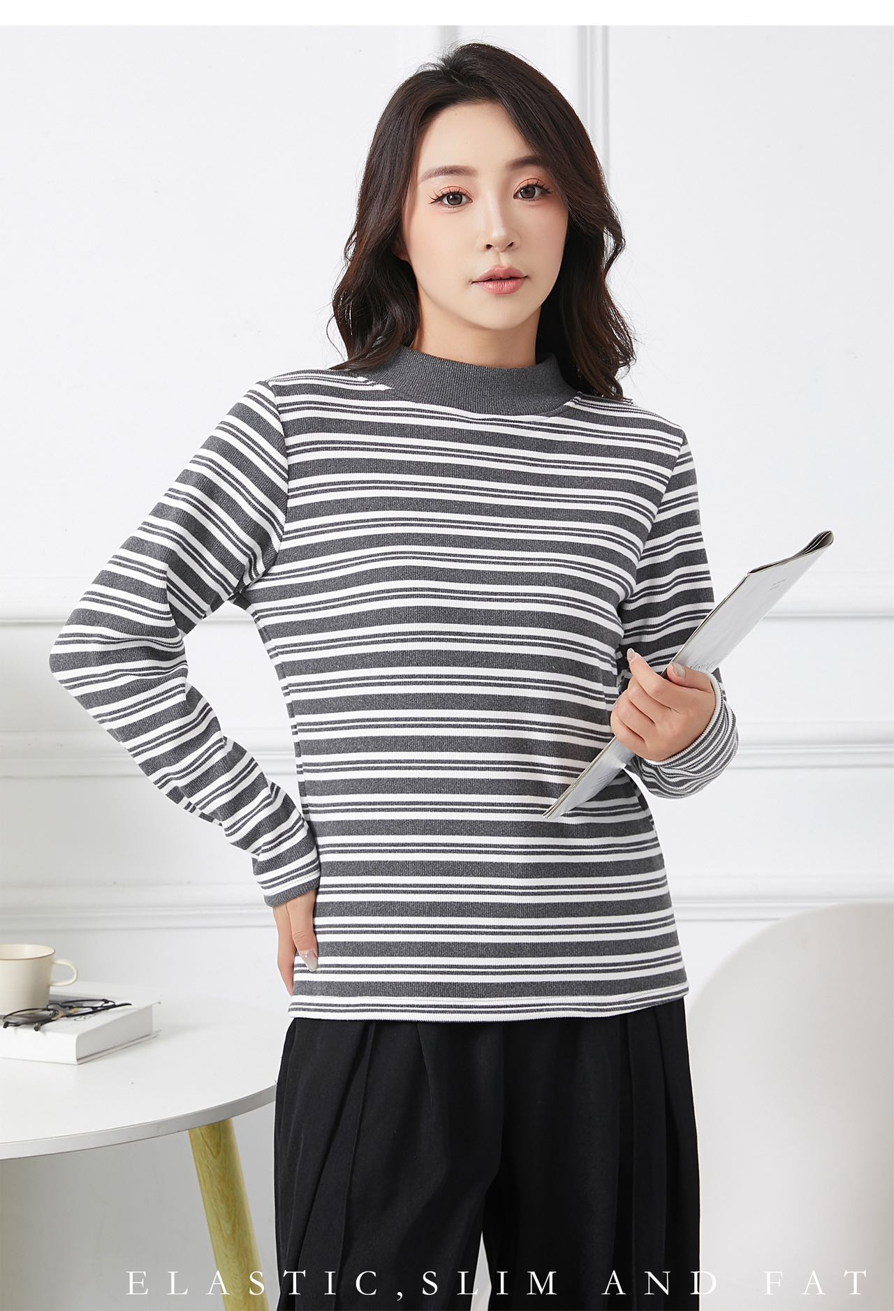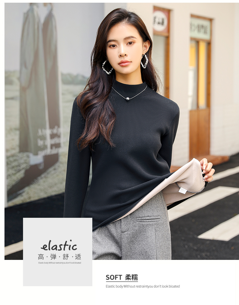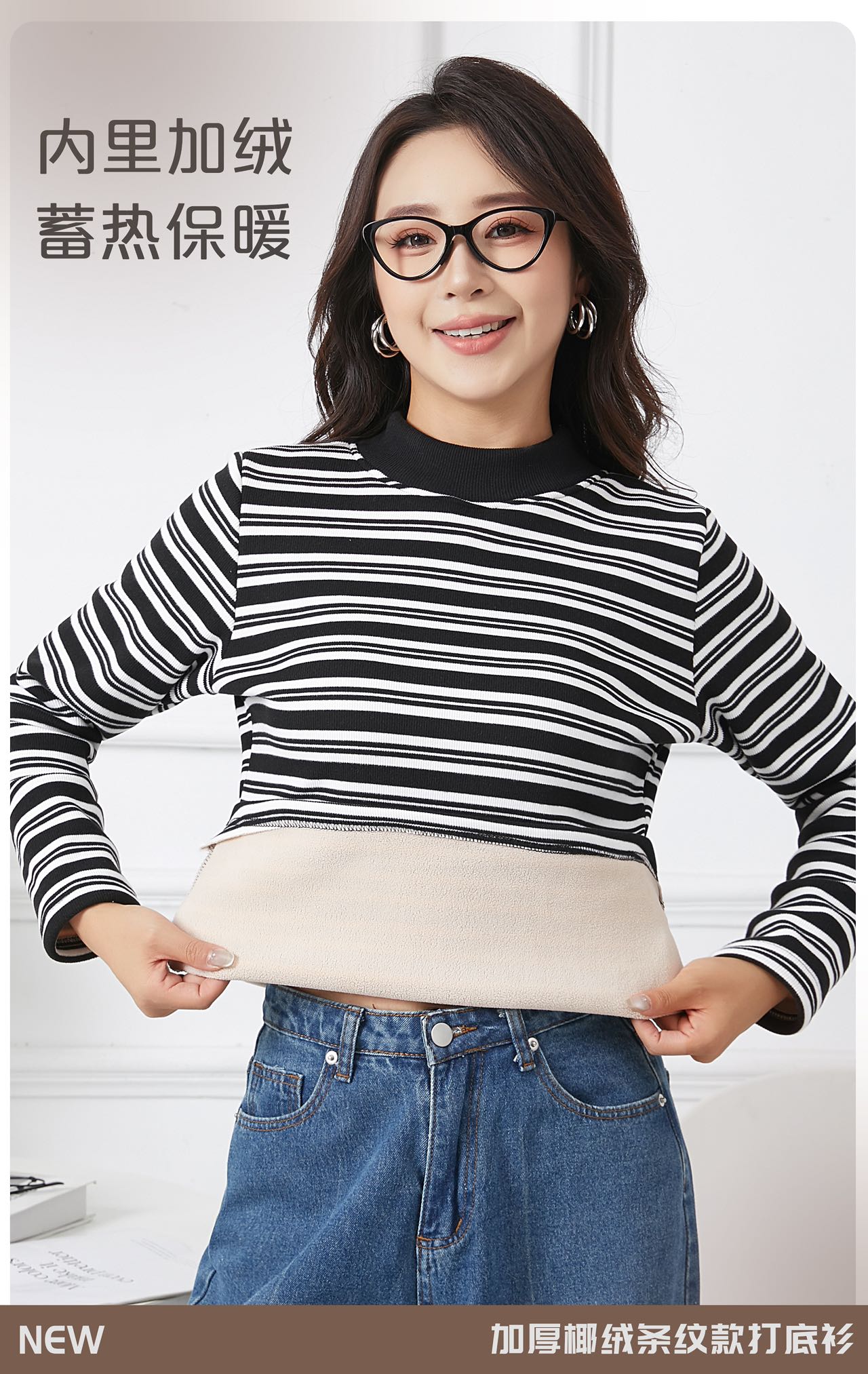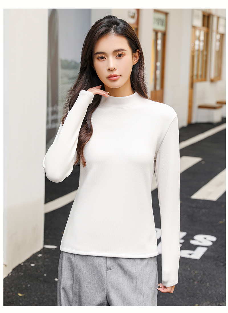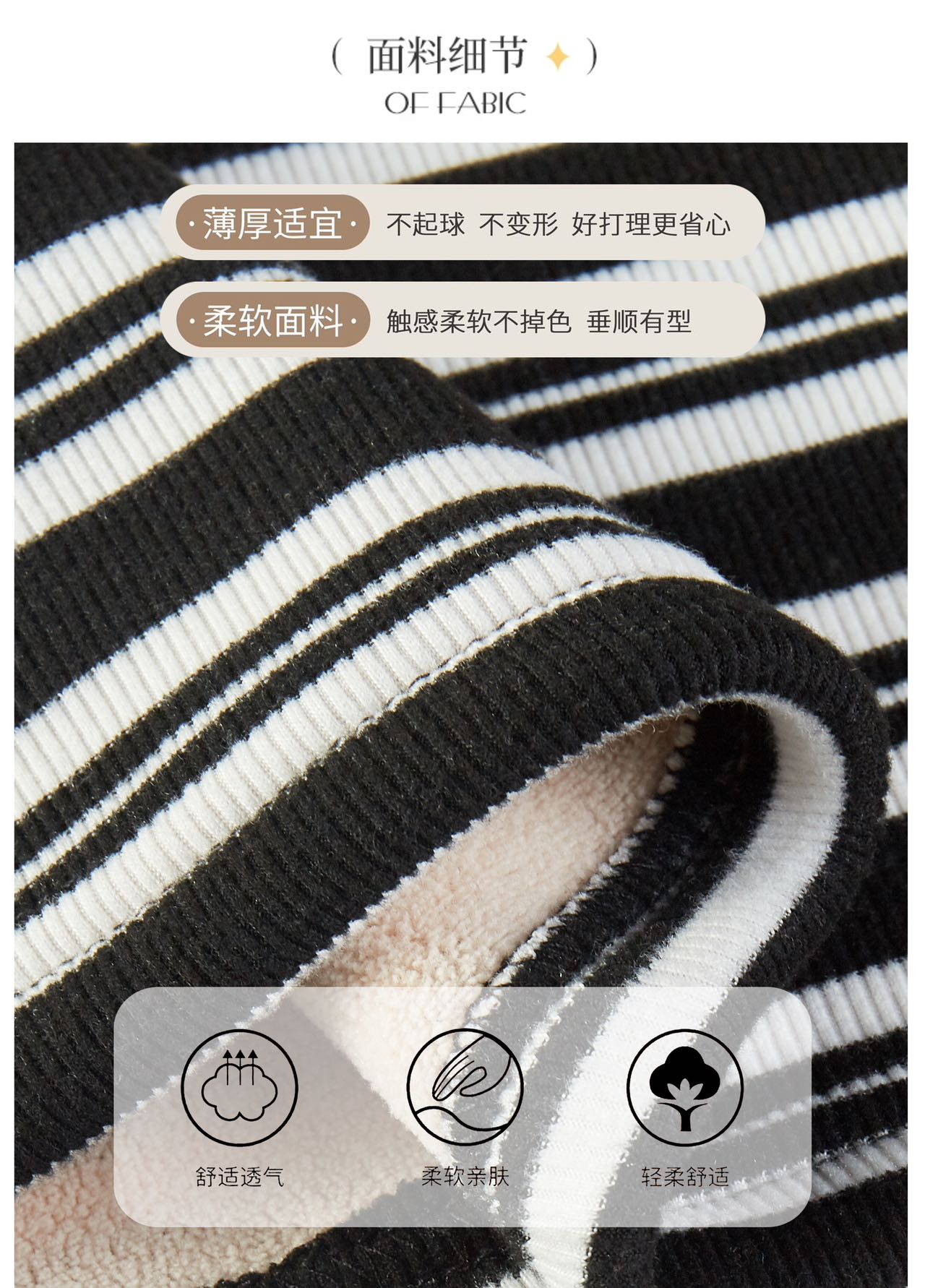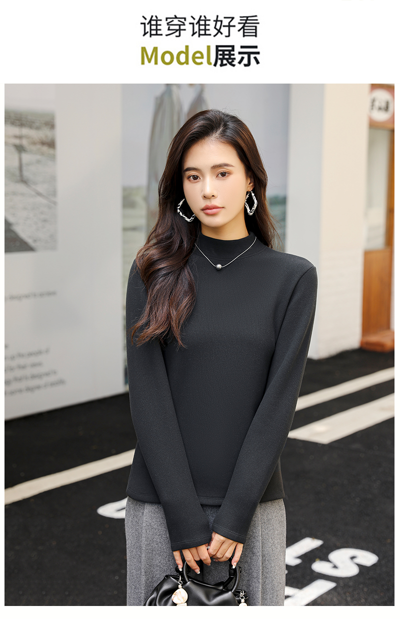 420g考拉绒罗纹椰绒云感衣条纹黑白保暖衣打底衫加绒加厚女士中领T09/2805/M287