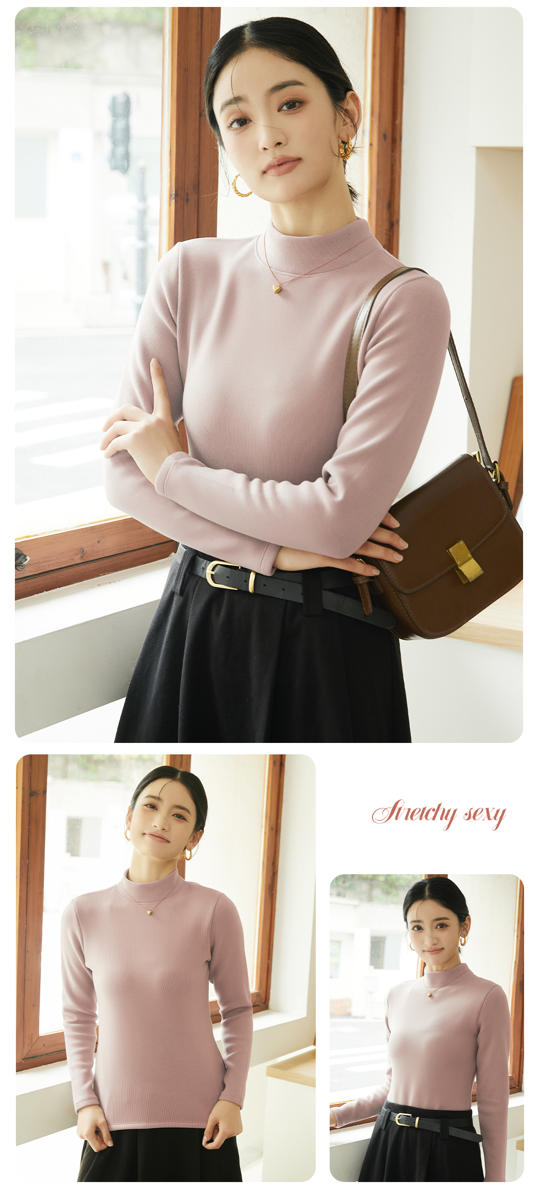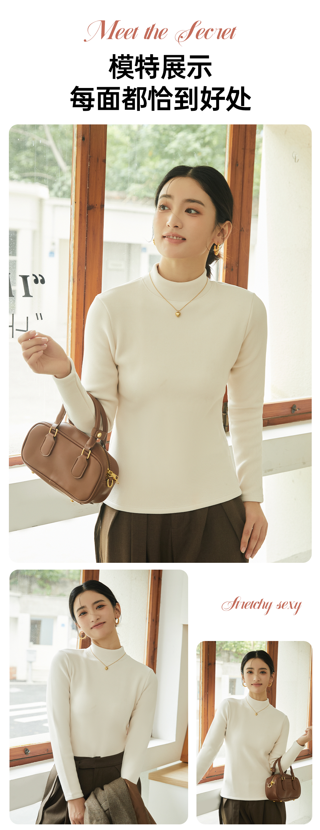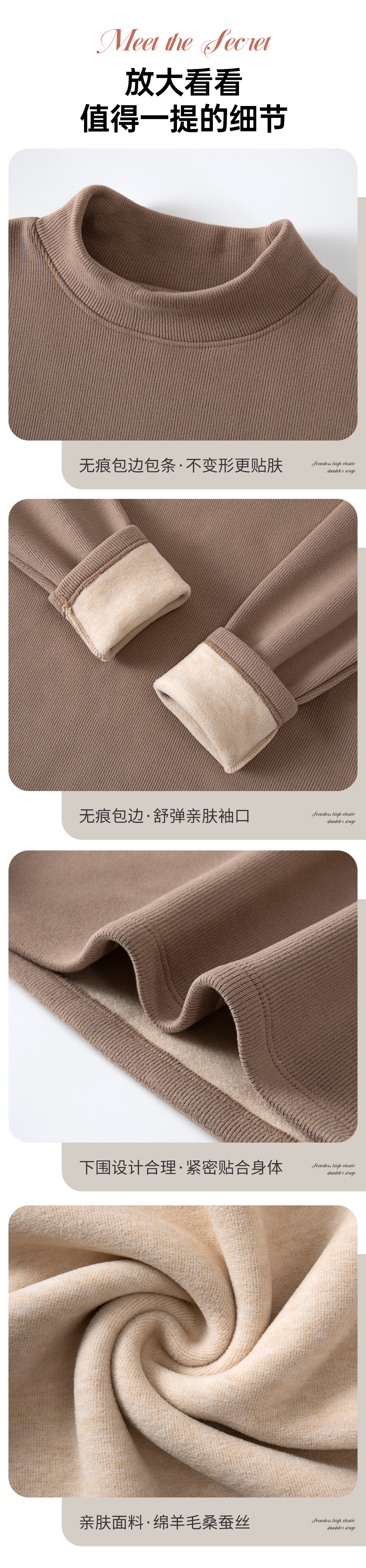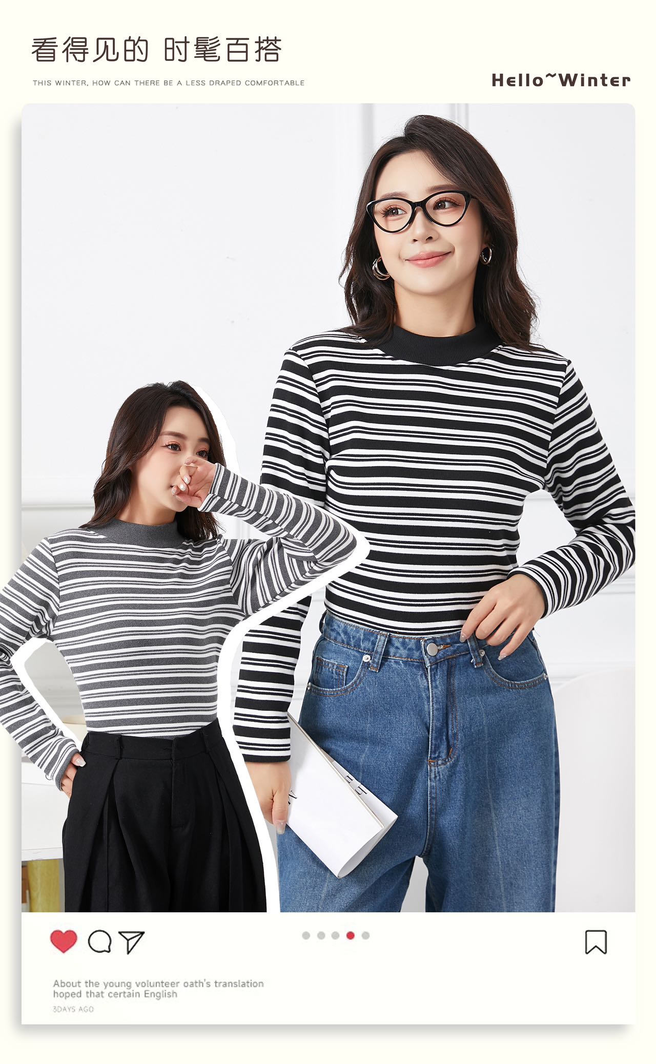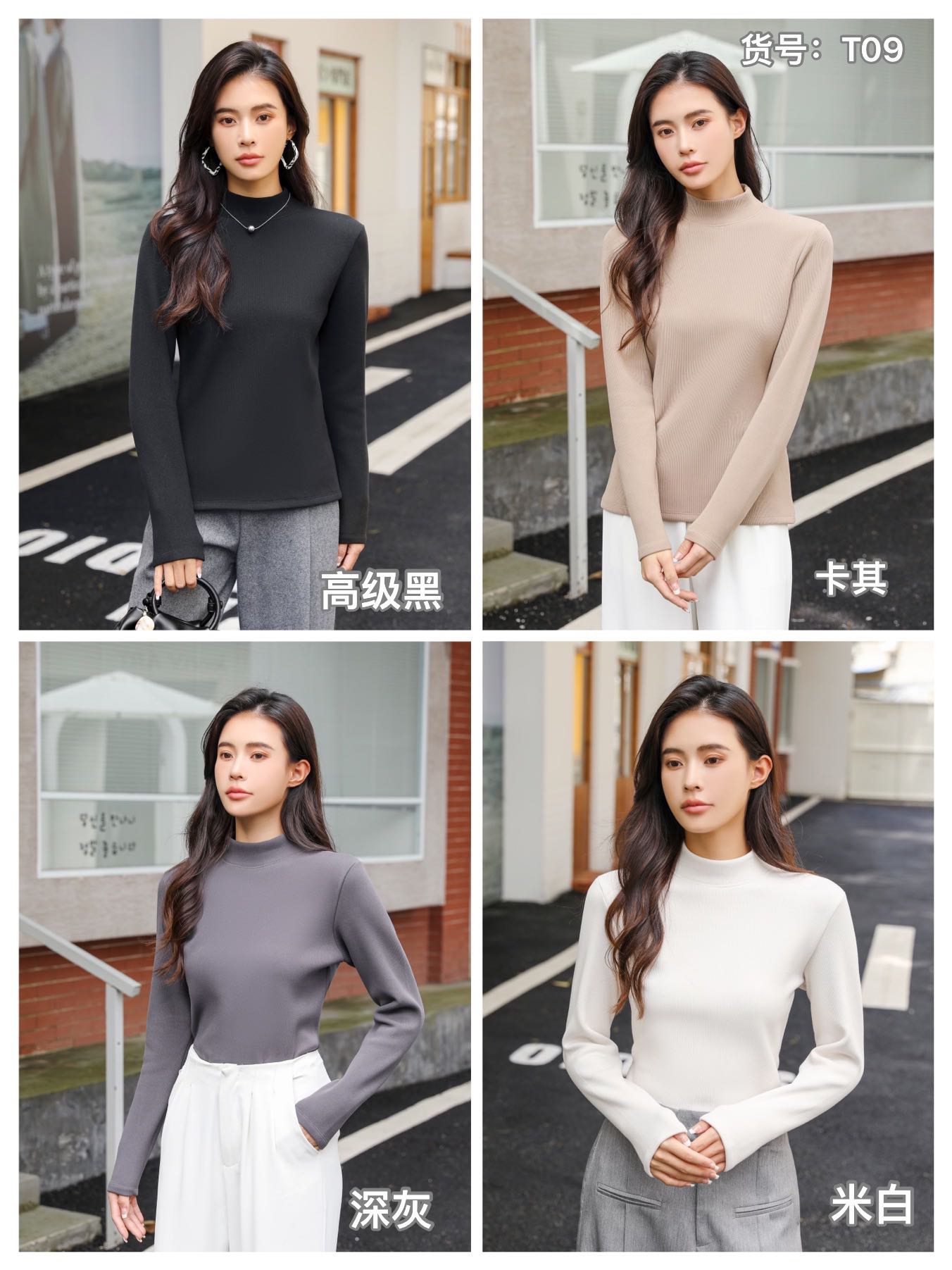 420g考拉绒罗纹椰绒云感衣条纹黑白保暖衣打底衫加绒加厚女士中领T09/2805/M287