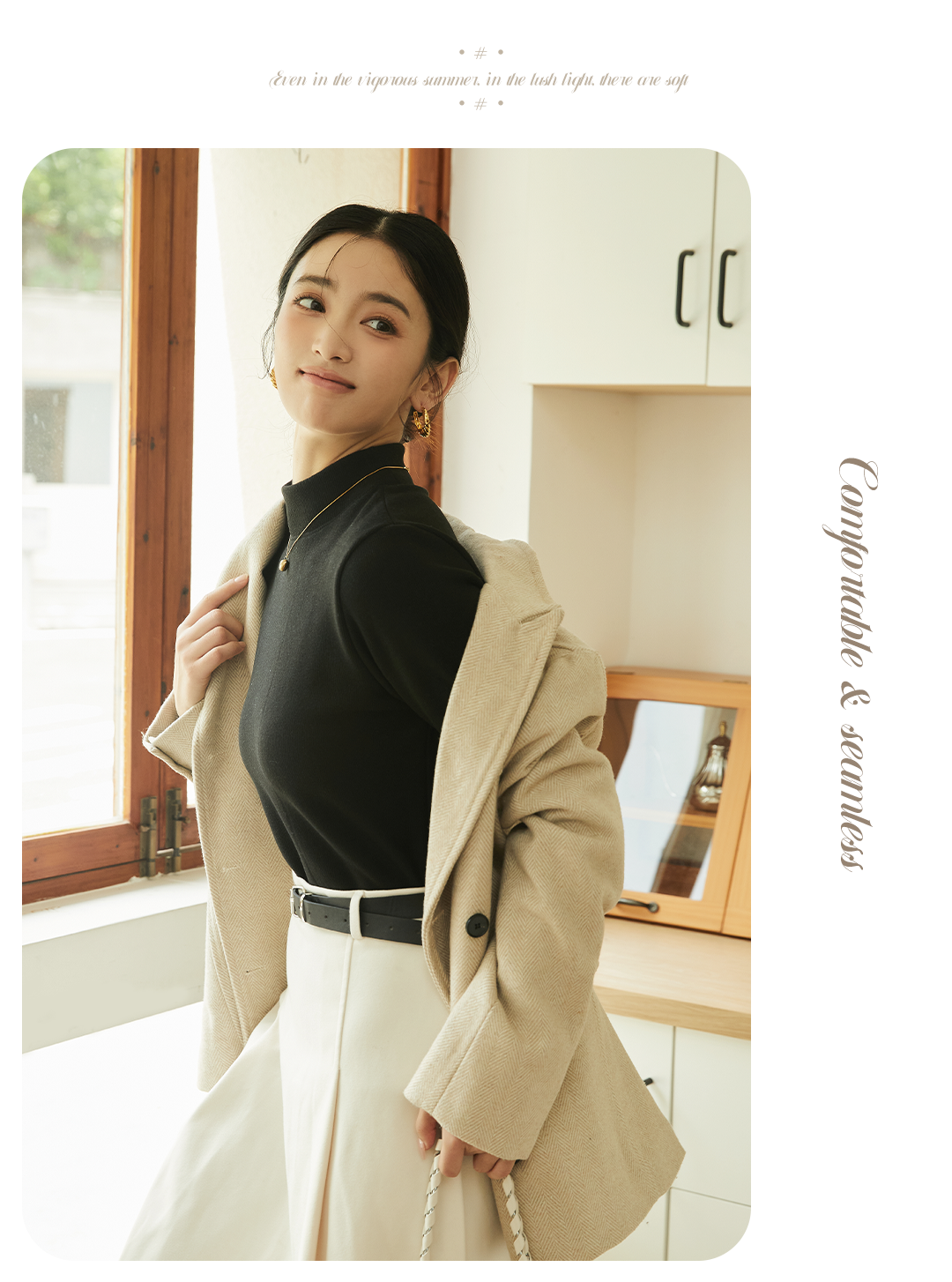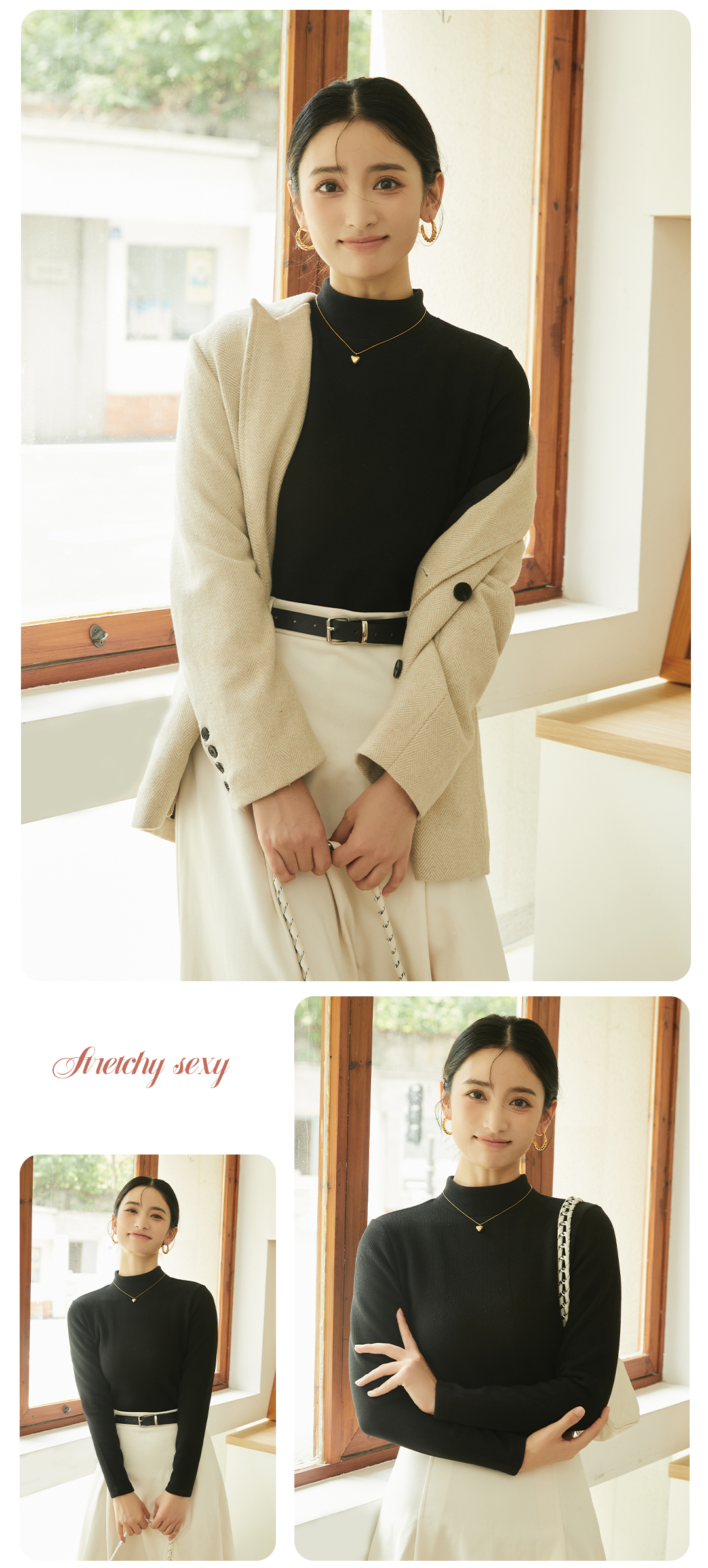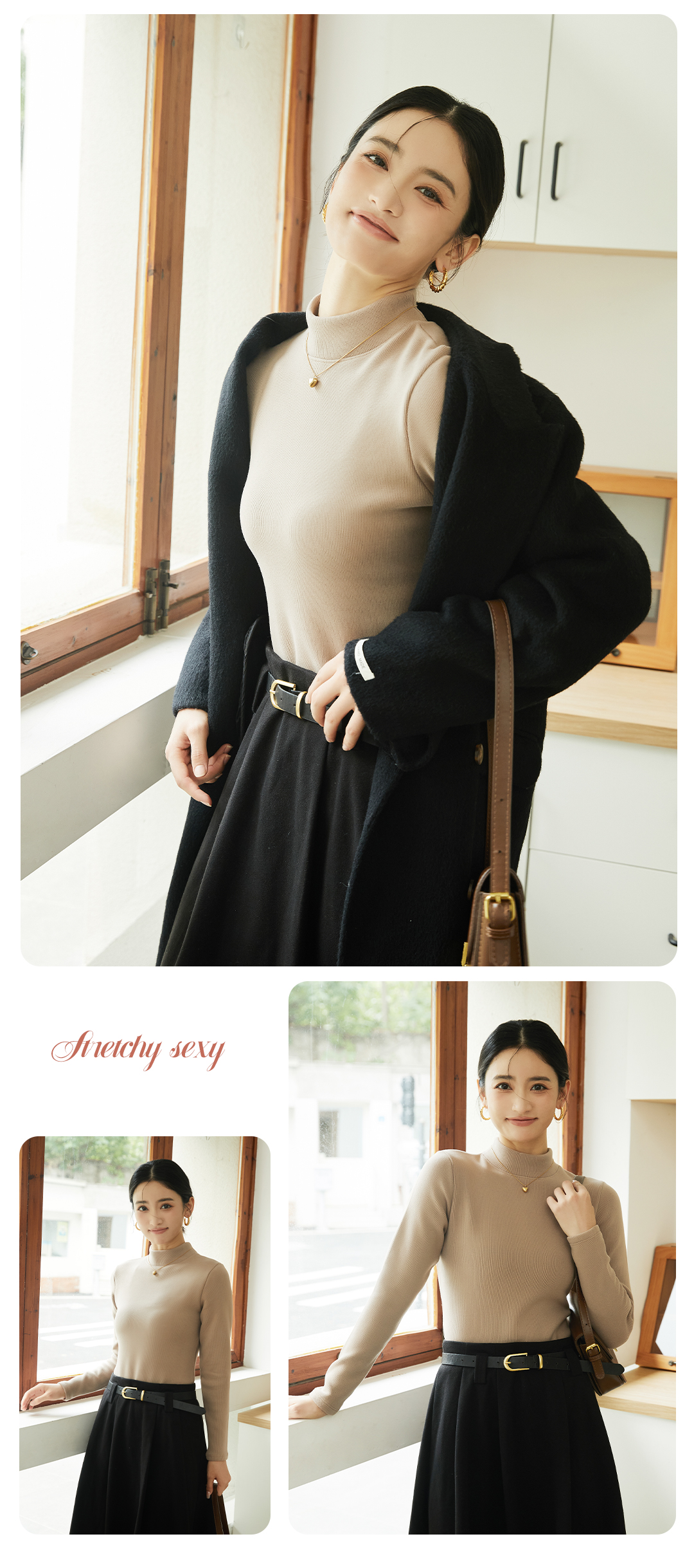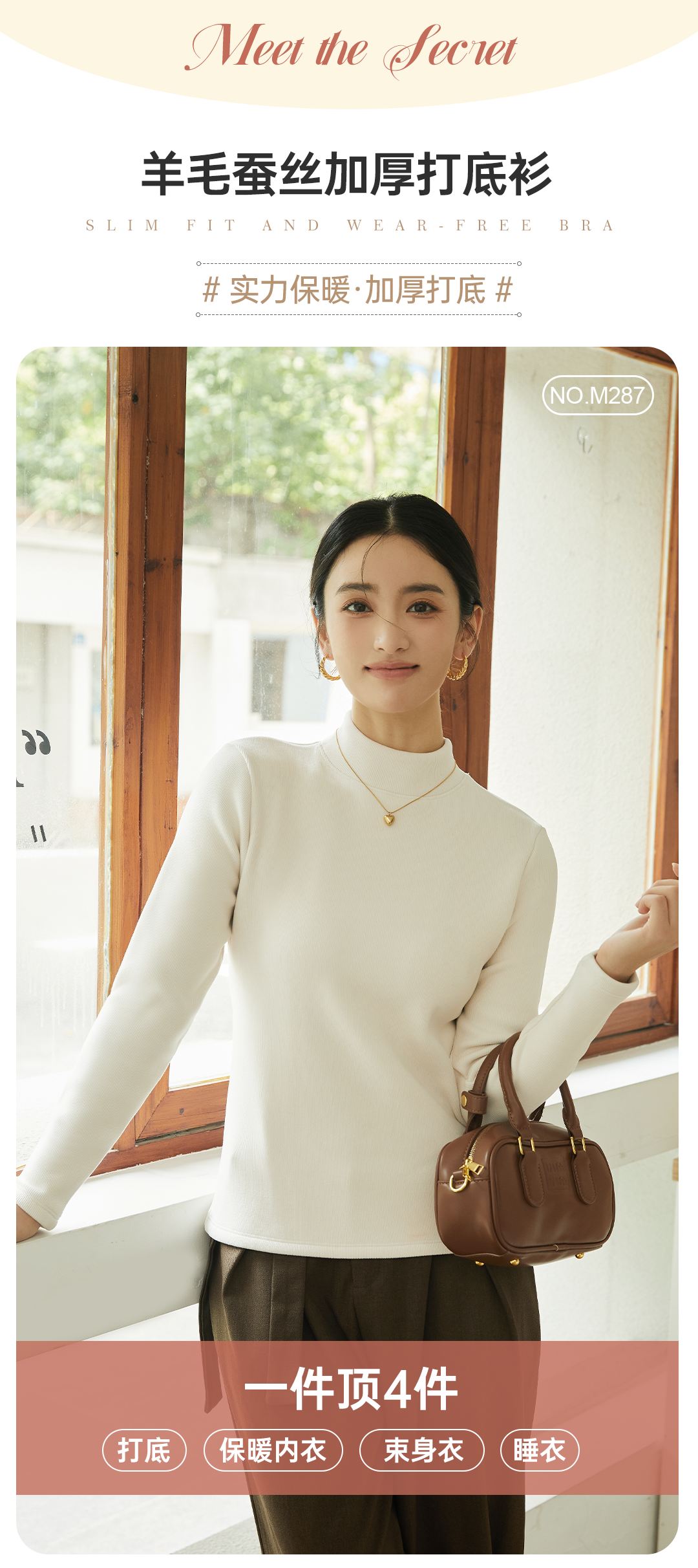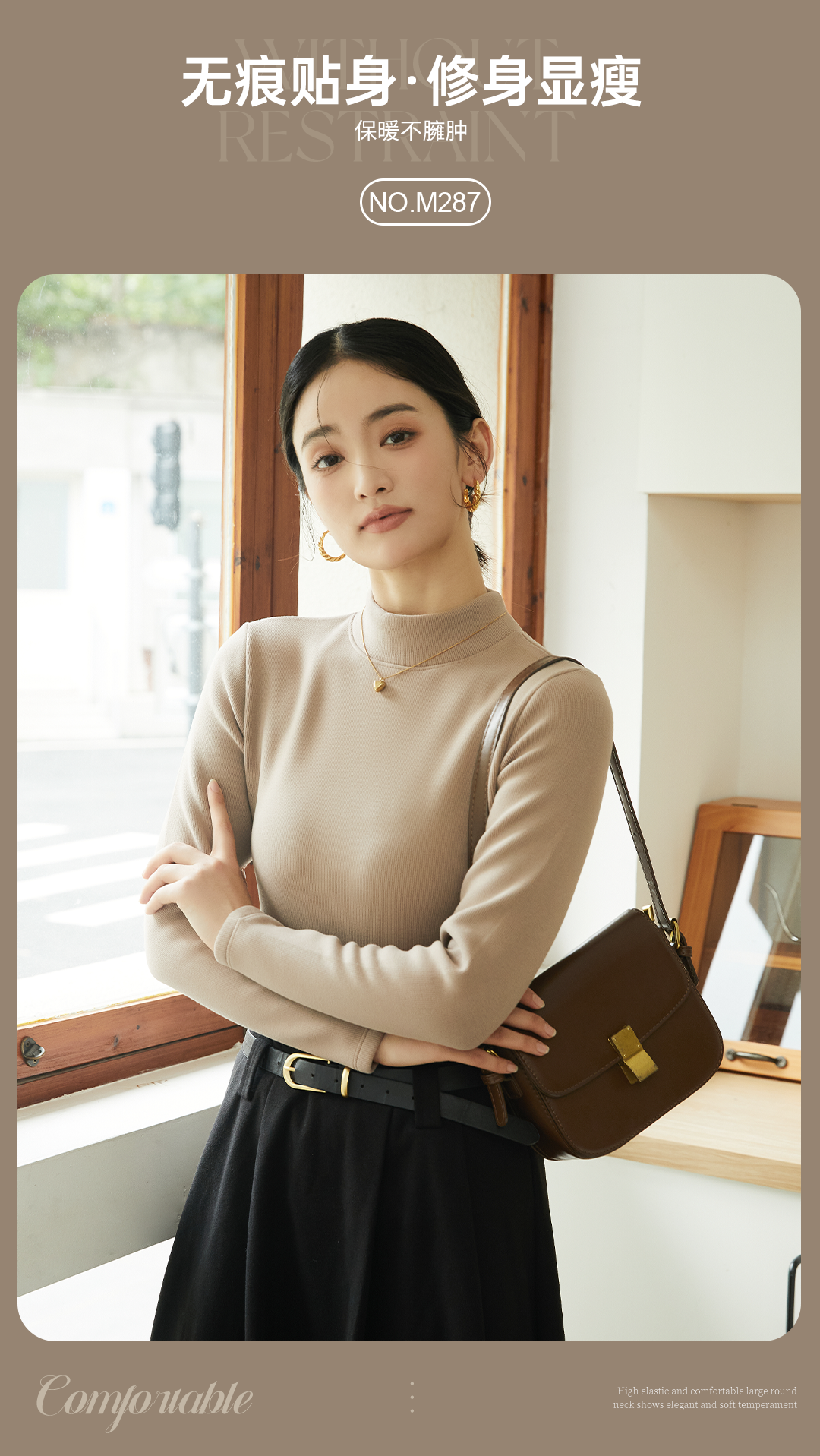 420g考拉绒罗纹椰绒云感衣条纹黑白保暖衣打底衫加绒加厚女士中领T09/2805/M287