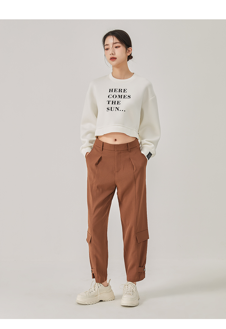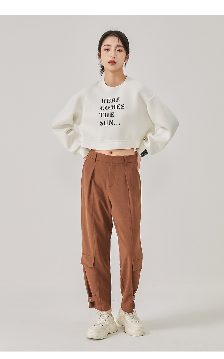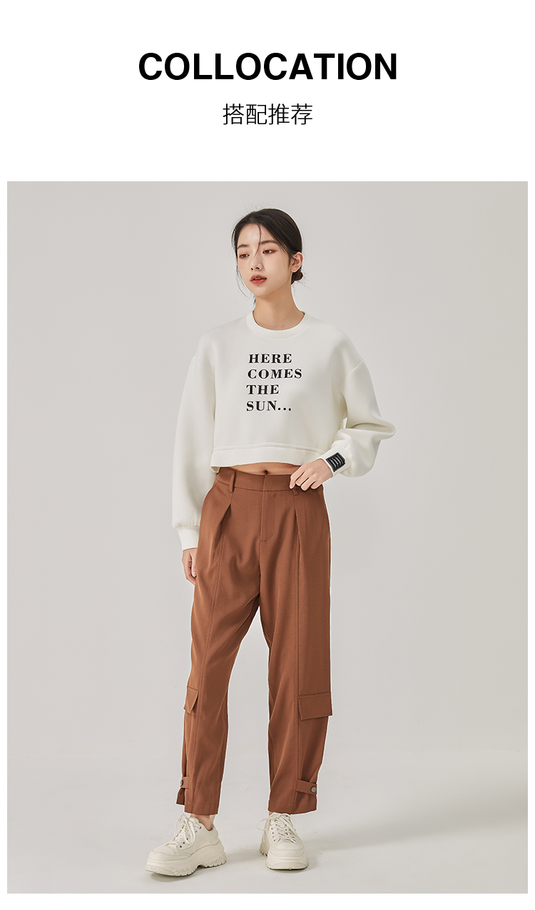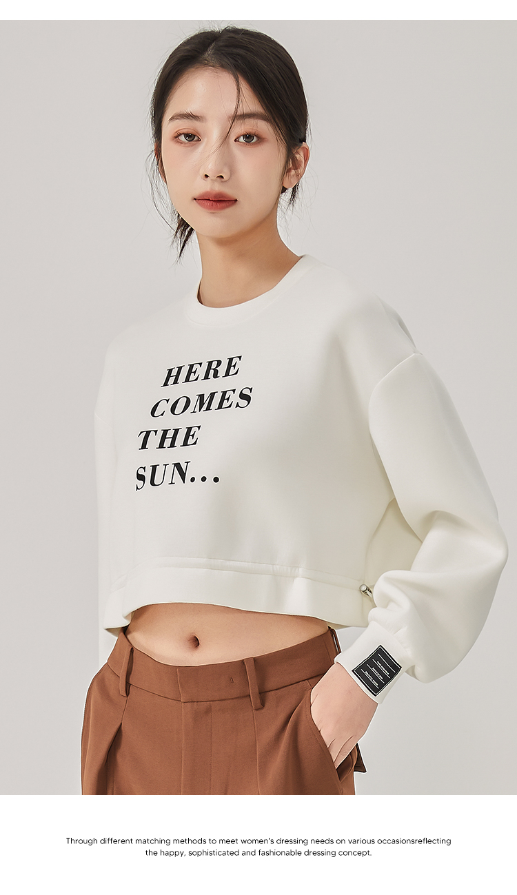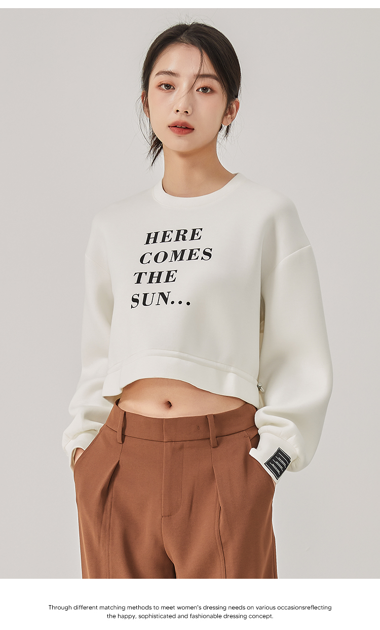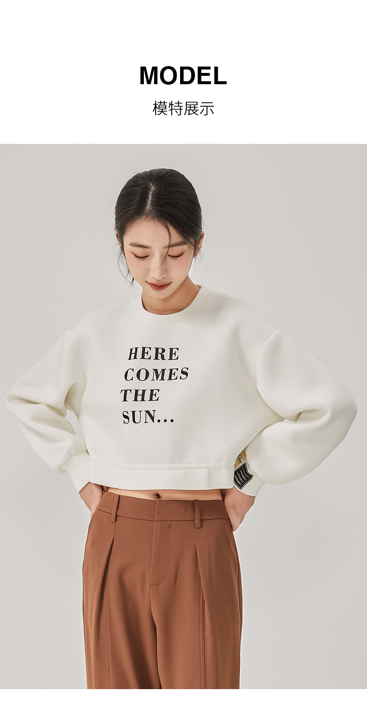 oldcolour2023春新款白色直筒高腰简约休闲短款卫衣女GO11023646