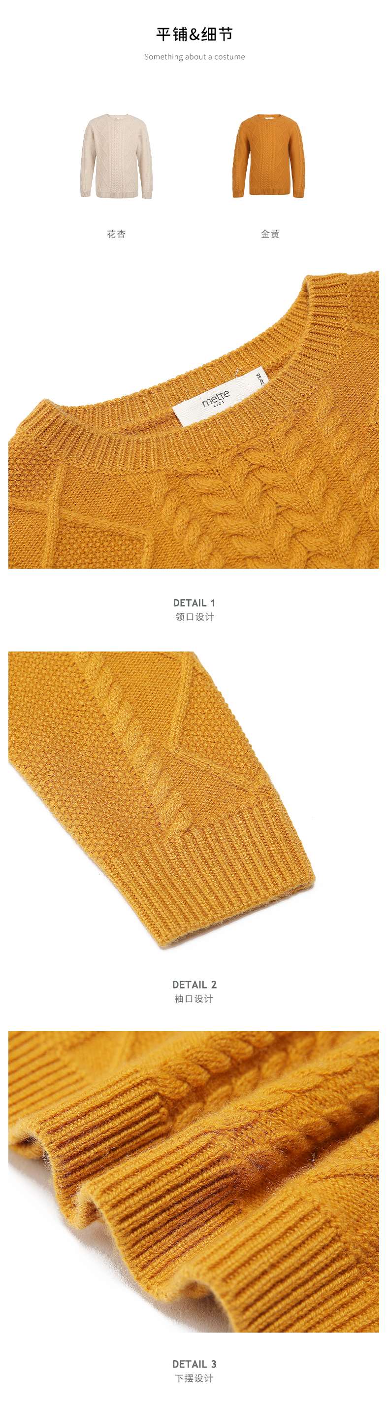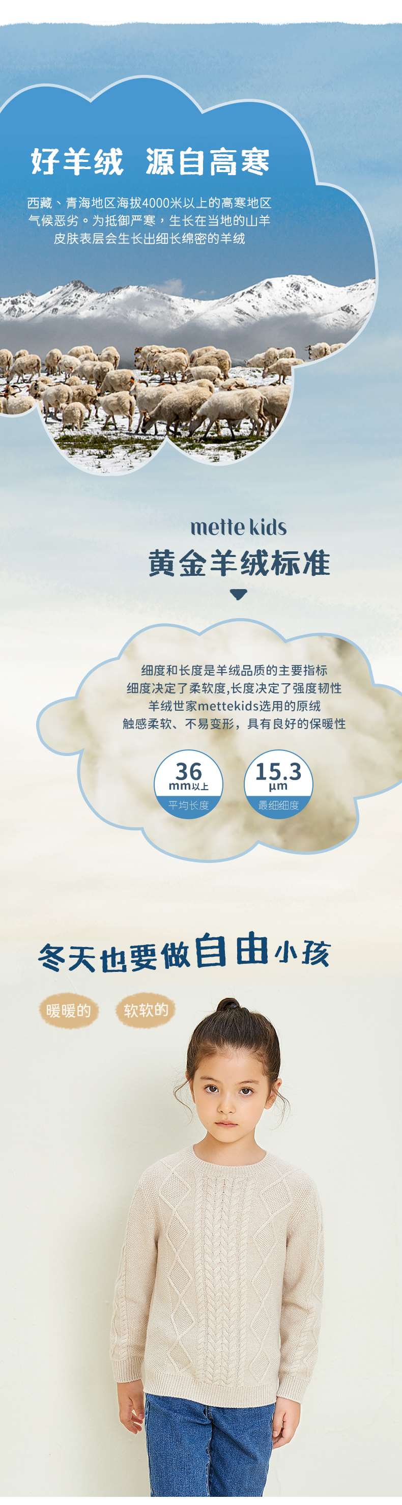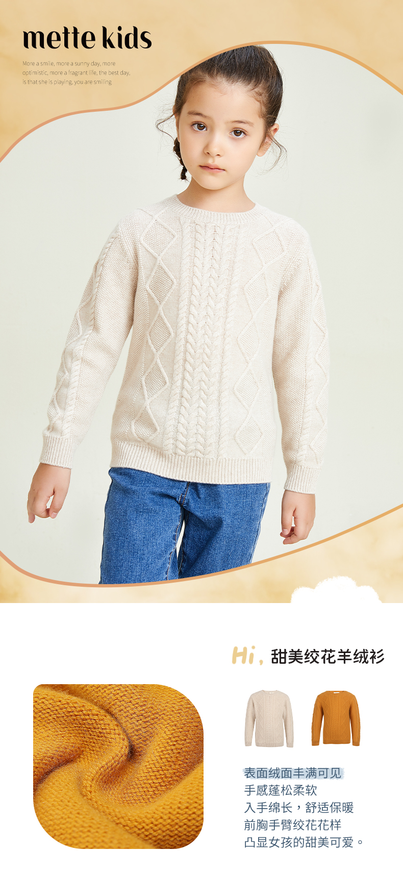 mettekids儿童羊绒衫圆领偏厚中大童毛衣女孩套头春秋款针织衫