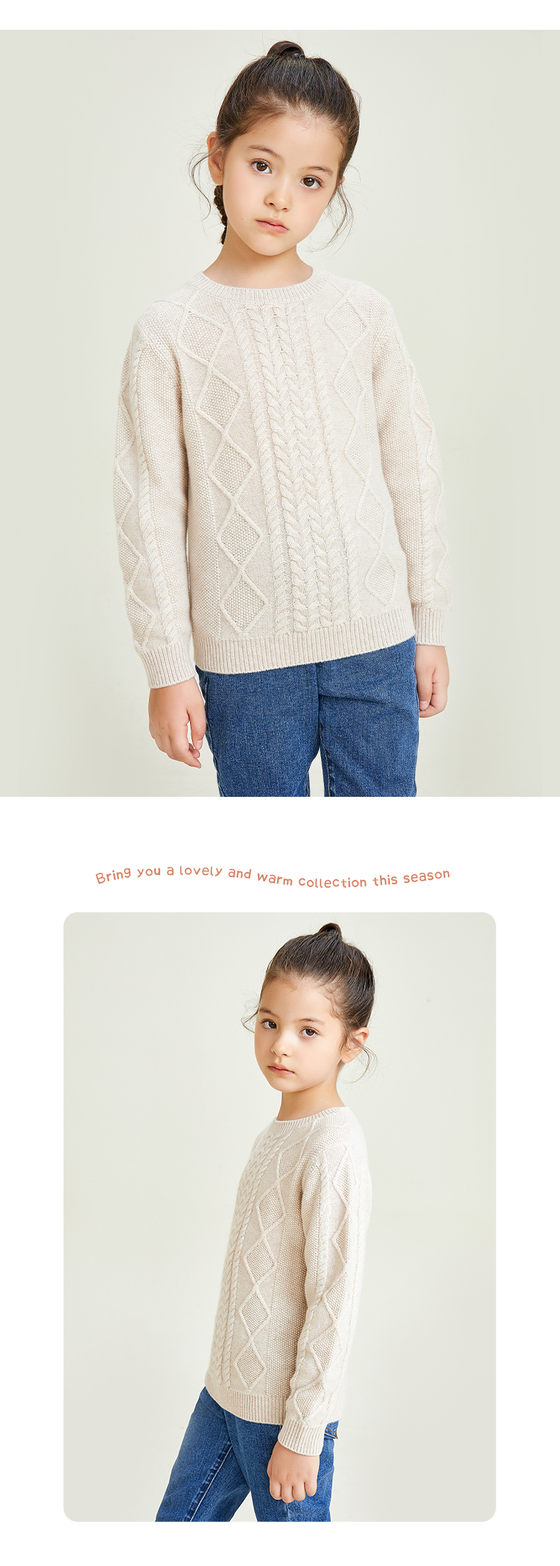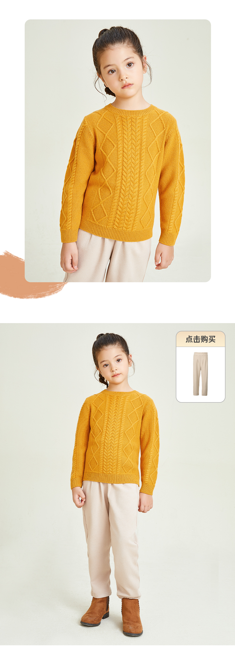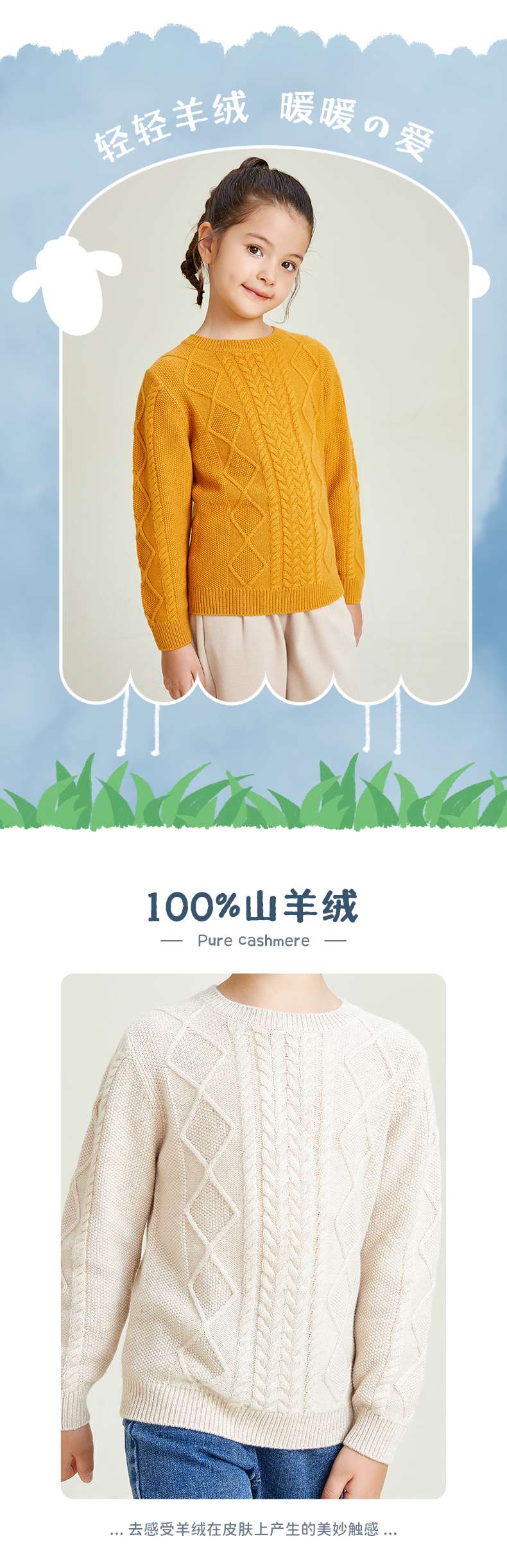 mettekids儿童羊绒衫圆领偏厚中大童毛衣女孩套头春秋款针织衫