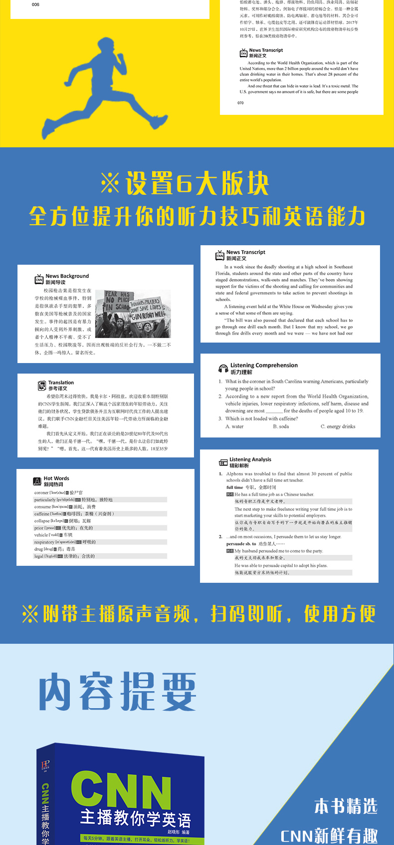 CNN主播教你学英语 听力密码:100天练成超级英语耳 英语听力王书听力训练英语入门 自学 零基础 四六级雅思托福学习教材词汇书