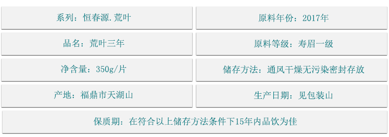 白茶 | 恒春源 荒叶叁年 17年老白茶 寿眉饼350g