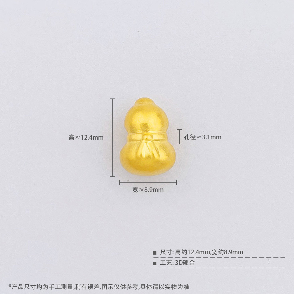 【限时7.5折】【定价黄金】足金 #葫芦 【精品】3D硬金空心仿古法手串配件福禄丝带葫芦转运珠Diy手串配件(AU3DSC00011)(预售产品下单后不退款不退货不换货不补差价)