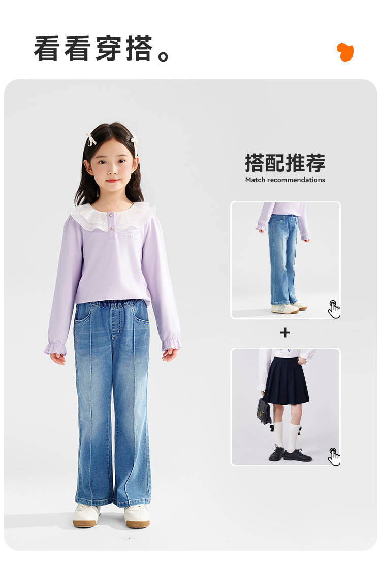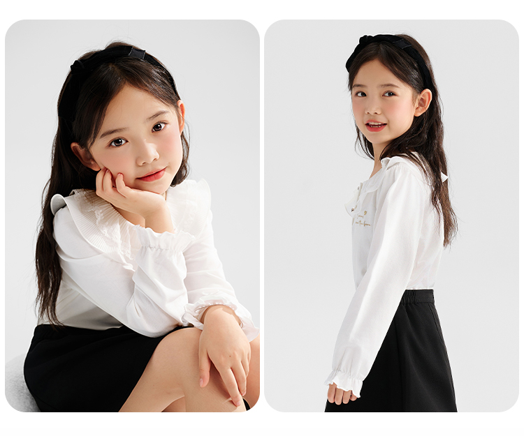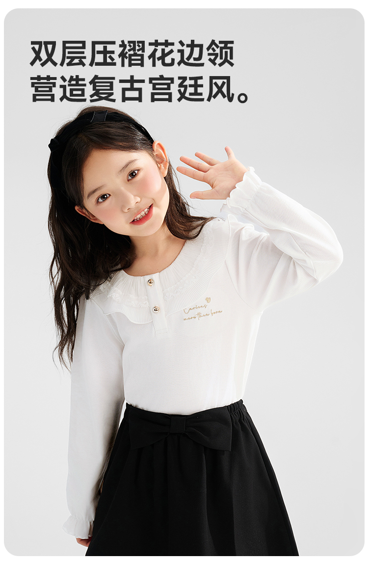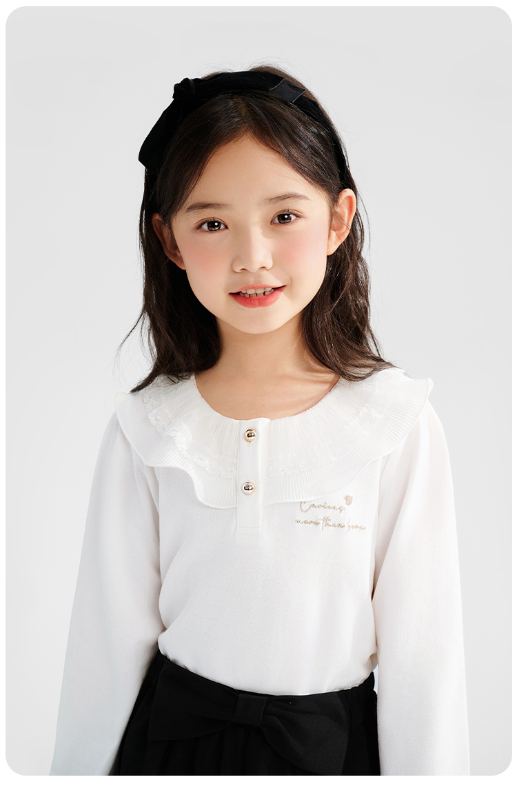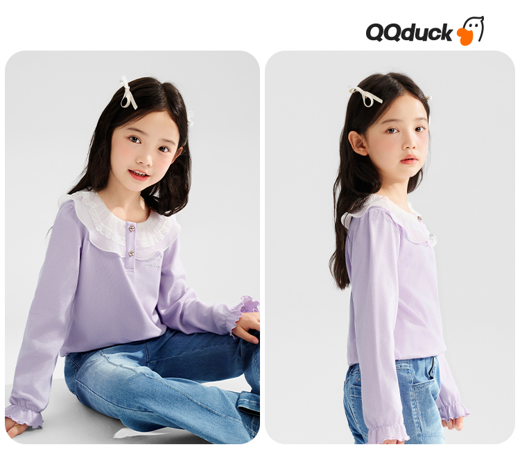 【清仓捡漏】【120-165】【可可鸭】女童春秋长袖花边娃娃领衬衫