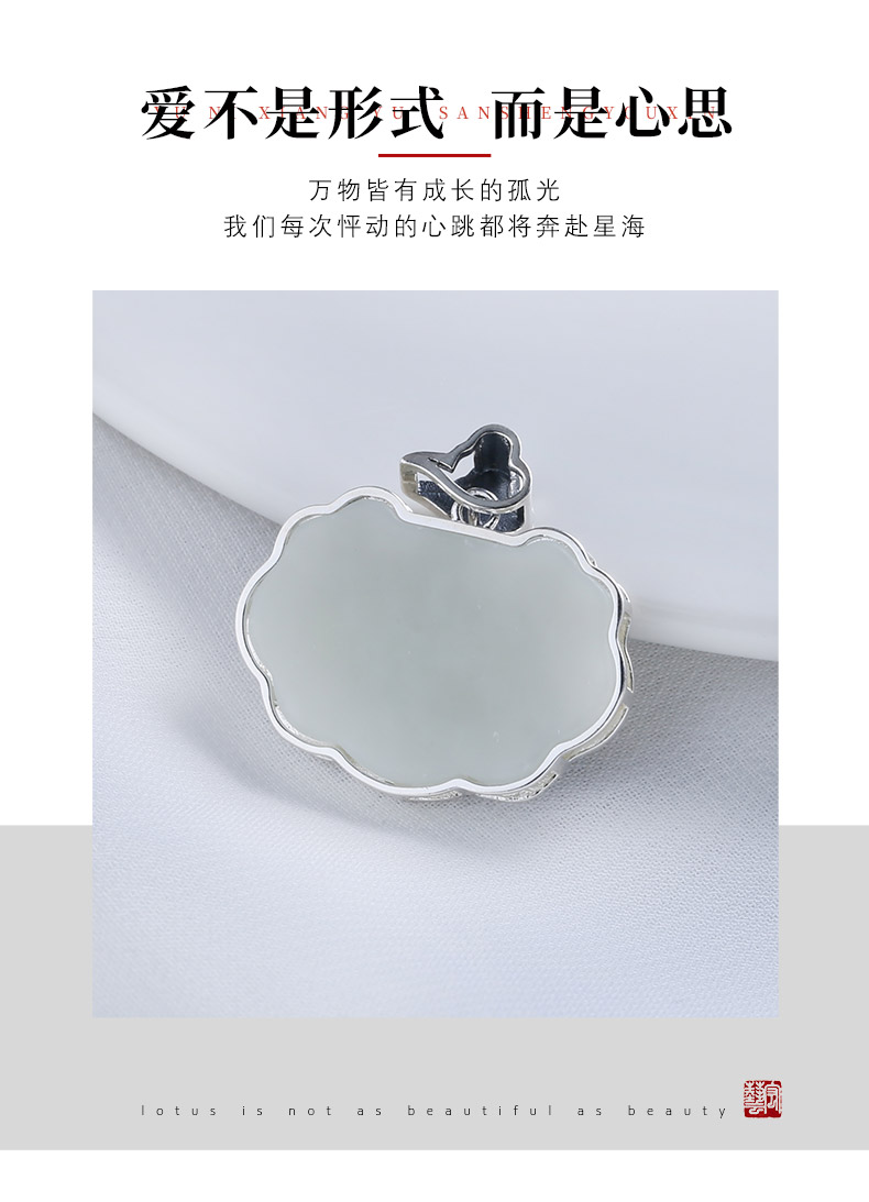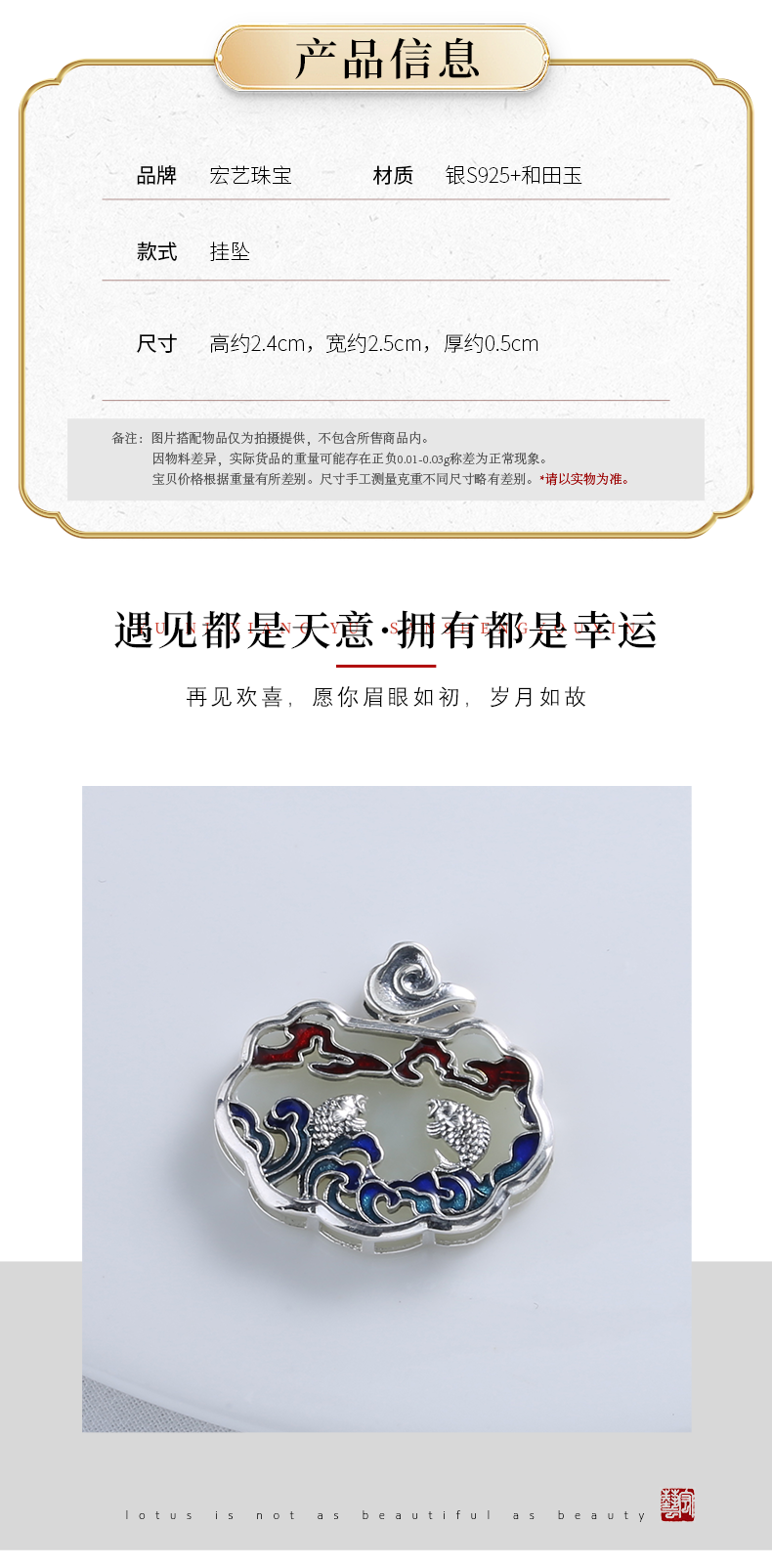 【宏艺珠宝】双鱼戏水·银s925和田玉挂坠