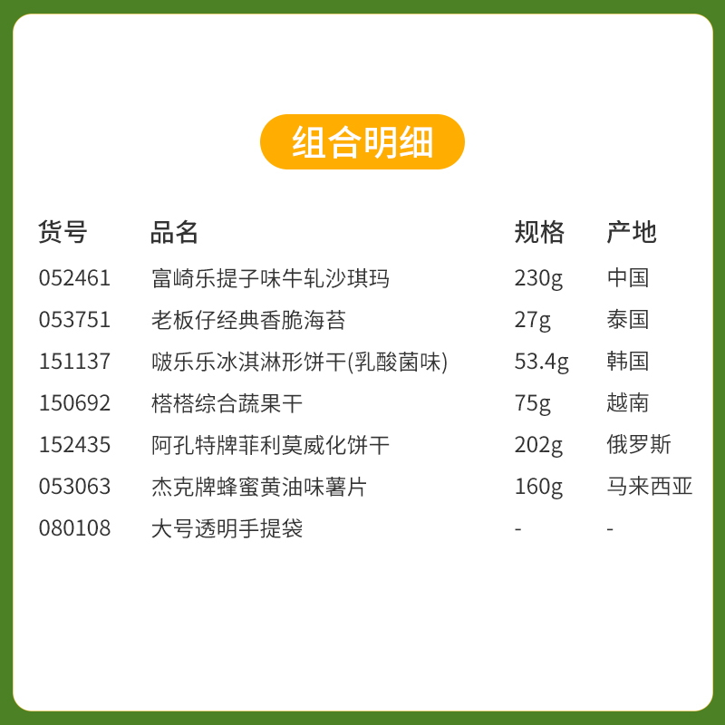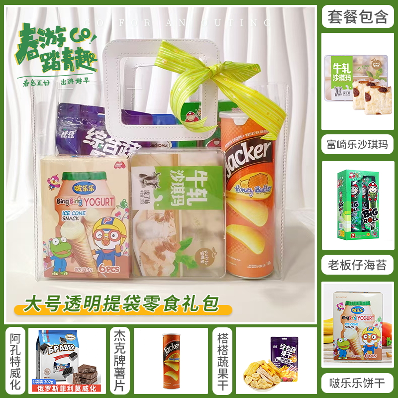 【慢生活踏青游】春暖花开踏青出游露营-大号透明手提袋零食组合B/052461*053751*151137*150692*152435*053063*080108