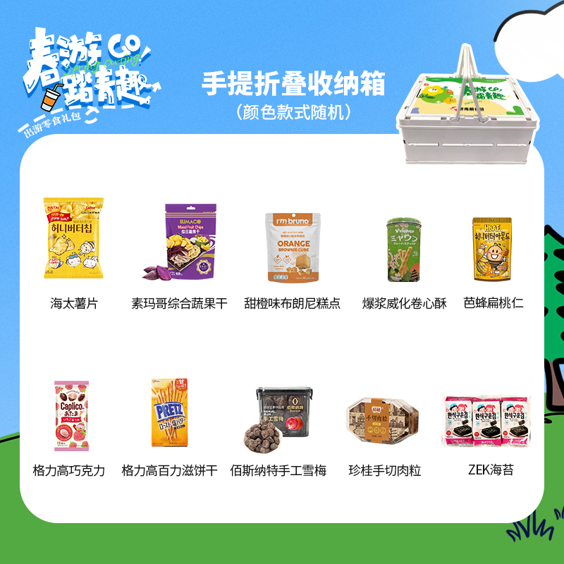 【春日限定】春暖花开踏青出游零食组合D-手提折叠箱款 颜色随机