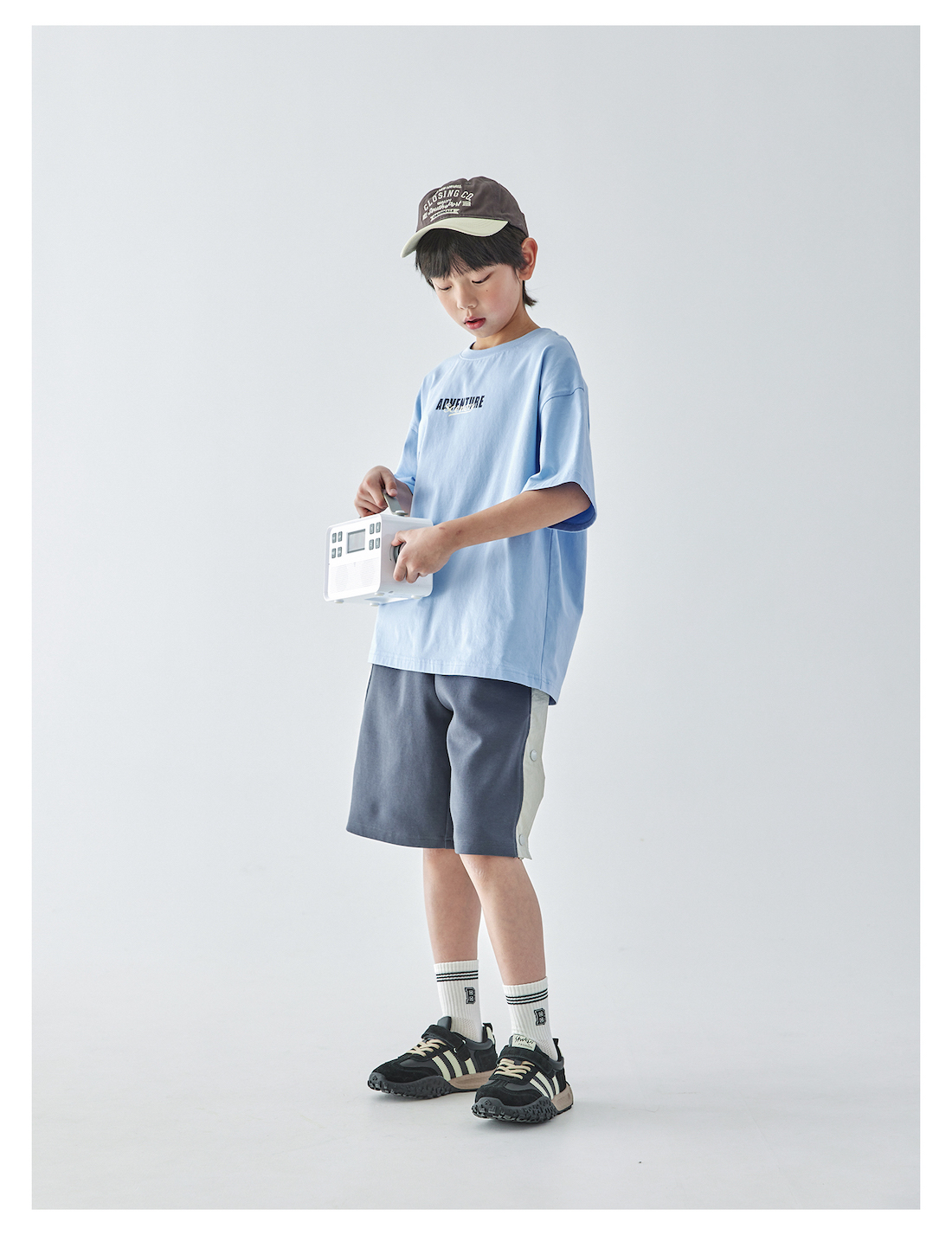 【代发】男童美式宽松短袖T恤 蓝汽水夏款全棉针织字母印花亲子款上衣蓝色/花灰