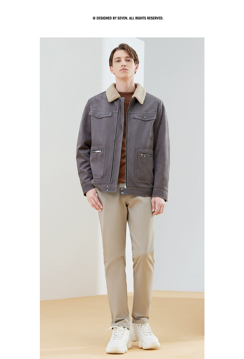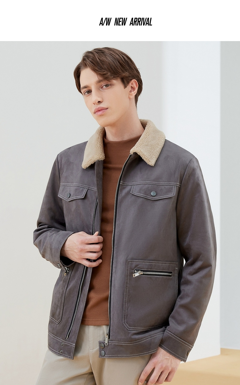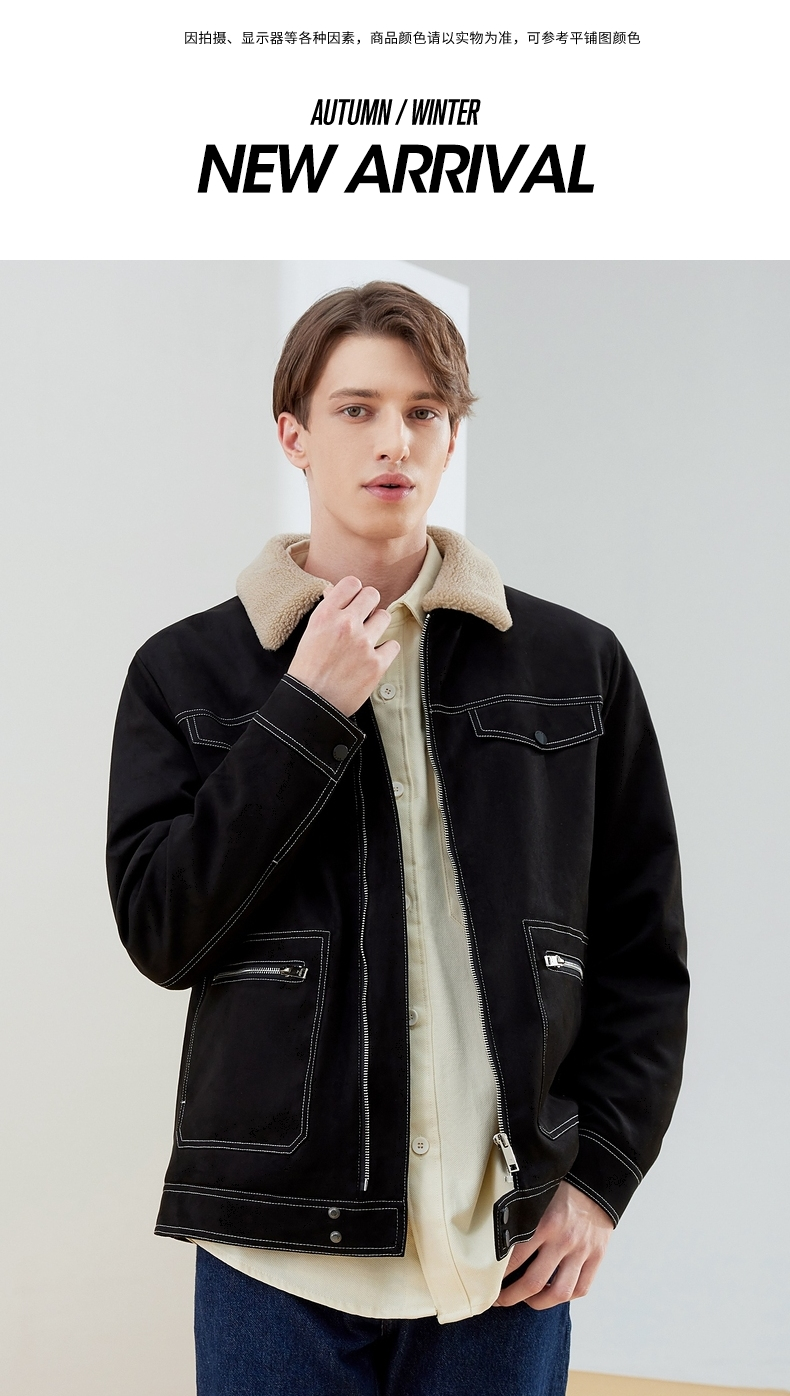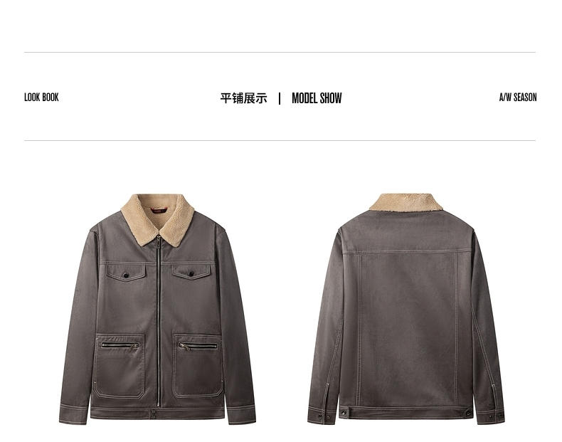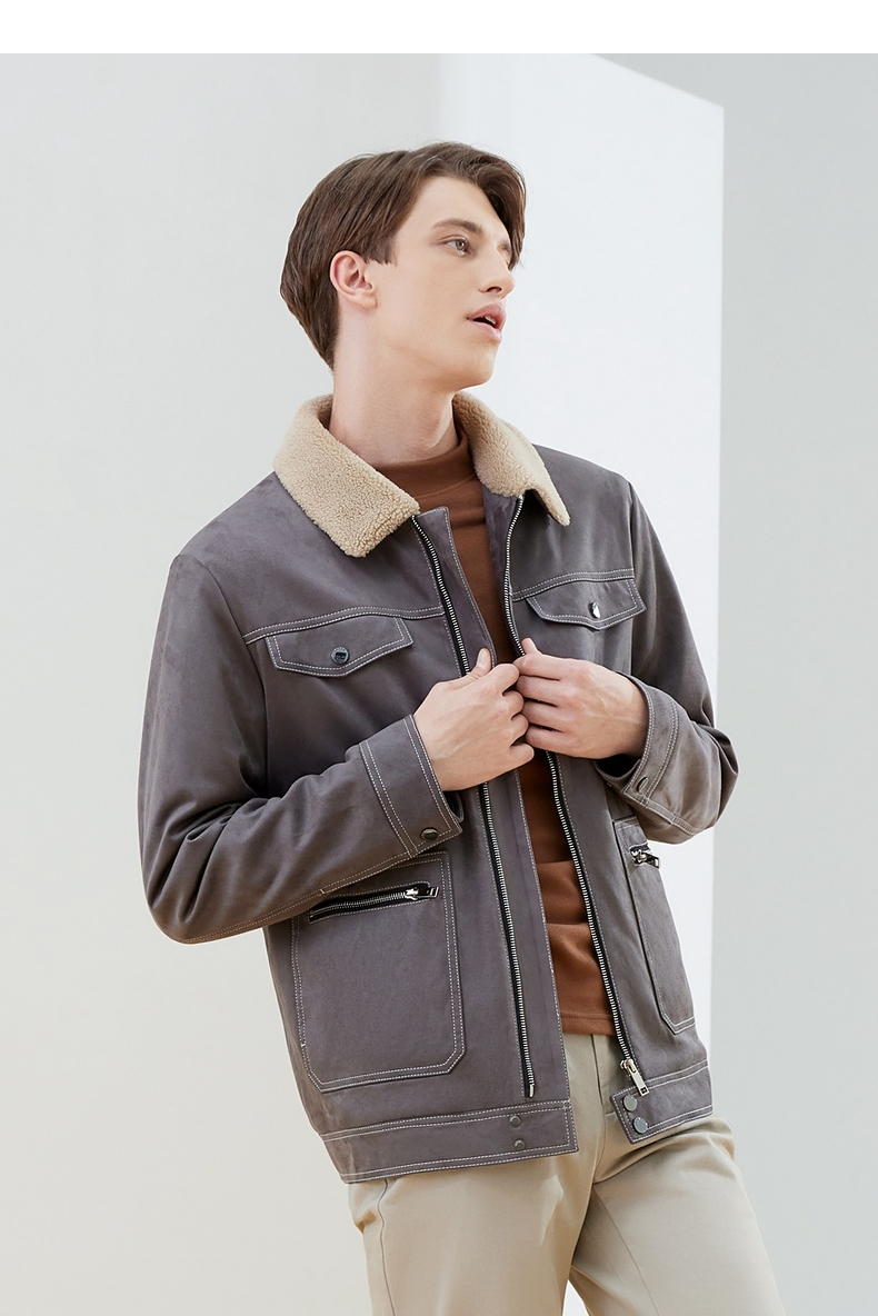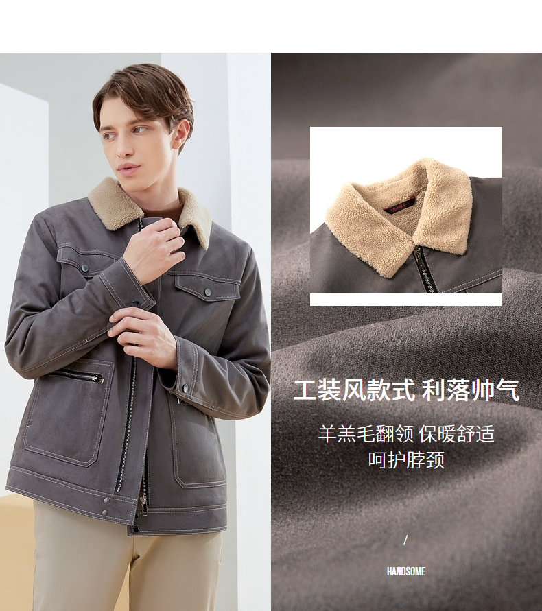 柒牌工装外套男冬季新款时尚休闲羊糕毛保暖翻领夹克 125K70020