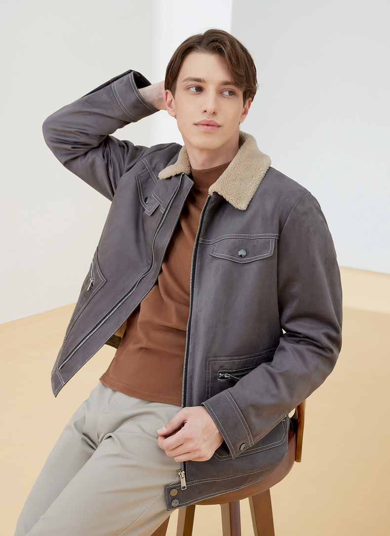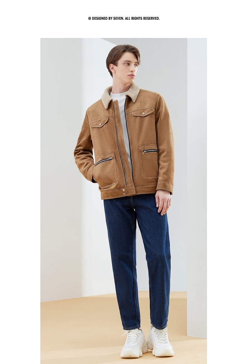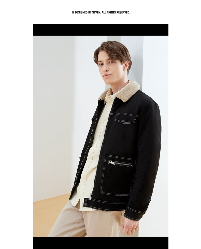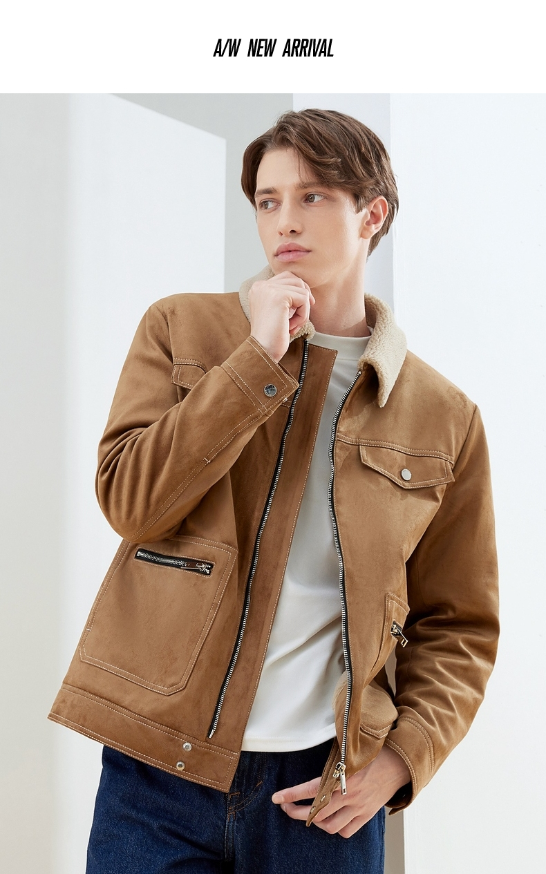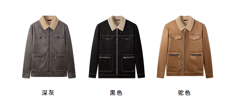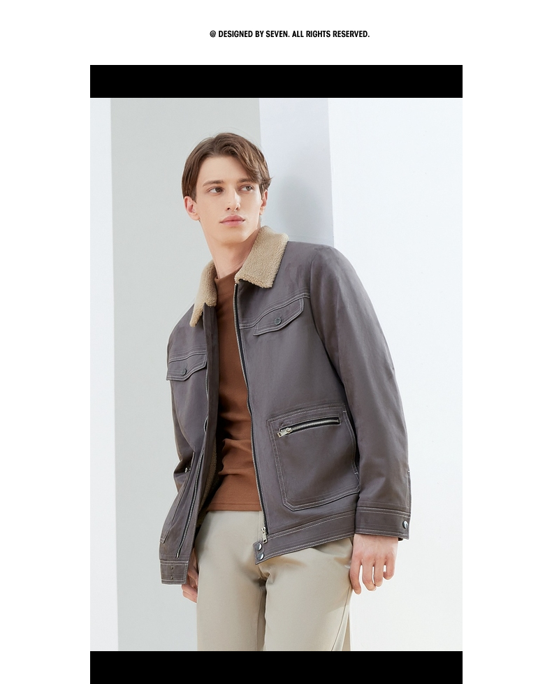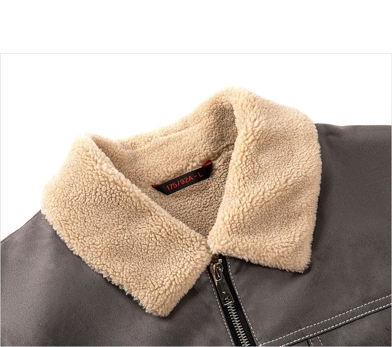柒牌工装外套男冬季新款时尚休闲羊糕毛保暖翻领夹克 125K70020