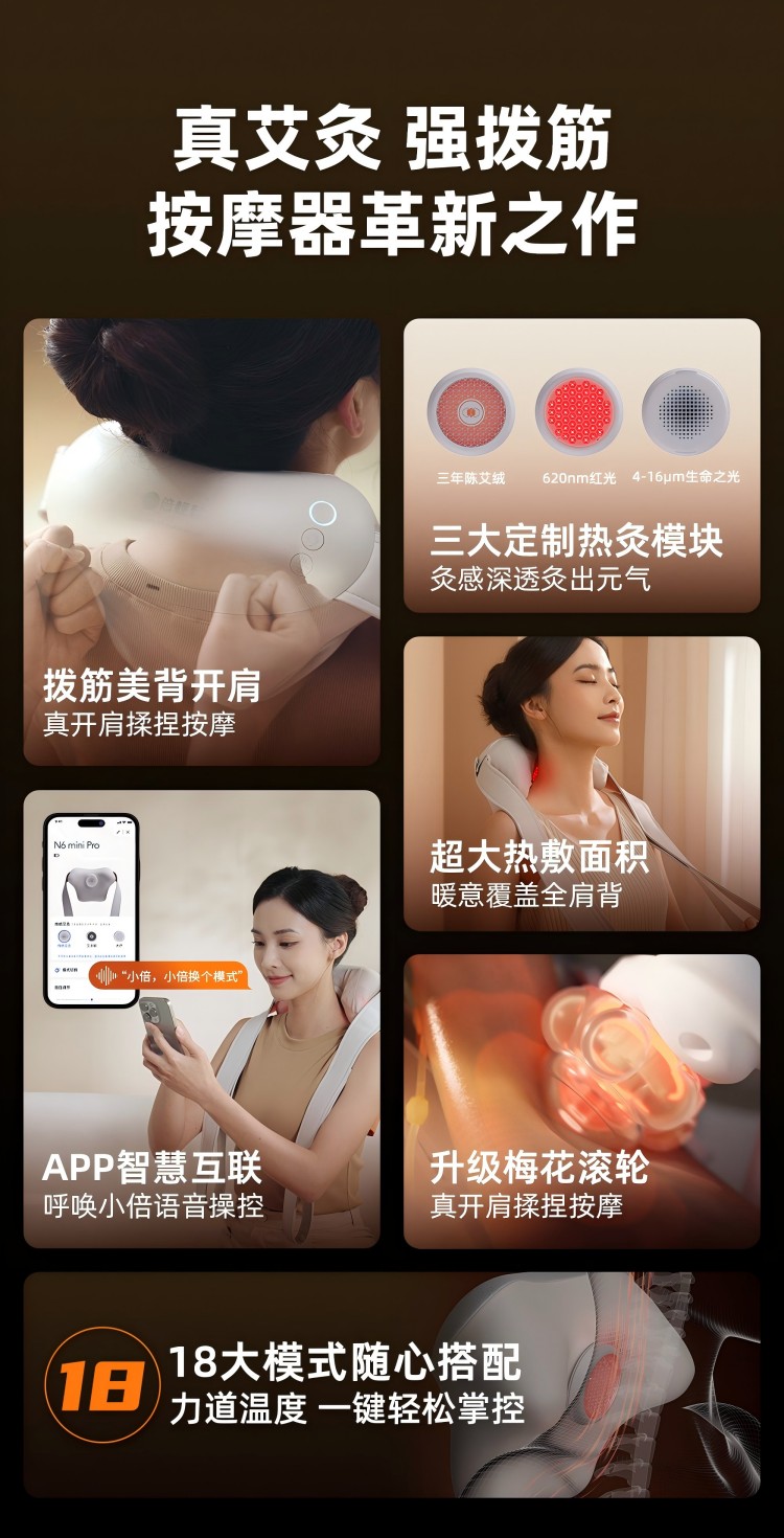 【母亲节礼物】倍轻松N6mini Pro一字开肩按摩器滚揉疏通热敷颈椎按摩仪 重磅新品