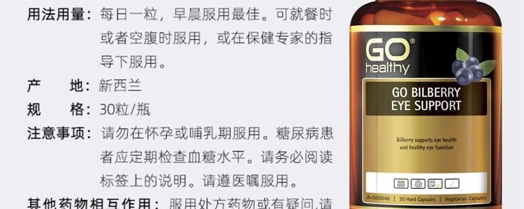【保税】新西兰 高之源(Go Healthy)越橘精华叶黄素护眼胶囊 30粒
