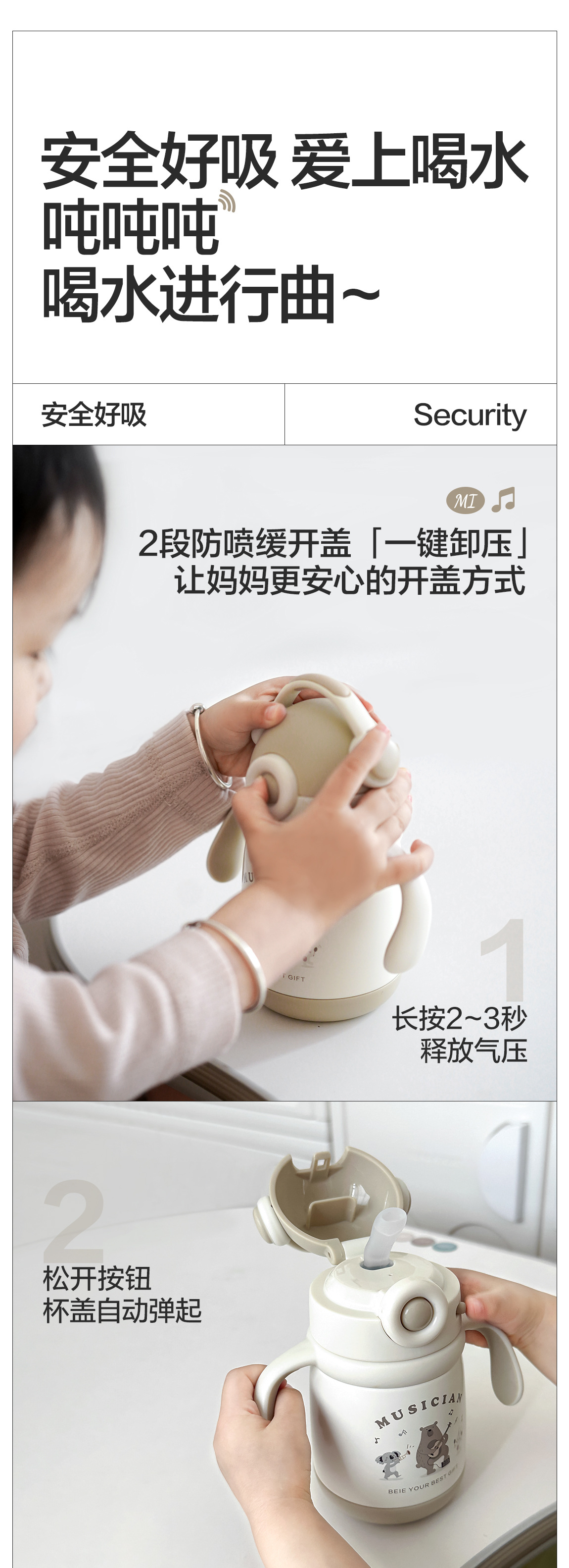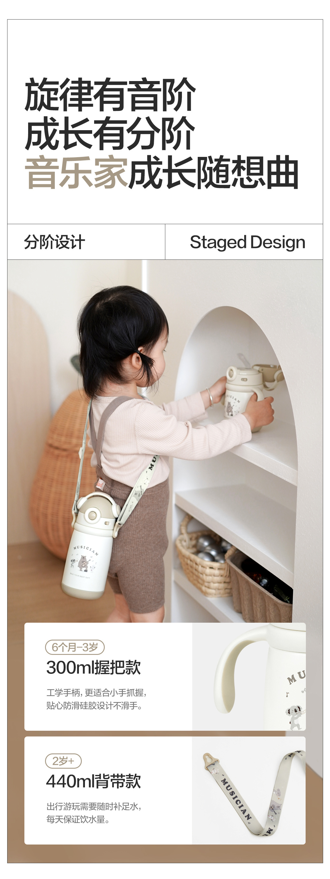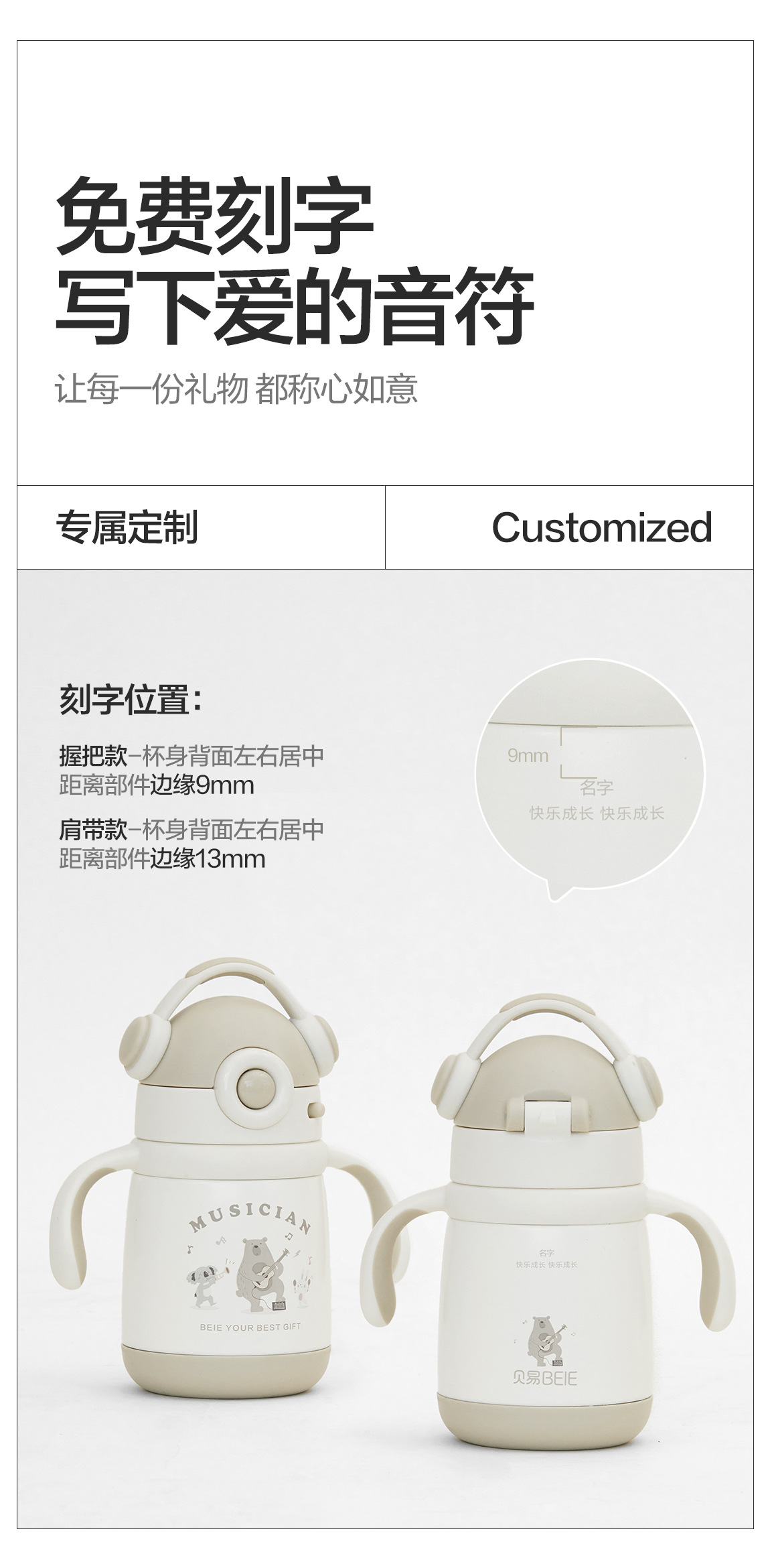 【支持刻名字,如需刻印下单备注】贝易音乐家宝宝保温杯婴幼儿吸管学饮6月以上保温儿童水杯 刻字后非质量问题不退不换!